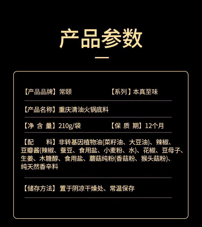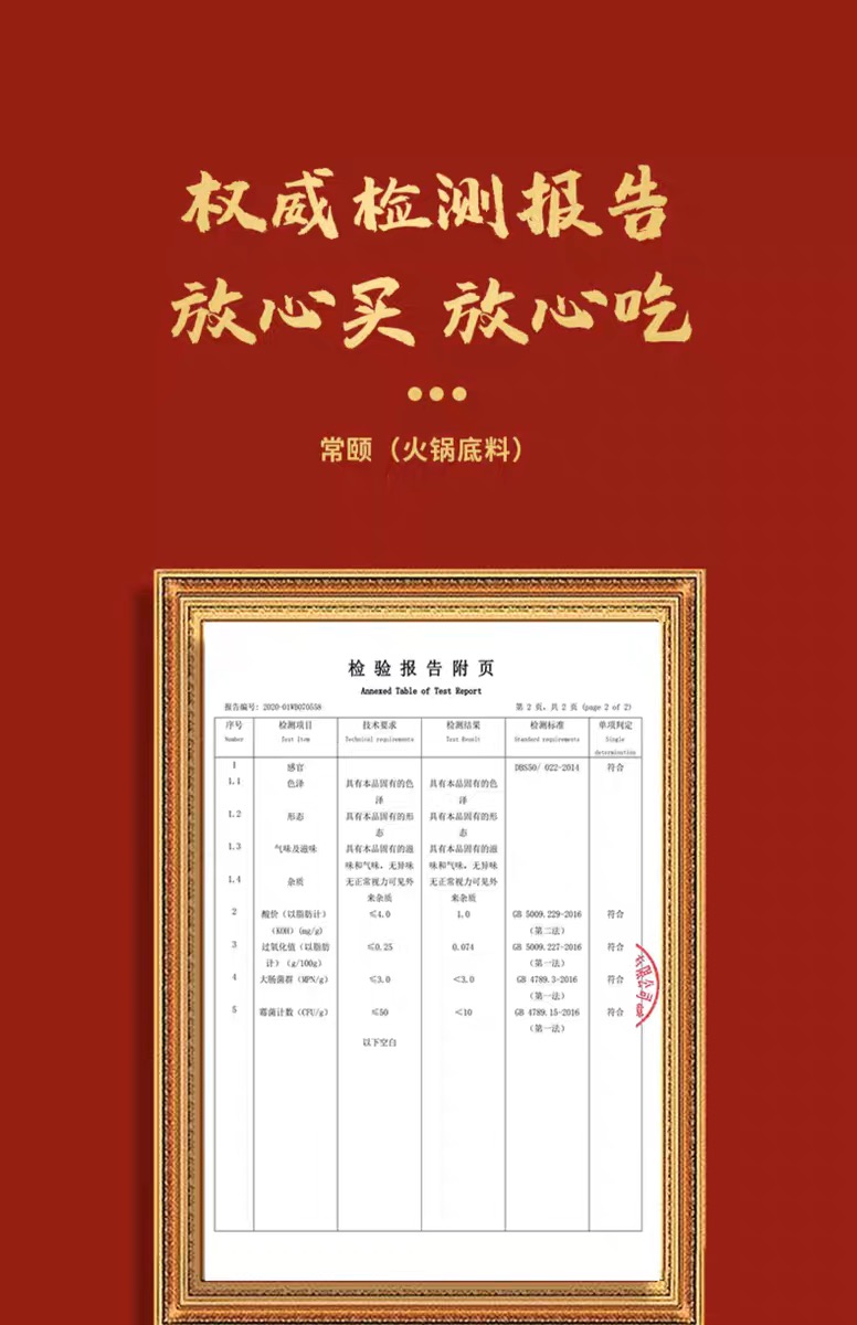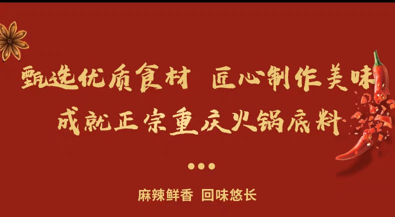 品名:常颐传统重庆麻辣口味素食火锅底料