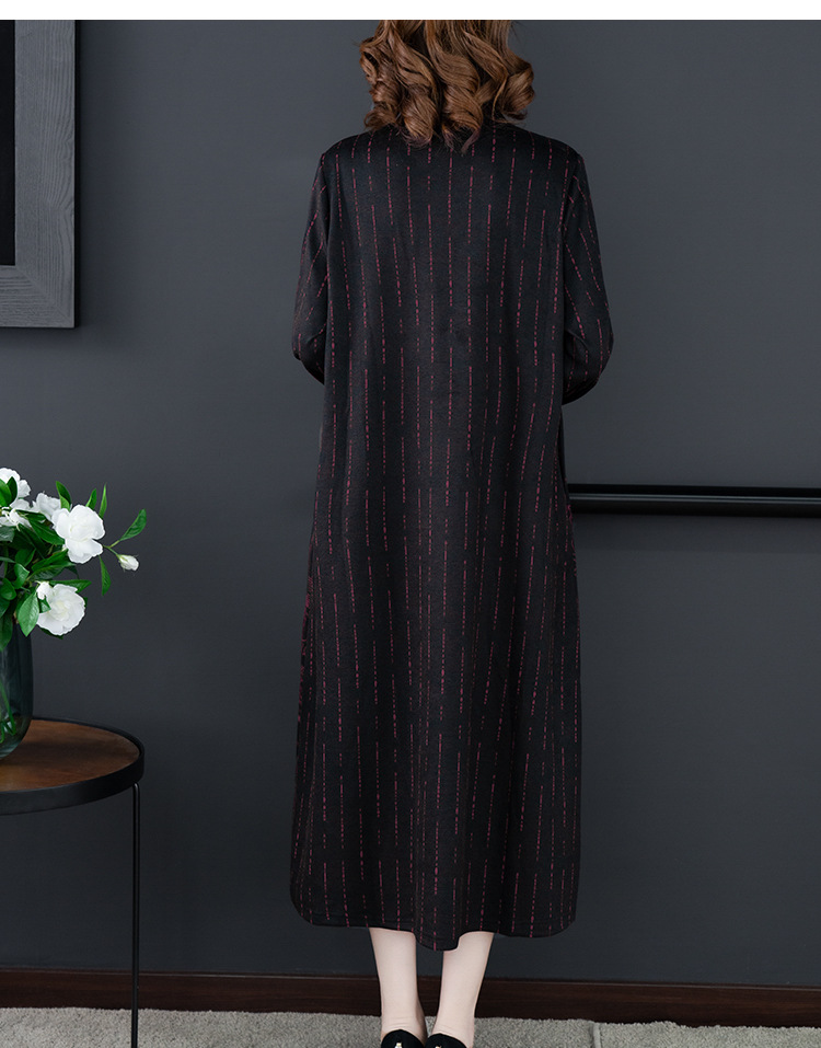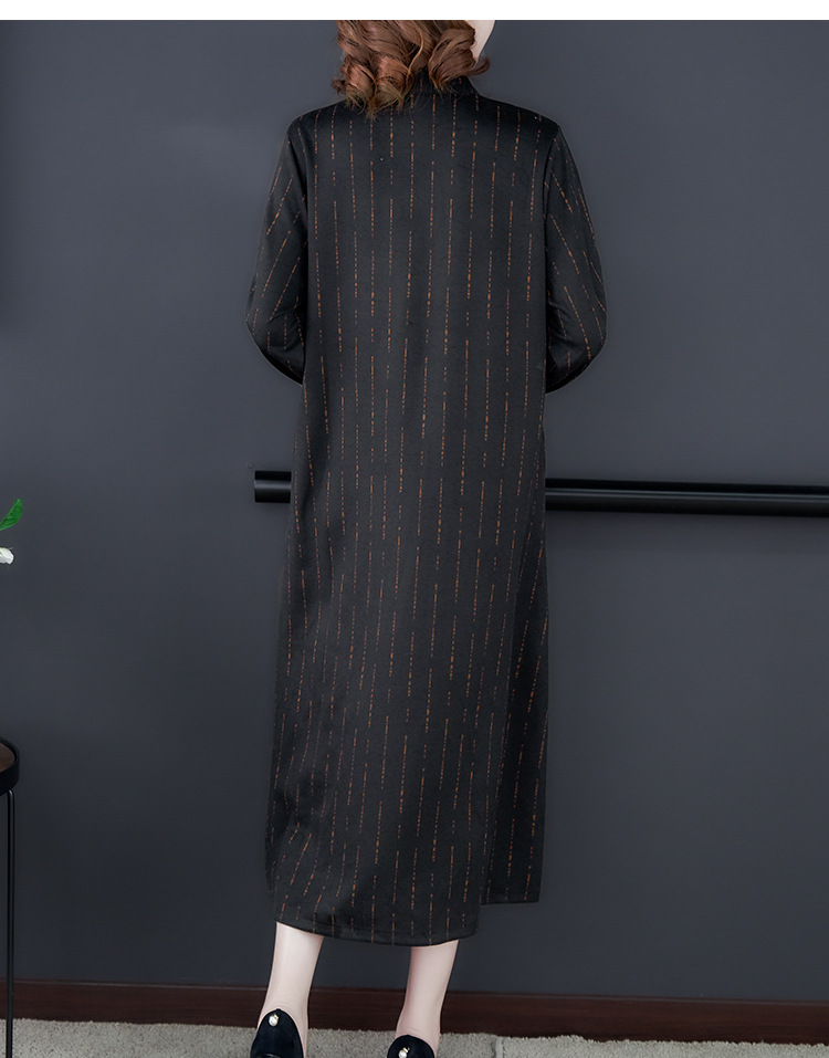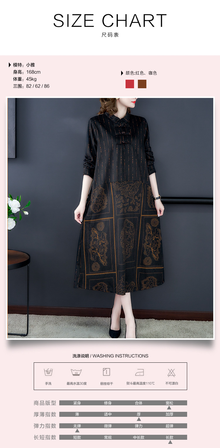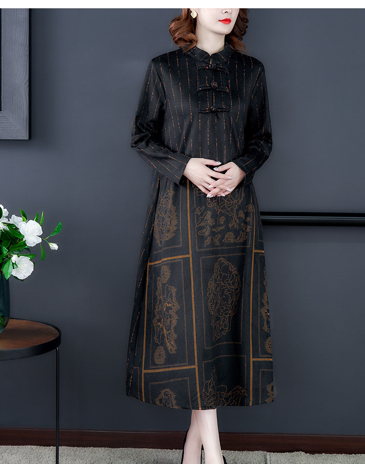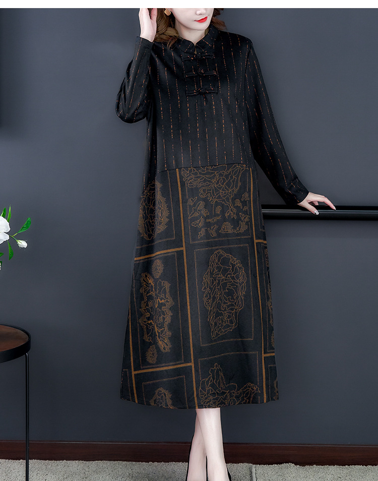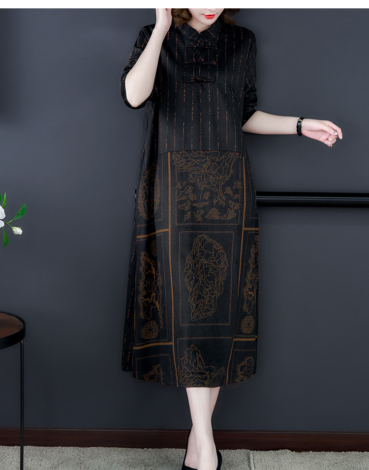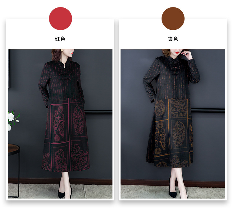 AHM-aswy1959秋冬新款宽松大码复古盘扣羊绒印花连衣裙民族风长裙