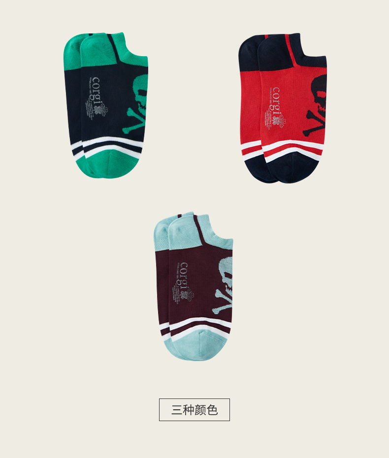 CORGI英国进口 男女同款袜子英伦风骷髅头印花薄款船袜春夏