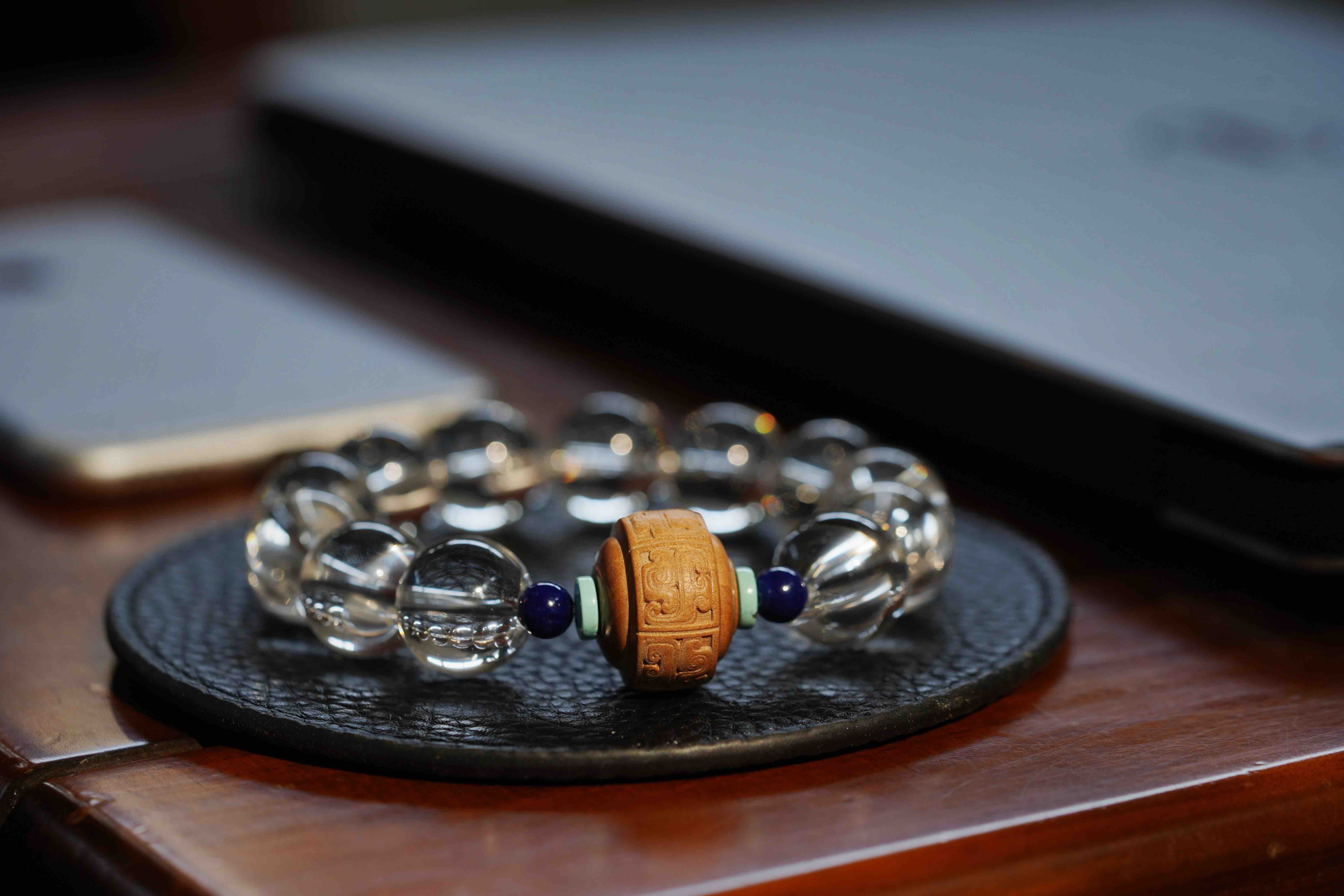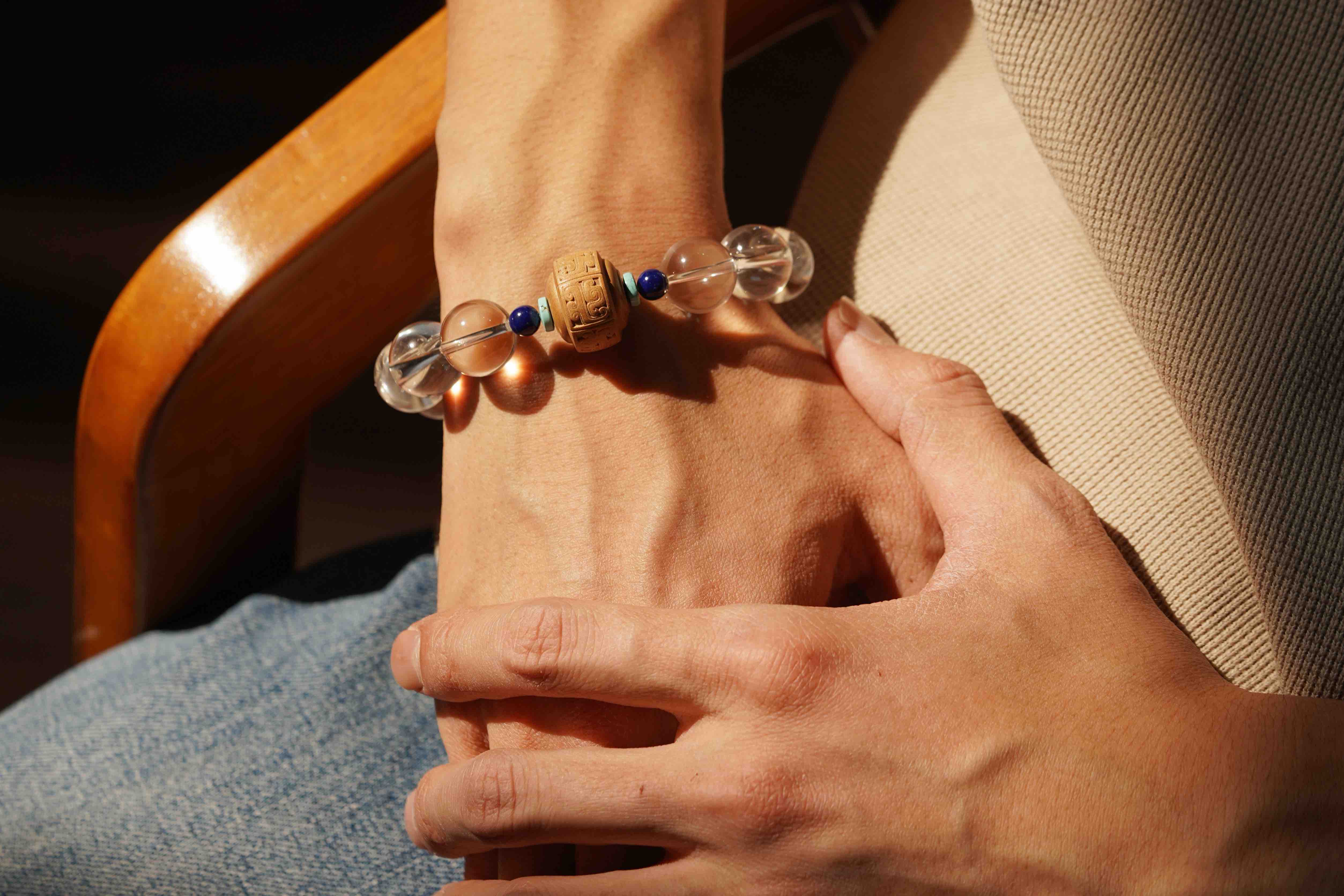 白水晶老山檀手串