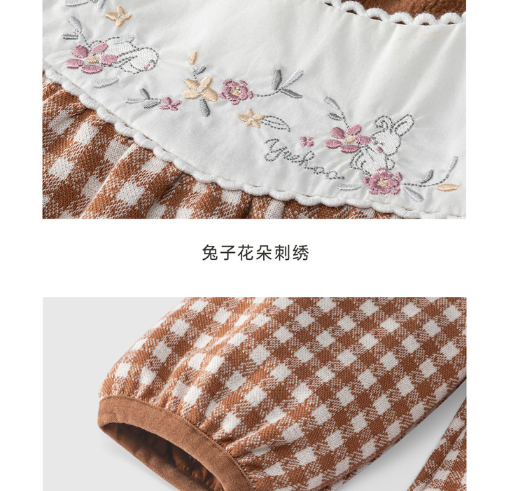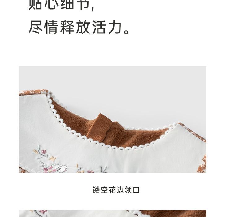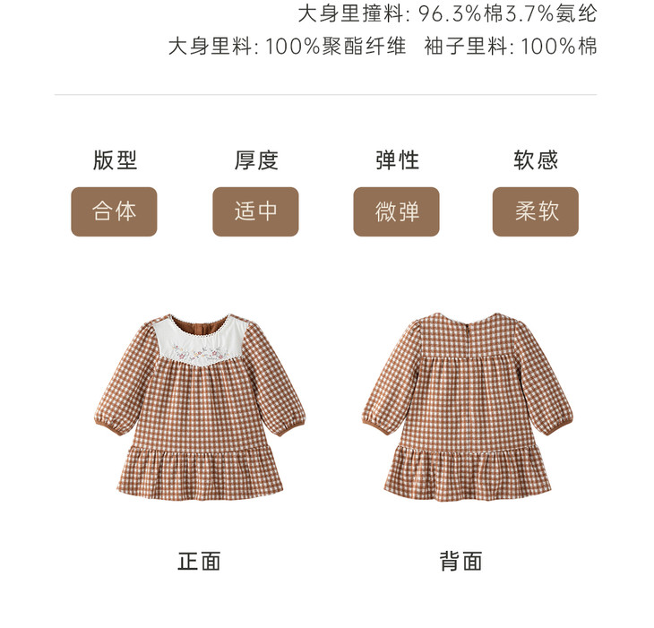 【商场同款】英氏女童连衣裙暖感摇粒绒裙子格子女宝宝秋冬款公主裙
