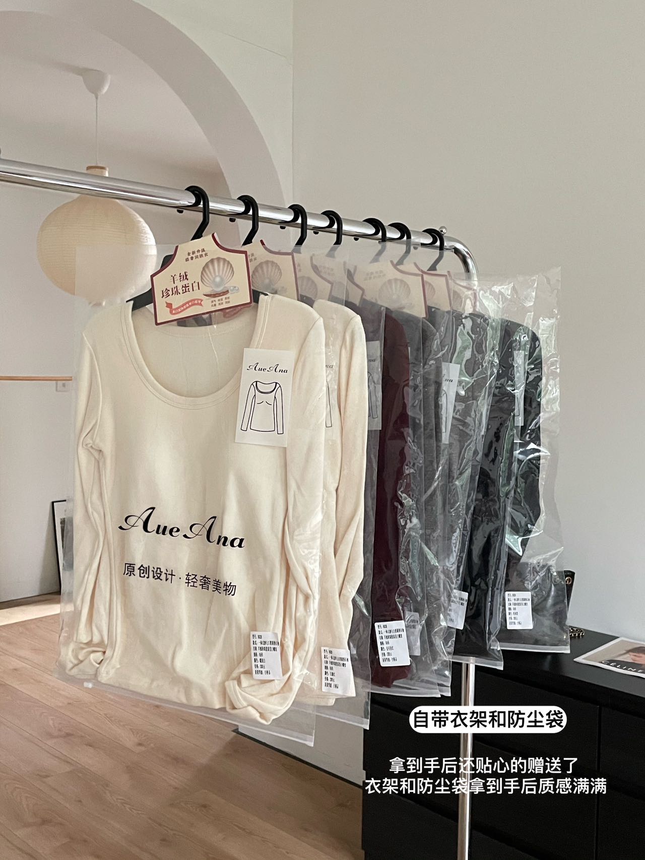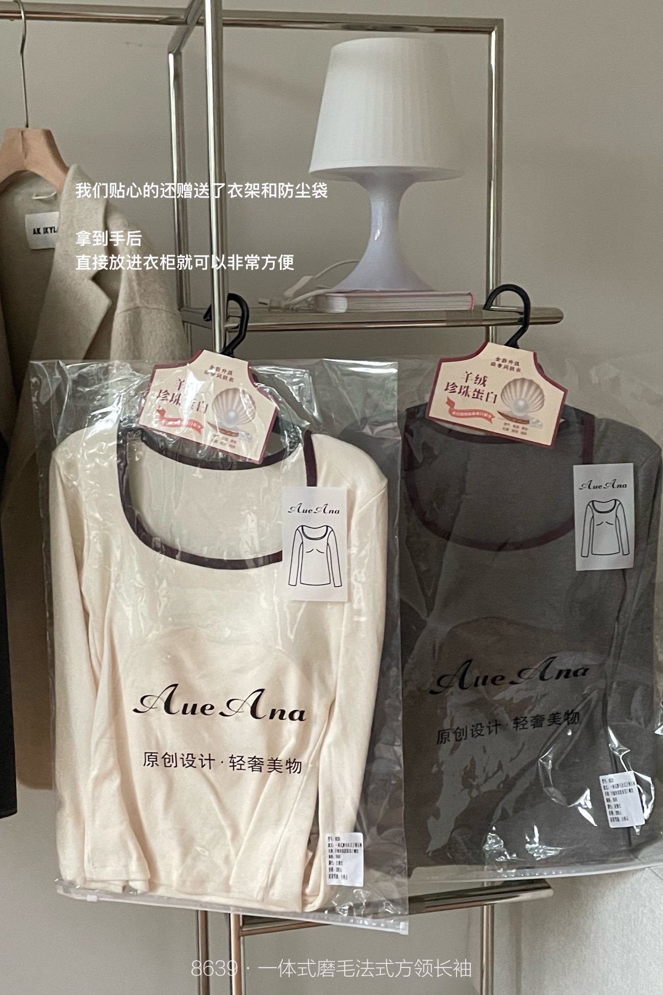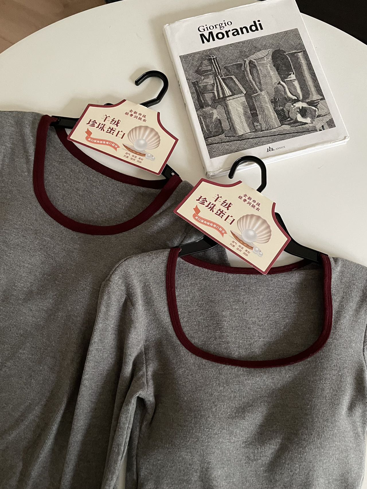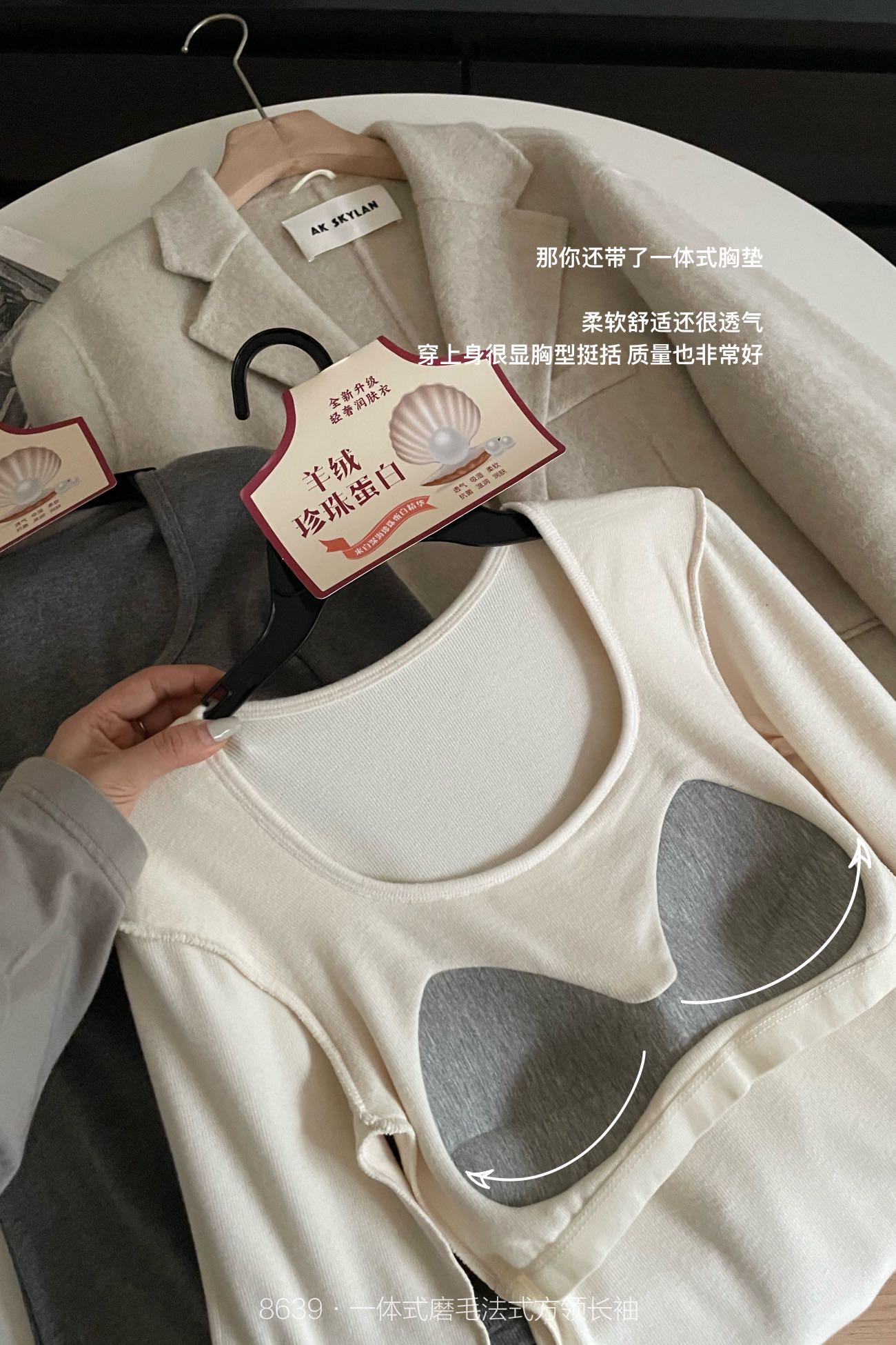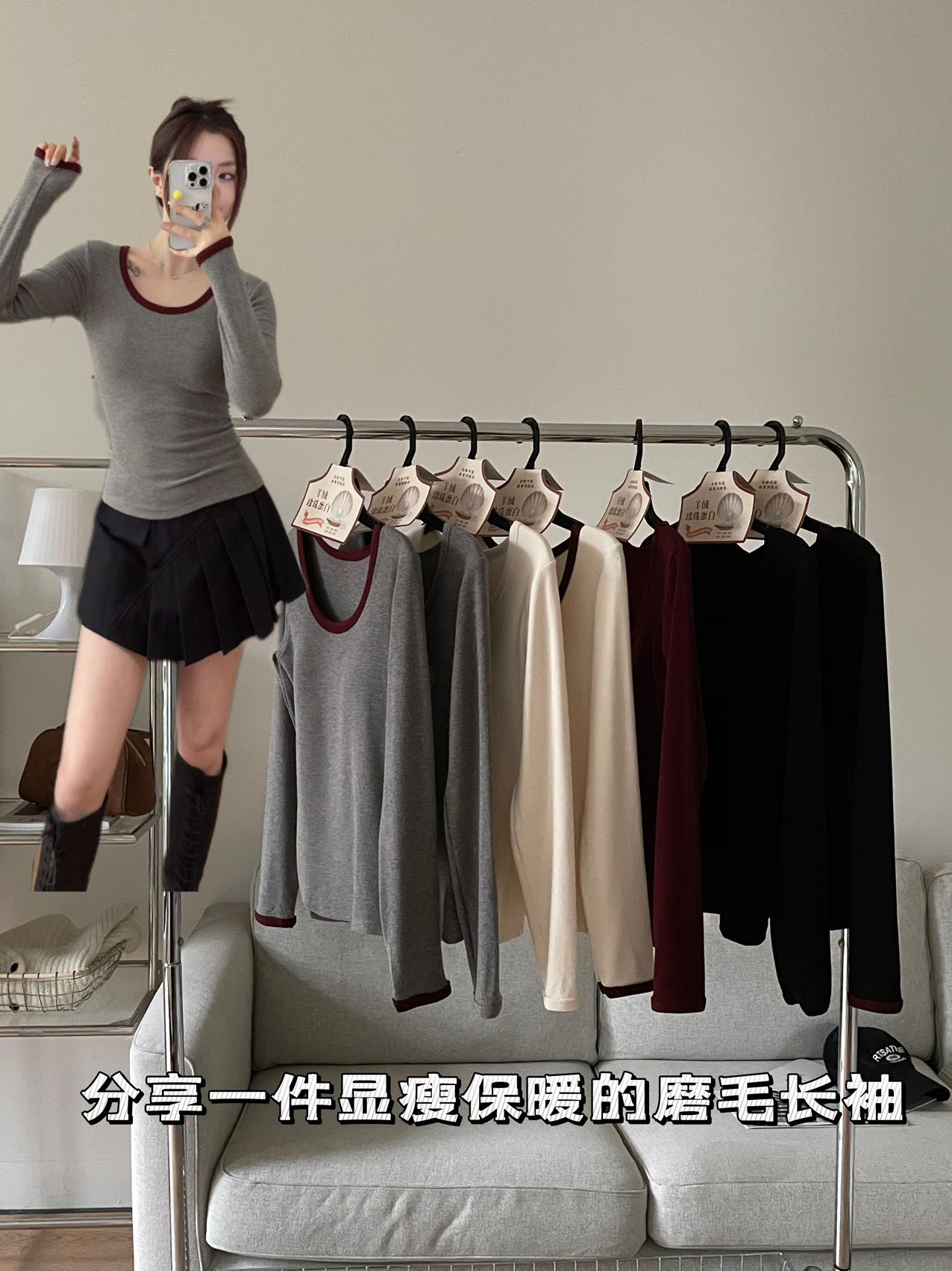 品牌zheng品带挂装衣架‼️!一体式磨毛百搭圆领长袖。羊绒针织胶原蛋白螺纹!透气 吸湿 柔软 抗菌 滋润 润肤 新品打底衫一眼惊艳韩剧女主角都在穿的气质打底 上身超有辨识度✨✨✨ 可日常通勤且简约~ 可慵懒随性又艺术~•[颜色选择]灰撞红 暖阳白 高级灰 经典黑 黑撞红 白撞红 安可拉红 超有女人味的一款打底衫 7个颜色非常衬肤色!!! 只需一眼就令人难以忘记~ 单穿或叠穿都可以成为焦点哦 •穿过最舒服的打底衫没有之一 每年都要卖十几万件的口碑单品 今年原料无限涨价我依然不涨价。简直好穿到词穷‼️‼️‼️ 免烫kang静电不易变形、不易黏毛。经过多次洗涤仍能保持如新🆕/摸上去很柔软像云朵,贴身轻柔细腻.糯糯的软软的,弹性巨大,毫无束缚感。轻轻包裹在身上,单穿贴身穿丝毫无压力。姐妹们轻松穿出优雅气质调调😎 尺码:均码 135斤以内⚠️ 颜色:灰撞红 暖阳白 高级灰 经典黑 黑撞红 白撞红 安可拉