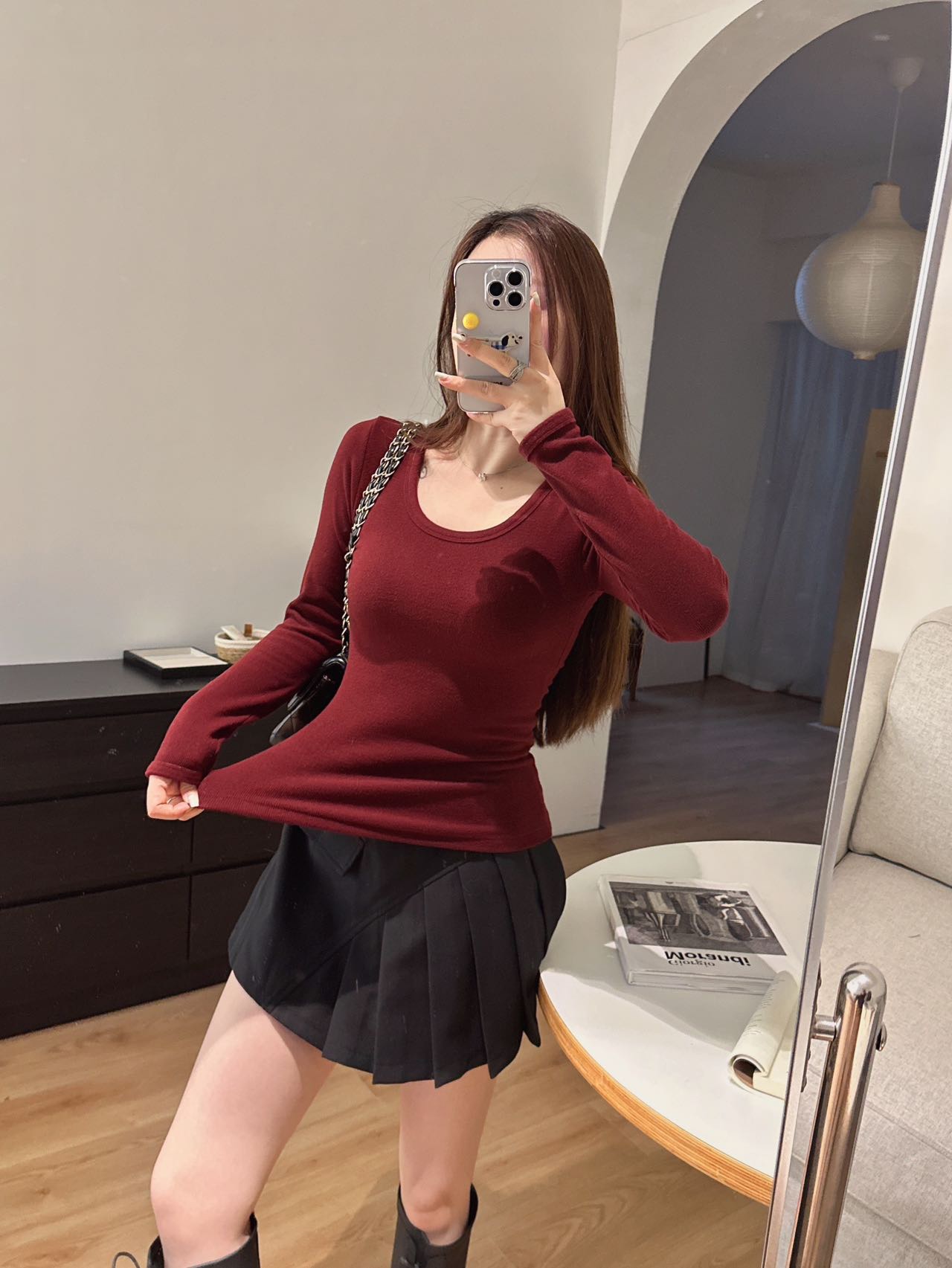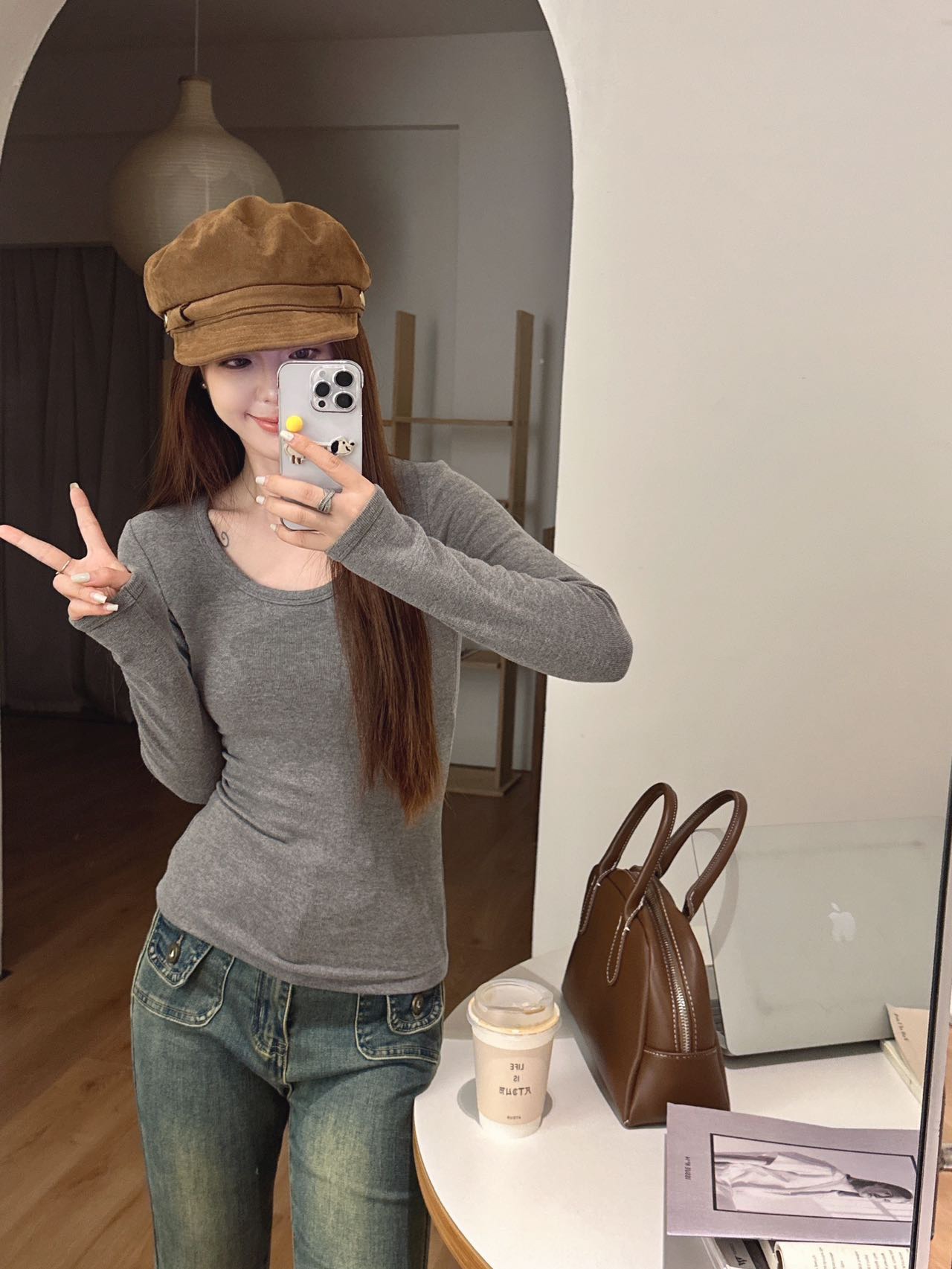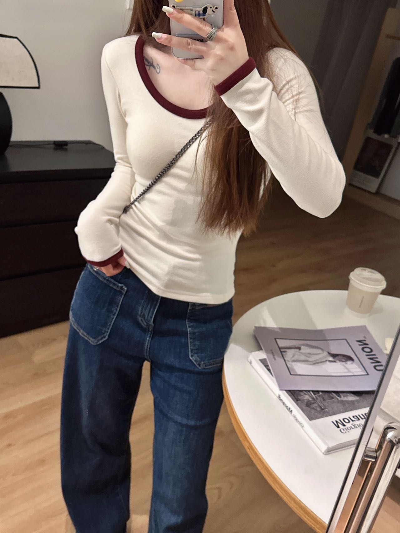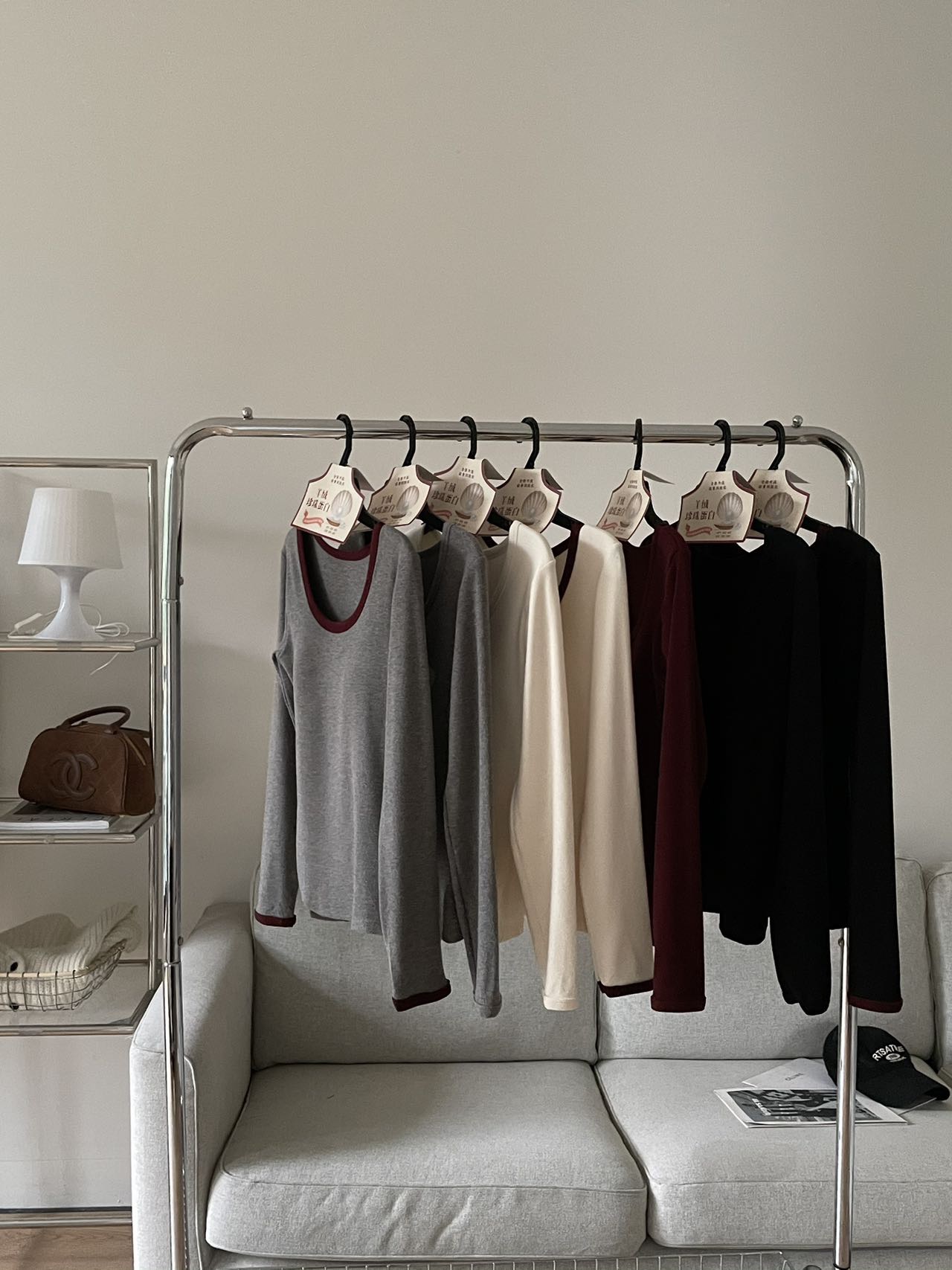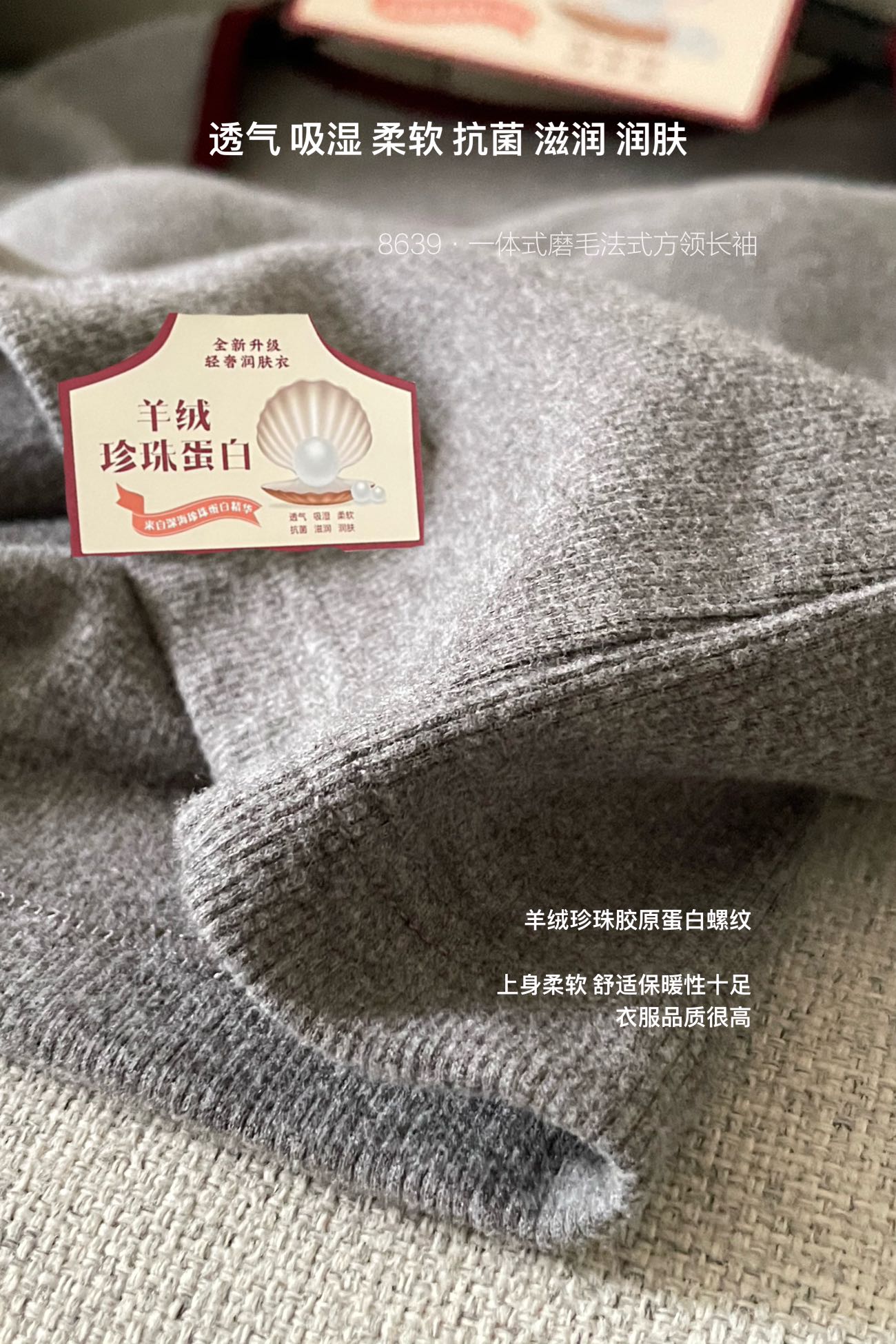 品牌zheng品带挂装衣架‼️!一体式磨毛百搭圆领长袖。羊绒针织胶原蛋白螺纹!透气 吸湿 柔软 抗菌 滋润 润肤 新品打底衫一眼惊艳韩剧女主角都在穿的气质打底 上身超有辨识度✨✨✨ 可日常通勤且简约~ 可慵懒随性又艺术~•[颜色选择]灰撞红 暖阳白 高级灰 经典黑 黑撞红 白撞红 安可拉红 超有女人味的一款打底衫 7个颜色非常衬肤色!!! 只需一眼就令人难以忘记~ 单穿或叠穿都可以成为焦点哦 •穿过最舒服的打底衫没有之一 每年都要卖十几万件的口碑单品 今年原料无限涨价我依然不涨价。简直好穿到词穷‼️‼️‼️ 免烫kang静电不易变形、不易黏毛。经过多次洗涤仍能保持如新🆕/摸上去很柔软像云朵,贴身轻柔细腻.糯糯的软软的,弹性巨大,毫无束缚感。轻轻包裹在身上,单穿贴身穿丝毫无压力。姐妹们轻松穿出优雅气质调调😎 尺码:均码 135斤以内⚠️ 颜色:灰撞红 暖阳白 高级灰 经典黑 黑撞红 白撞红 安可拉