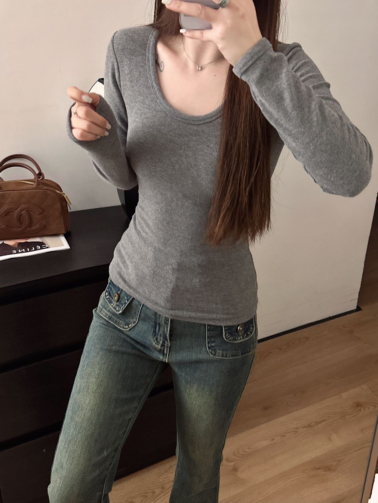 高级灰色✨穿起来显瘦有直角肩显脖子细显手臂纤长woc这是什么神仙打底衫🥲🥲🥲要做就做到最高品质的‼️‼️‼️你们拿到手就能感受这个质量这个价格了发热面料的一件抵得上别人家3件.自制选了最贵的保暖黑科技新型面料.