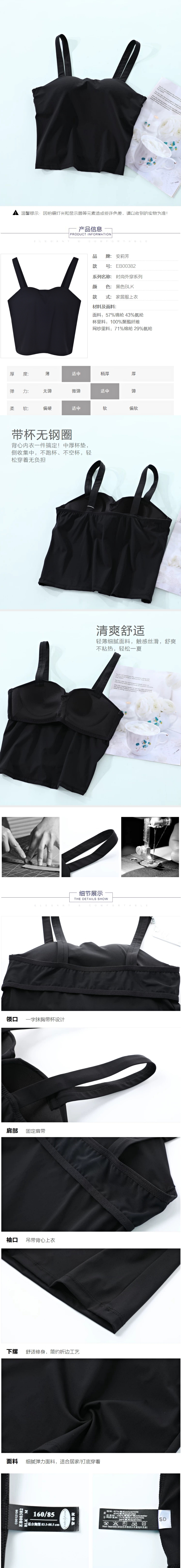 安莉芳新品带罩杯无钢圈背心短款吊带女秋冬打底上衣EB00382 499