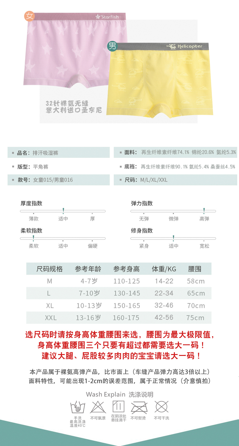 温馨提醒:小内裤是贴身穿,不是宽松版,每个孩 子体型不一样,接近边缘的尺寸建议选大一码,仅供参考。