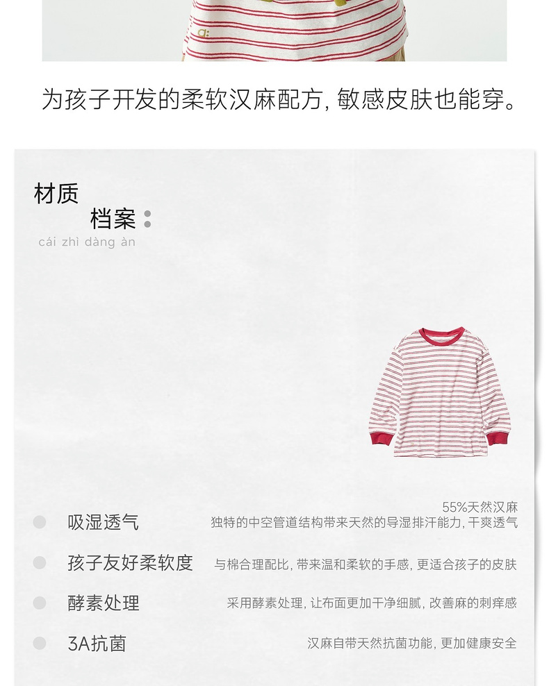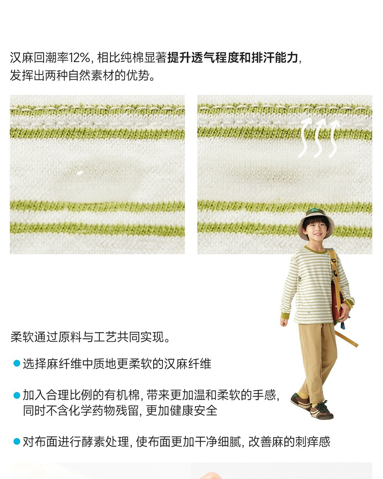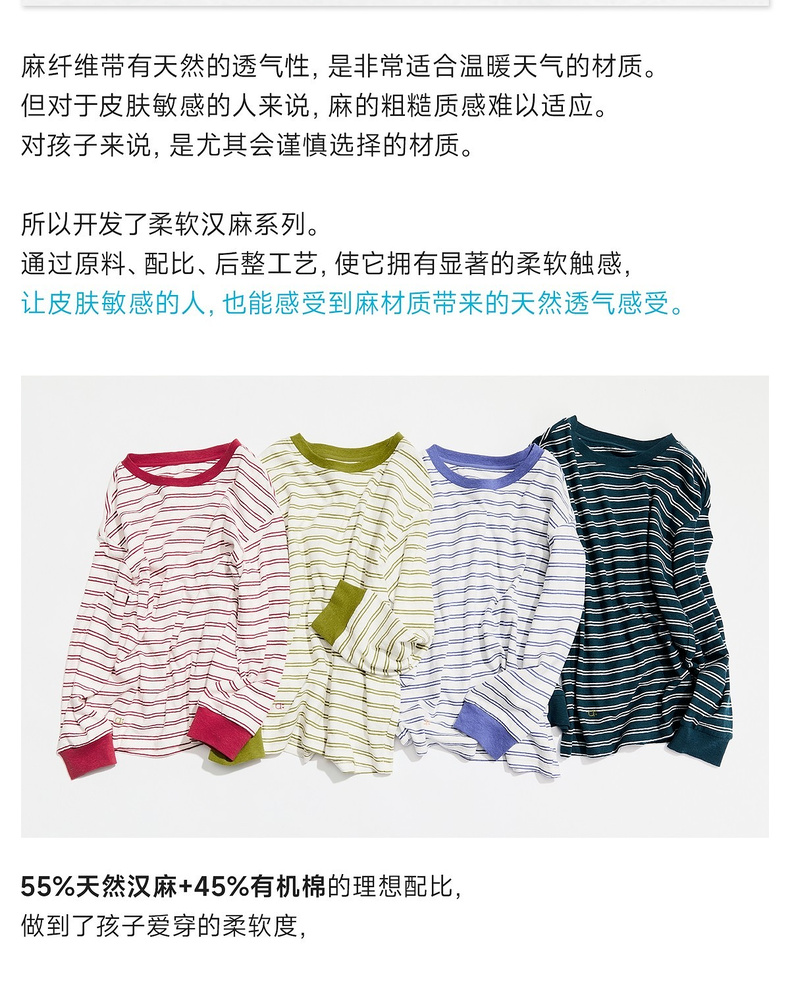 【柔软汉麻】allblu幼岚【柔软汉麻】儿童细纹长袖T恤26春夏男童女童吸湿透气