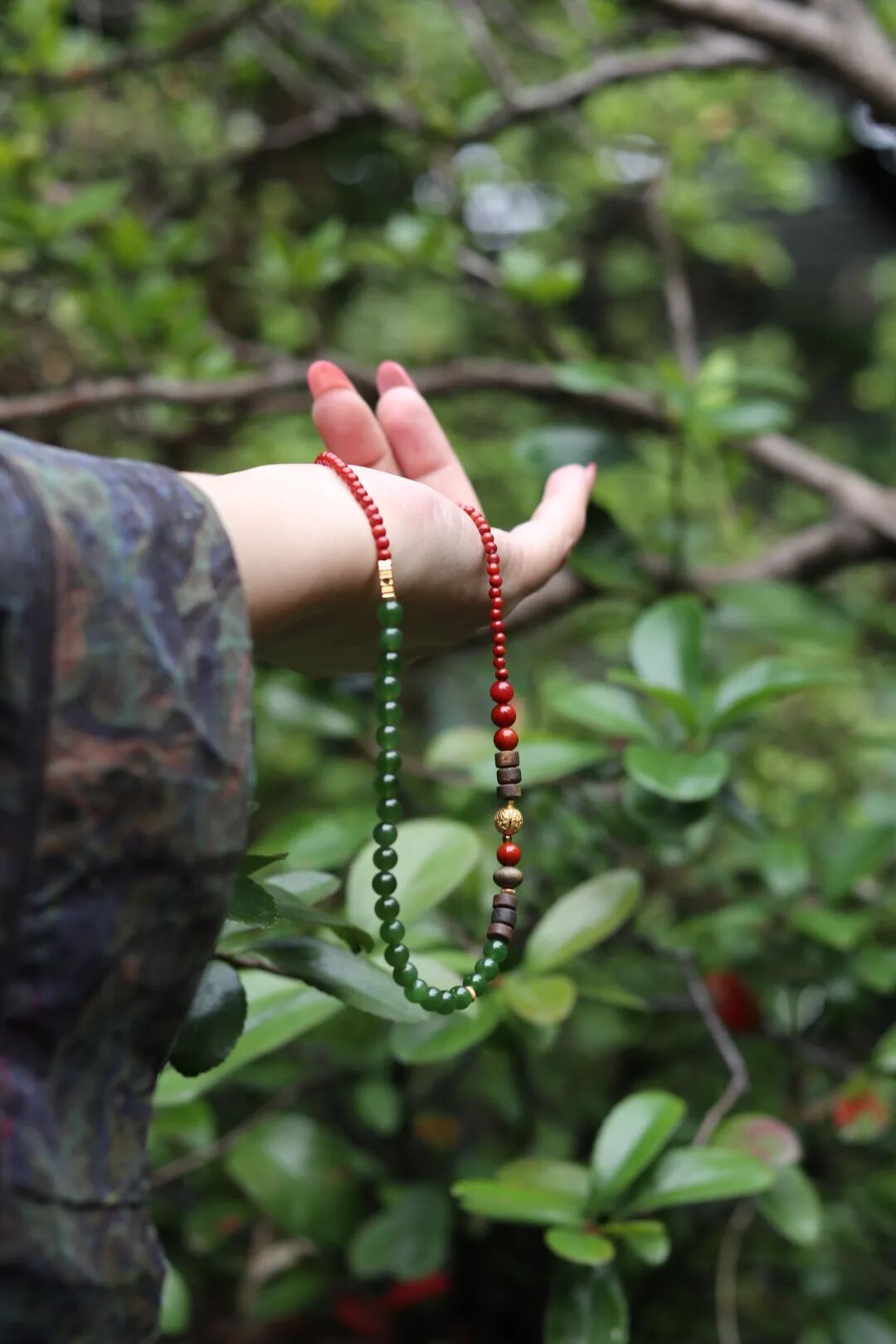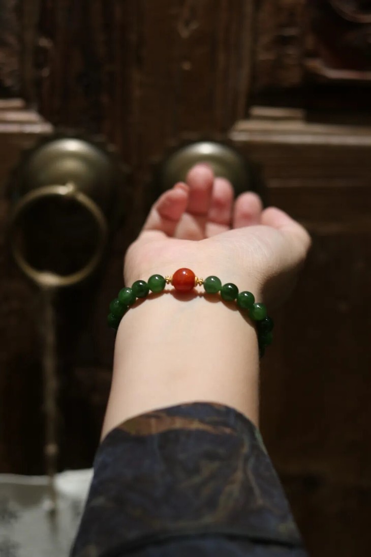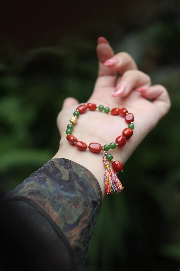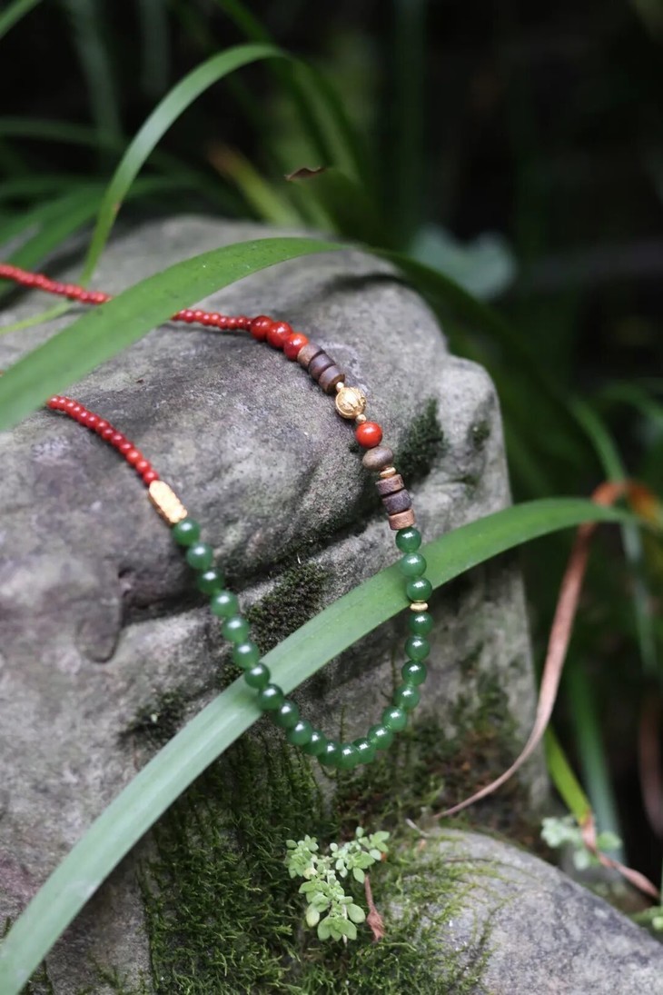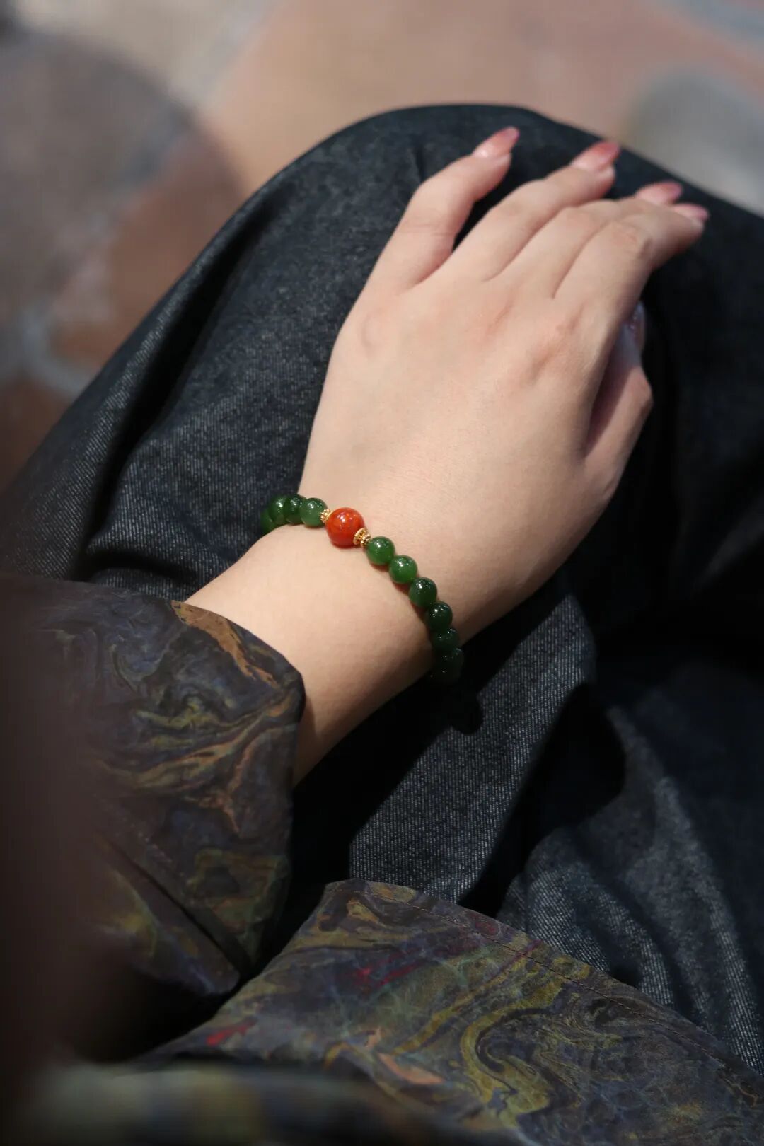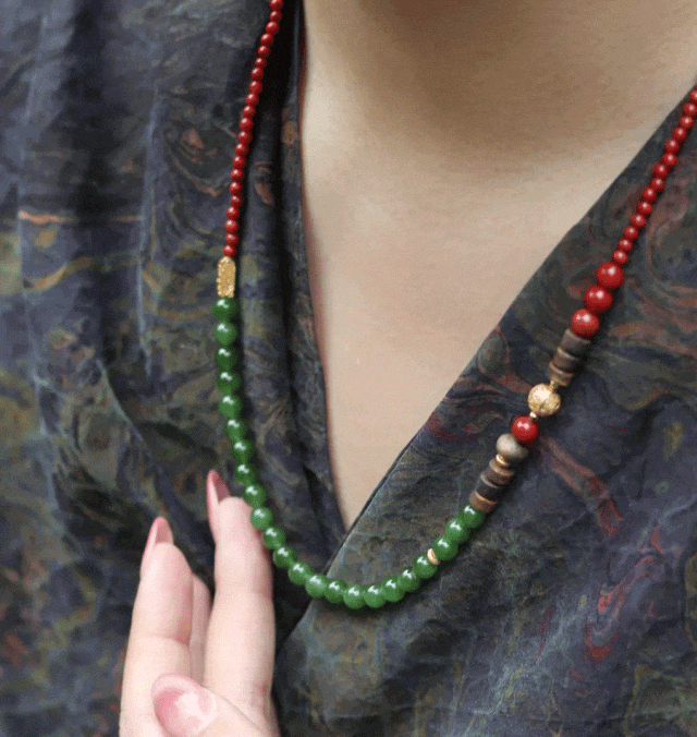 南红与碧玉的邂逅,似故宫朱墙掩映苍松翠柏。源自中国人骨子里的浪漫,热烈却不张扬,清雅而不孤冷。