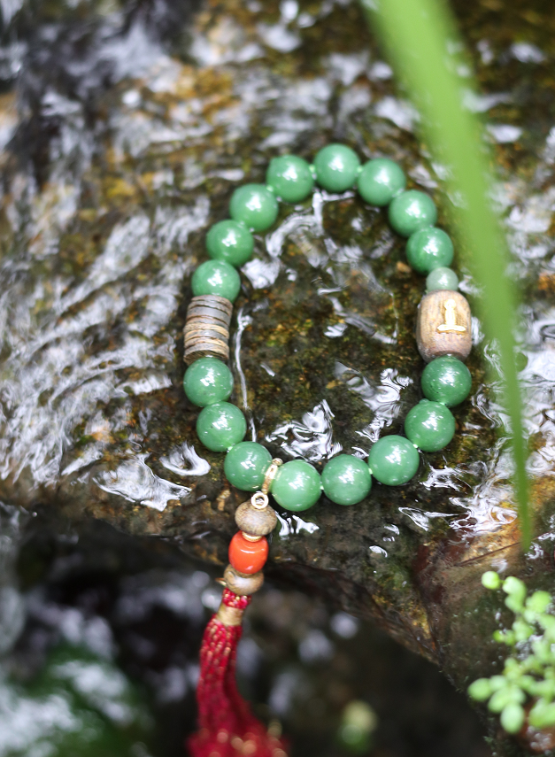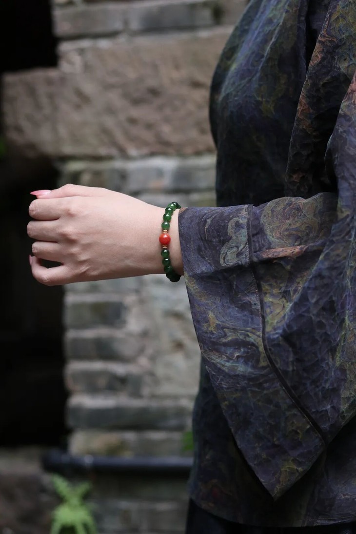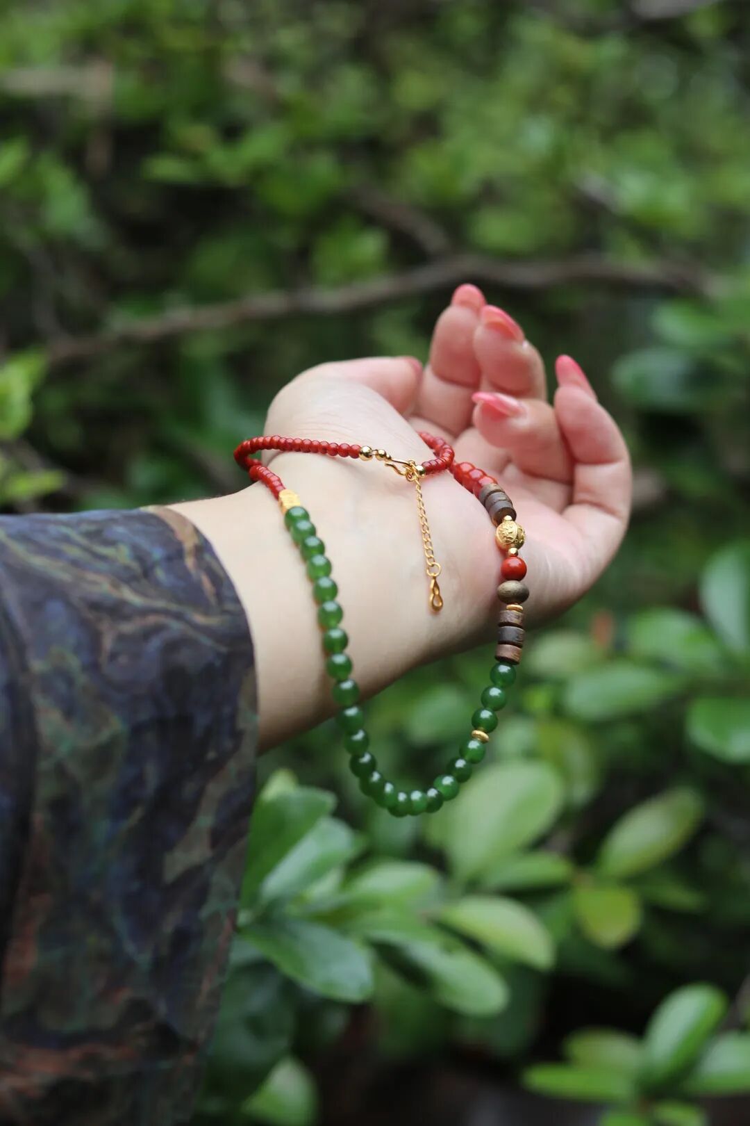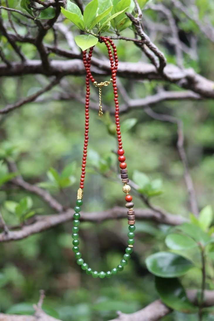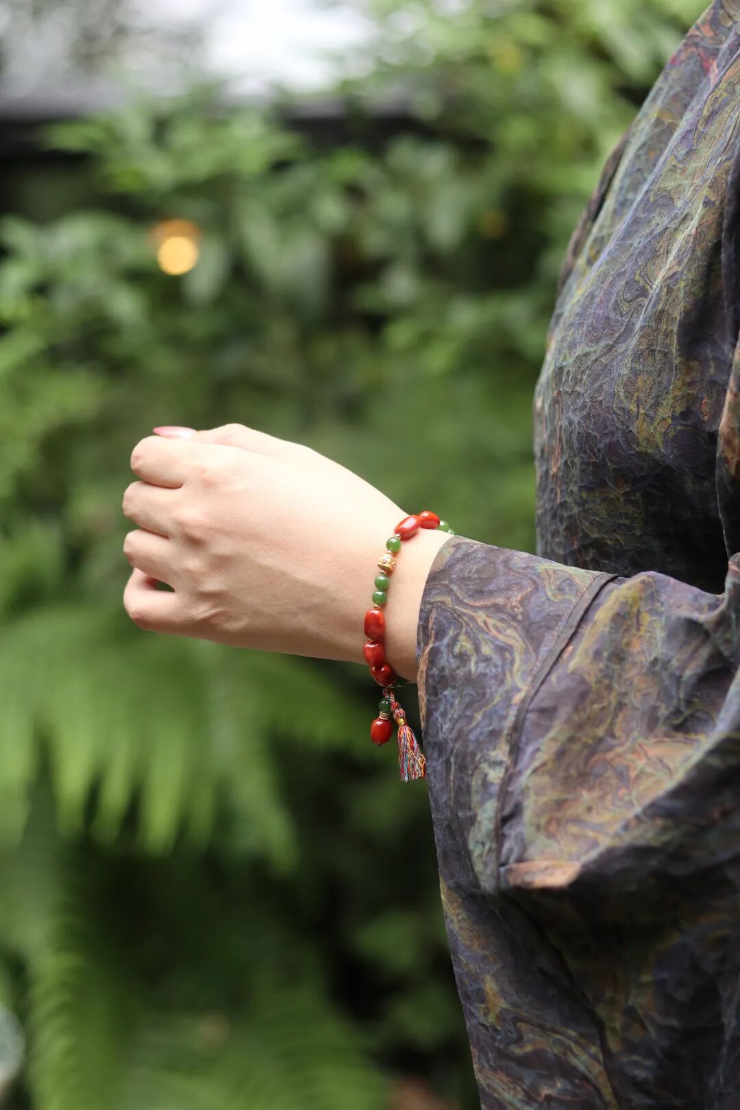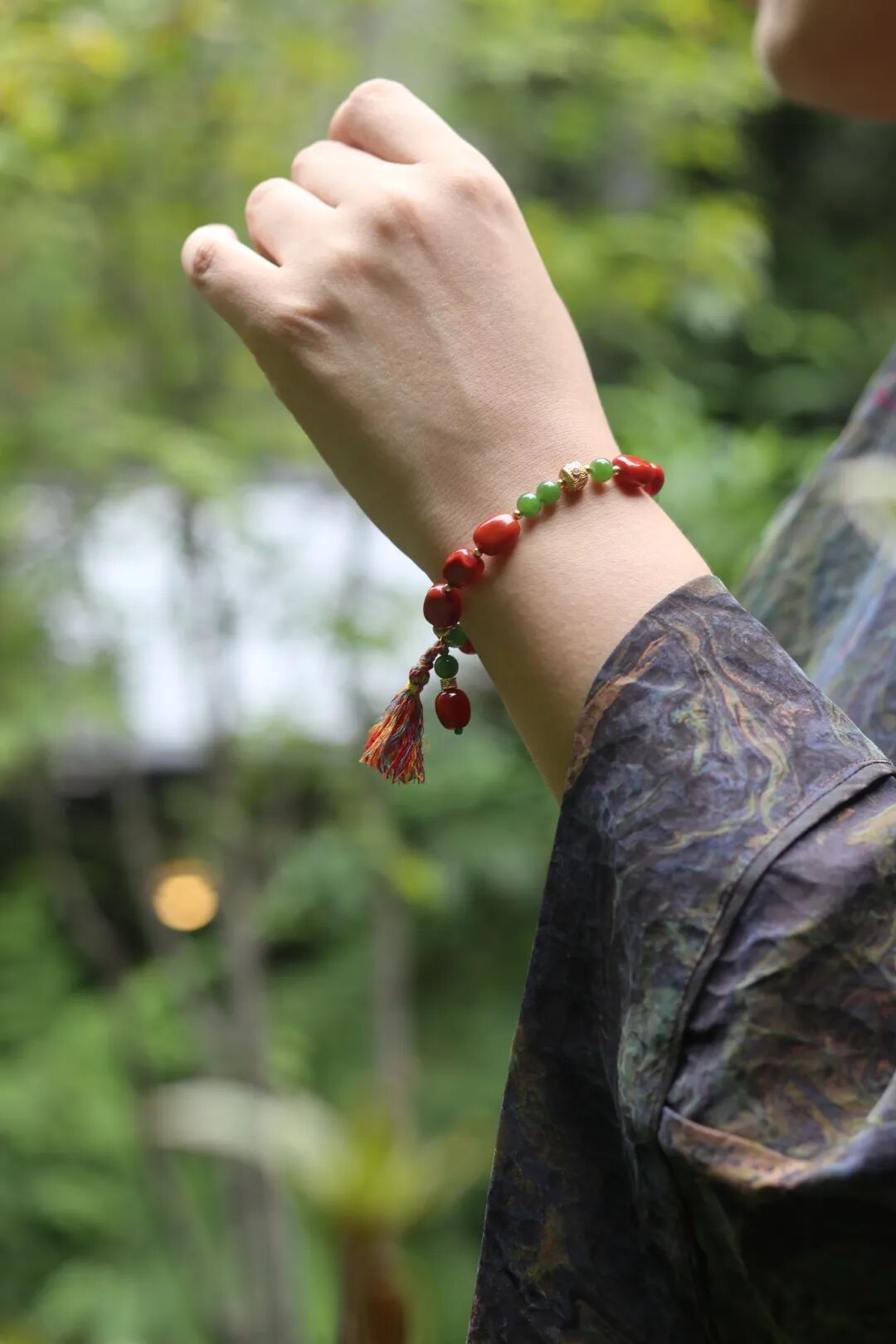 南红与碧玉的邂逅,似故宫朱墙掩映苍松翠柏。源自中国人骨子里的浪漫,热烈却不张扬,清雅而不孤冷。