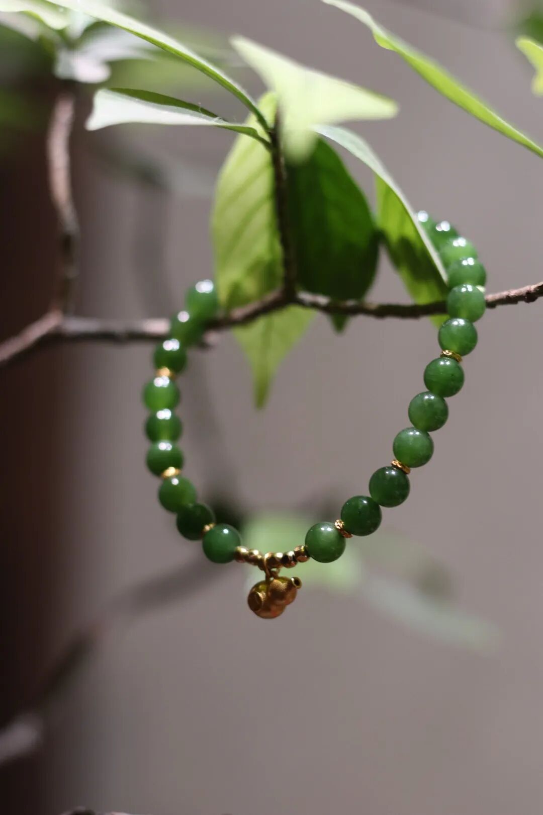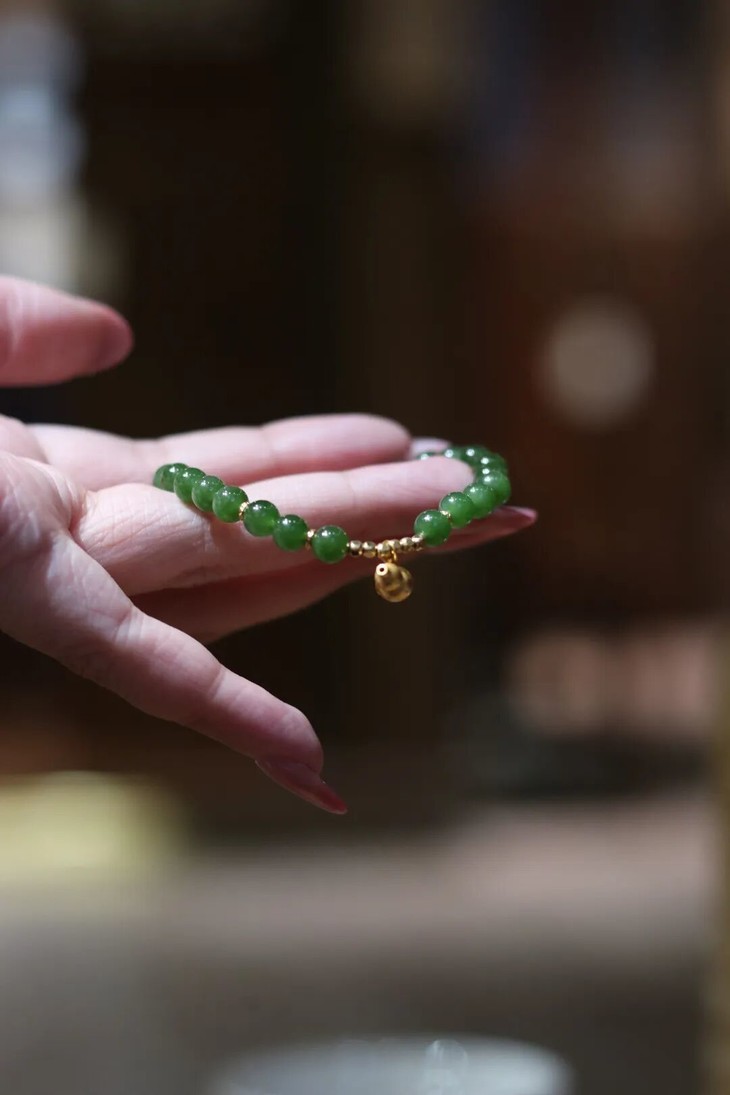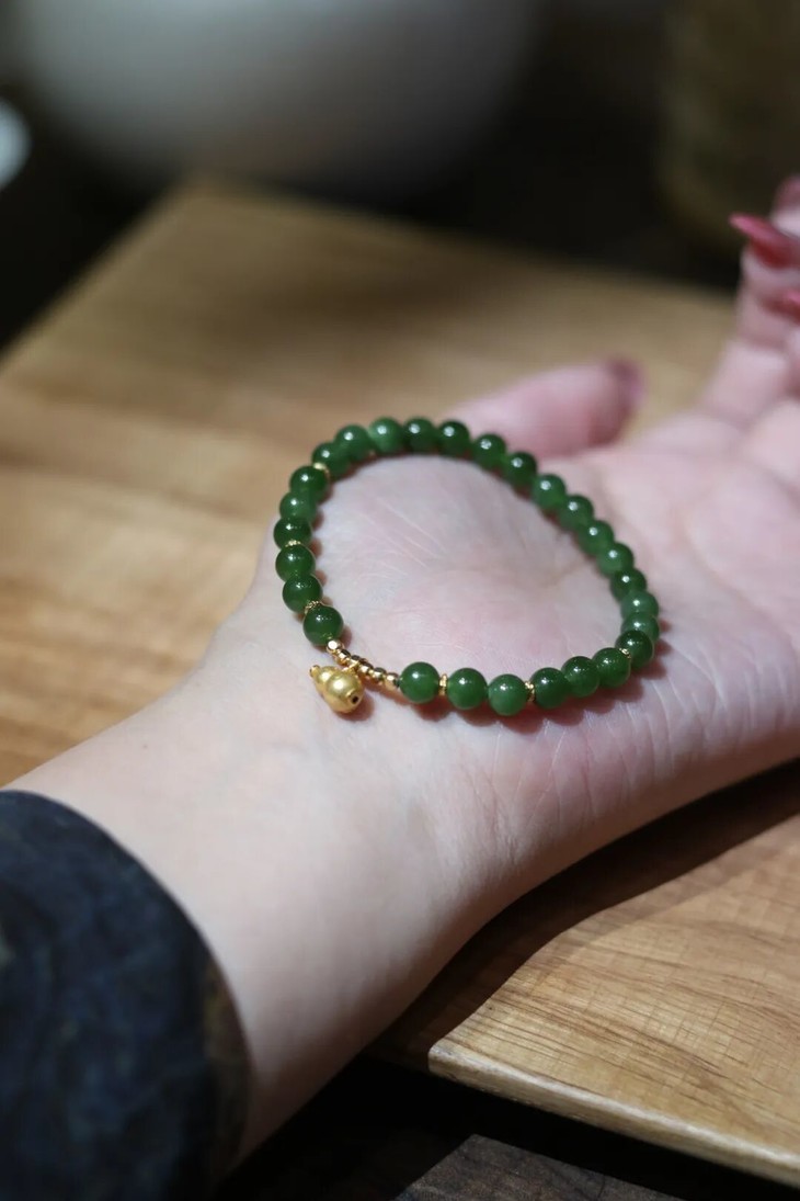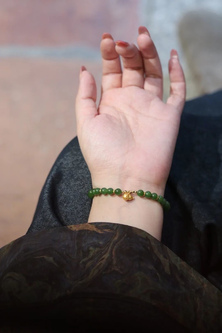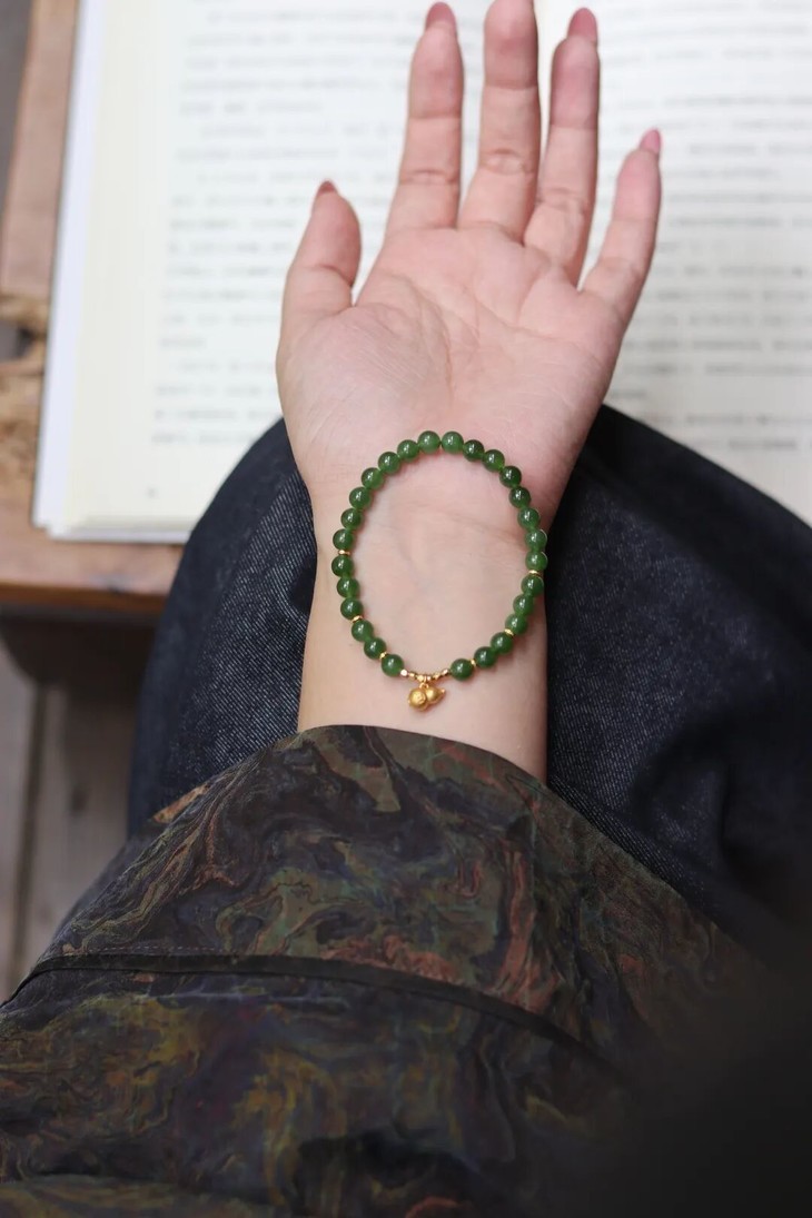 天然和田玉碧玉细腻温润,金色葫芦寓意拉满,五福临门和中式美学的精致感直接焊在手上!