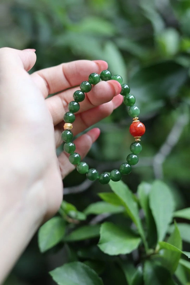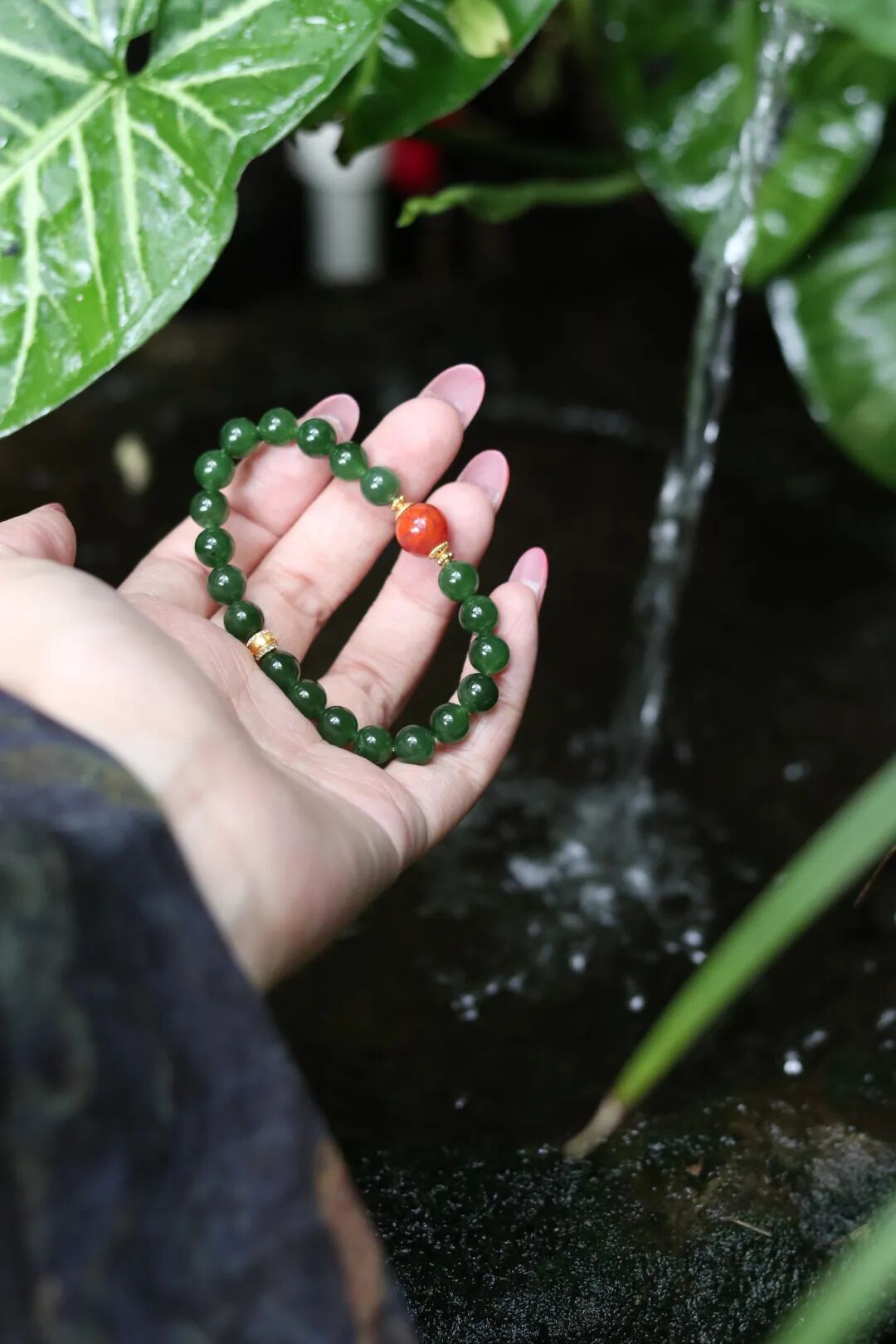 材质:和田玉碧玉+火焰纹南红6mm+南红3mm小米珠