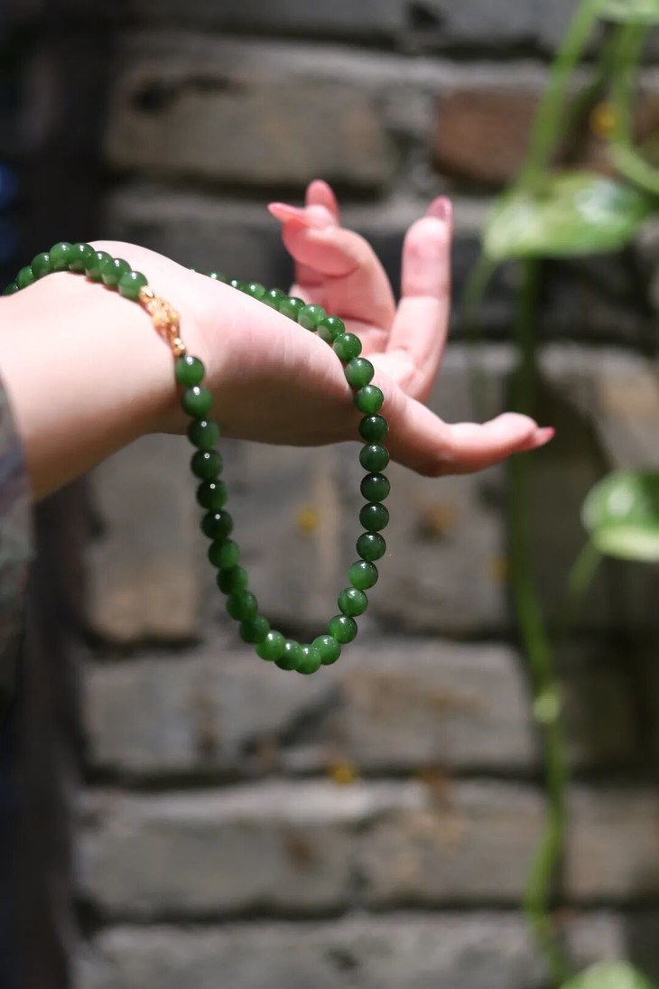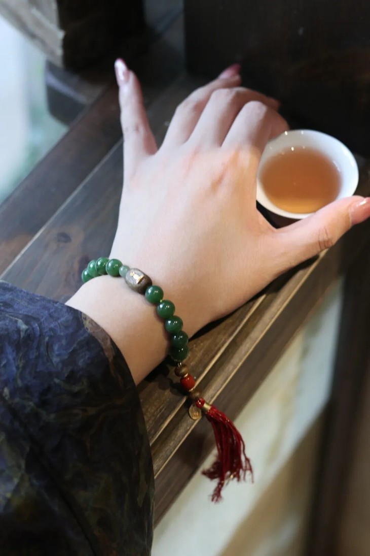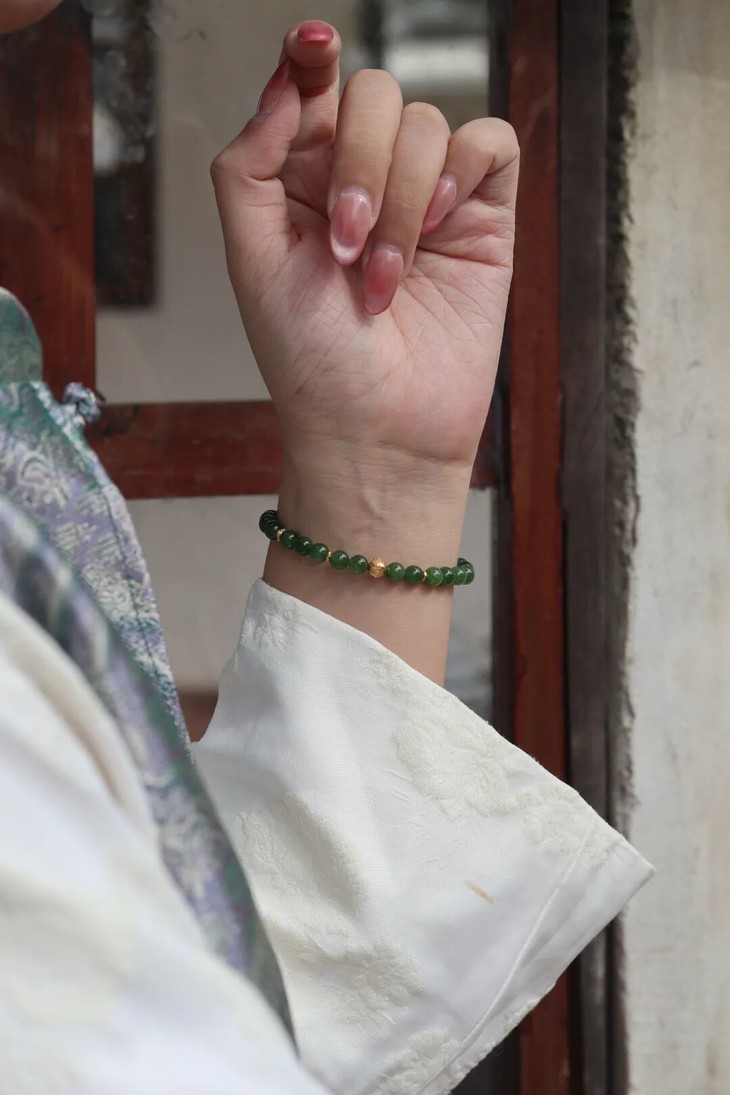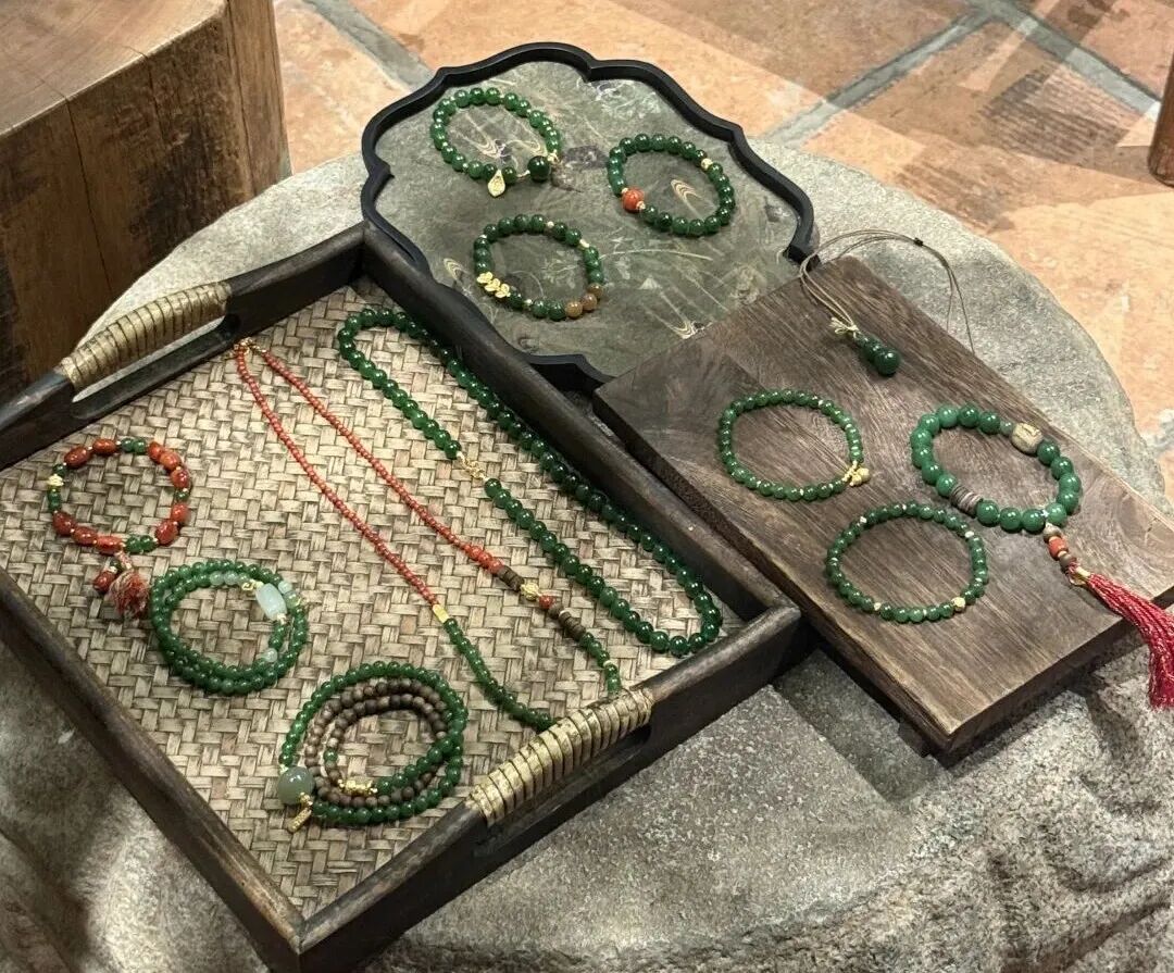 如今我们向老朋友「寻山隐」,争取到了少许定制了一批碧玉手串、首饰。
