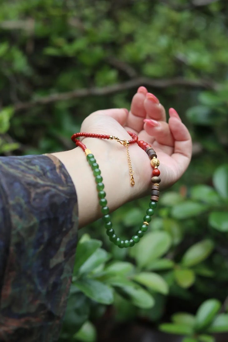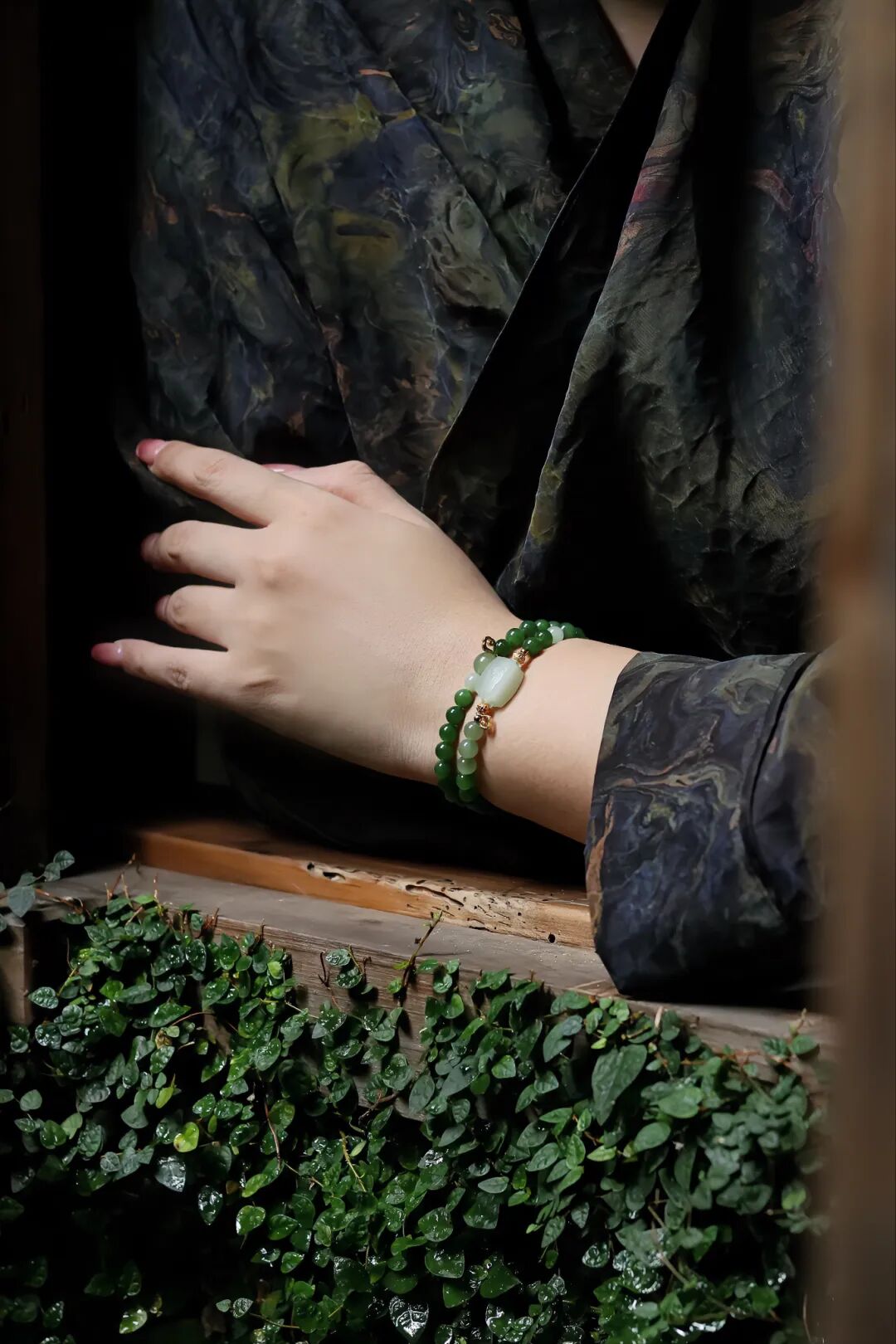 把故宫的月色红墙戴在腕上,当南红的炽热、碧玉的苍翠与白玉的清冷相遇,