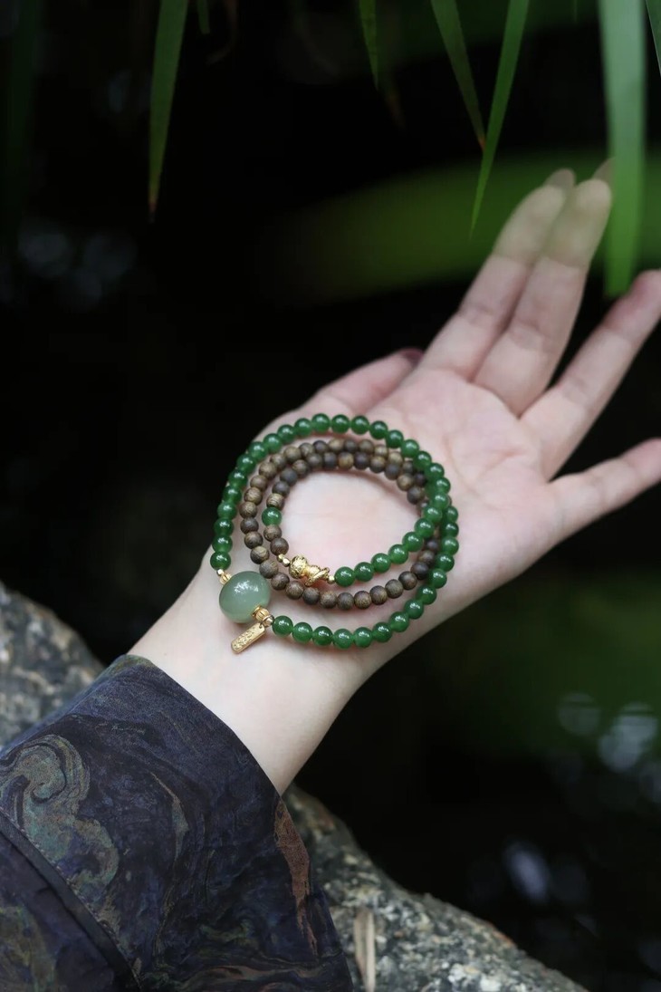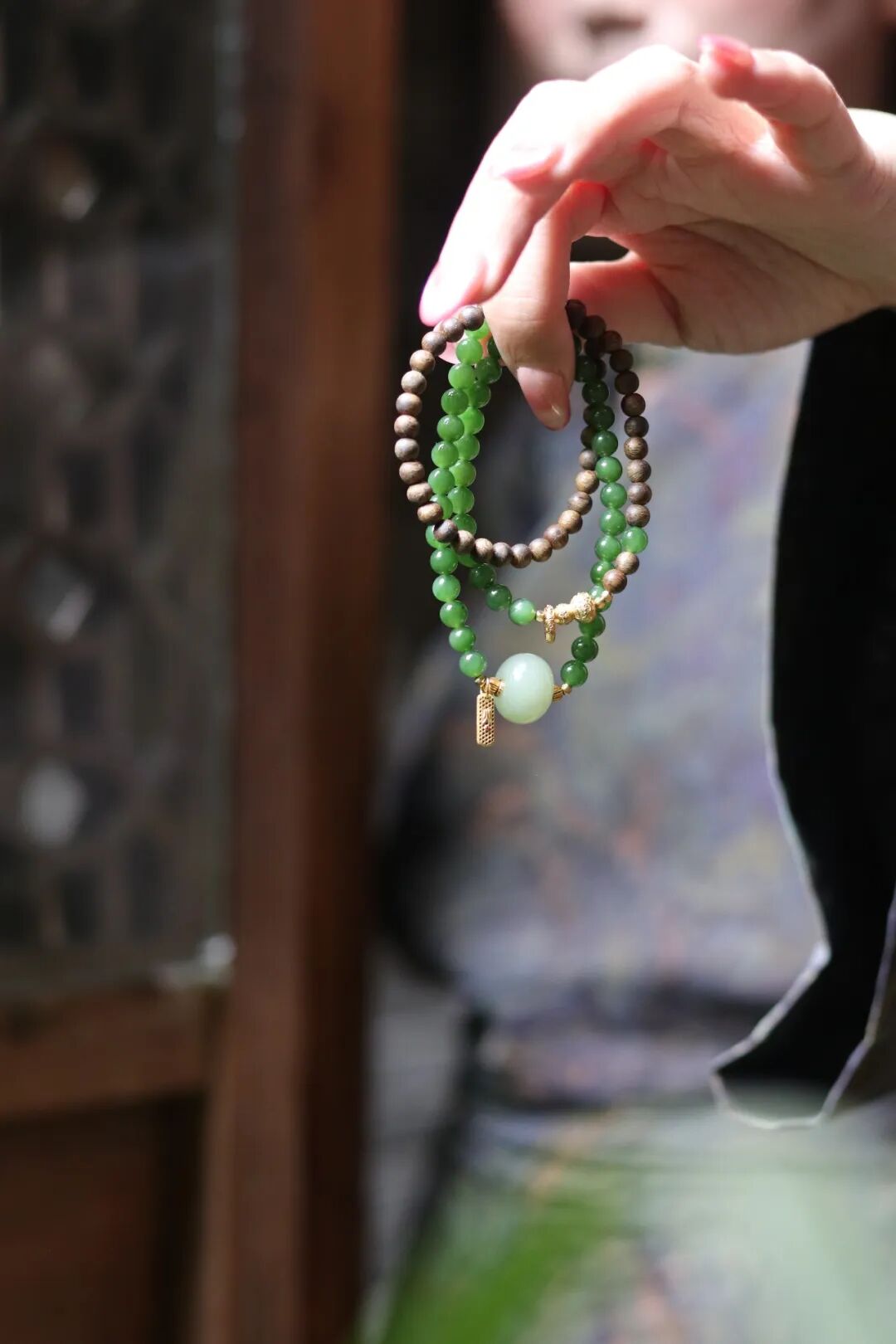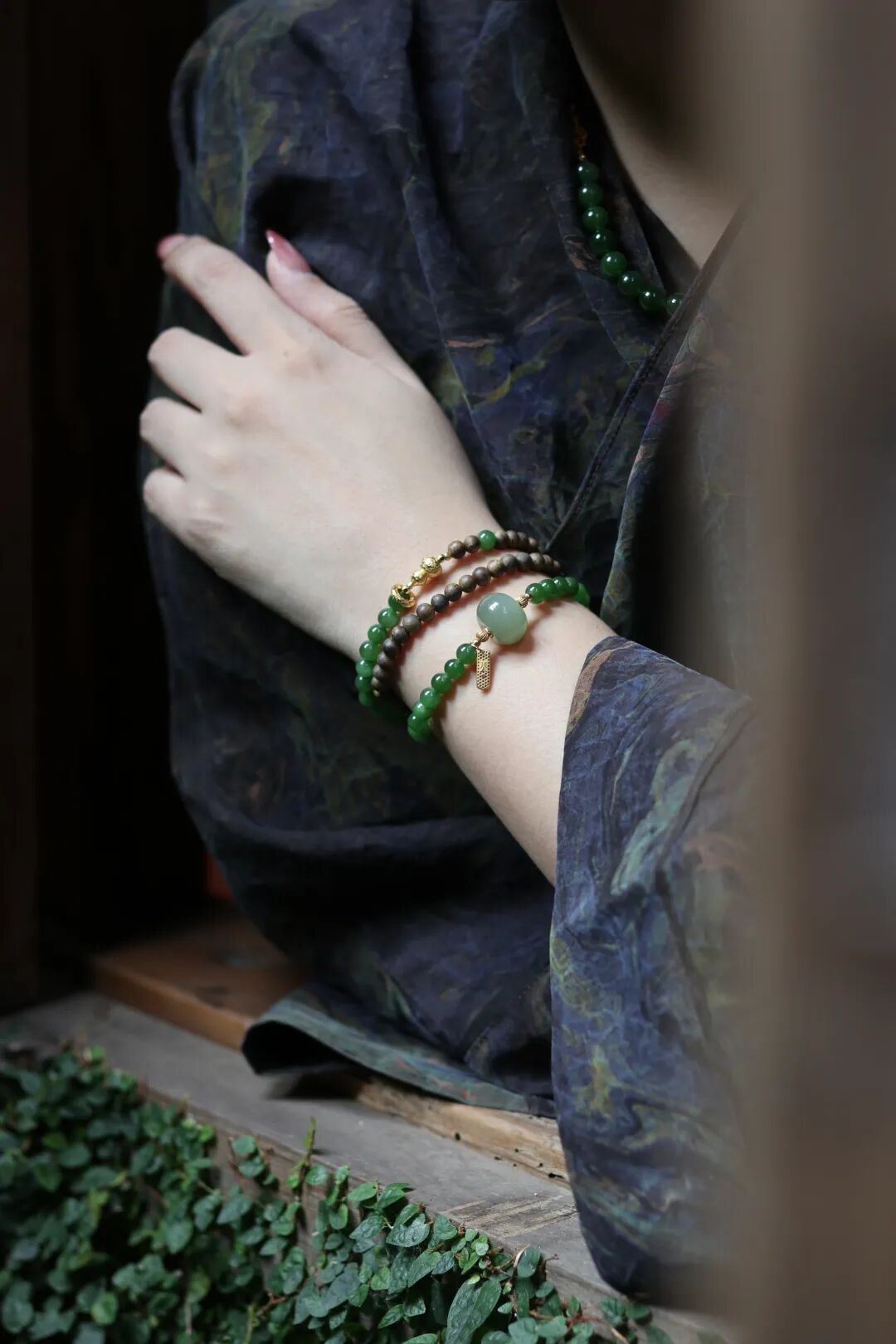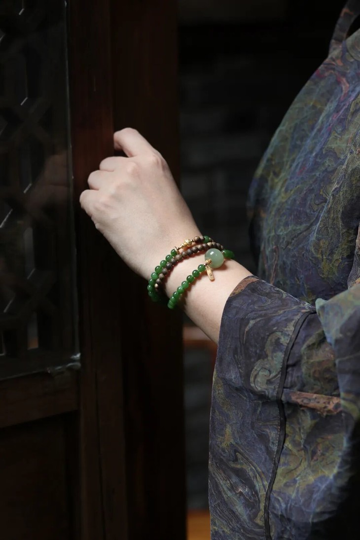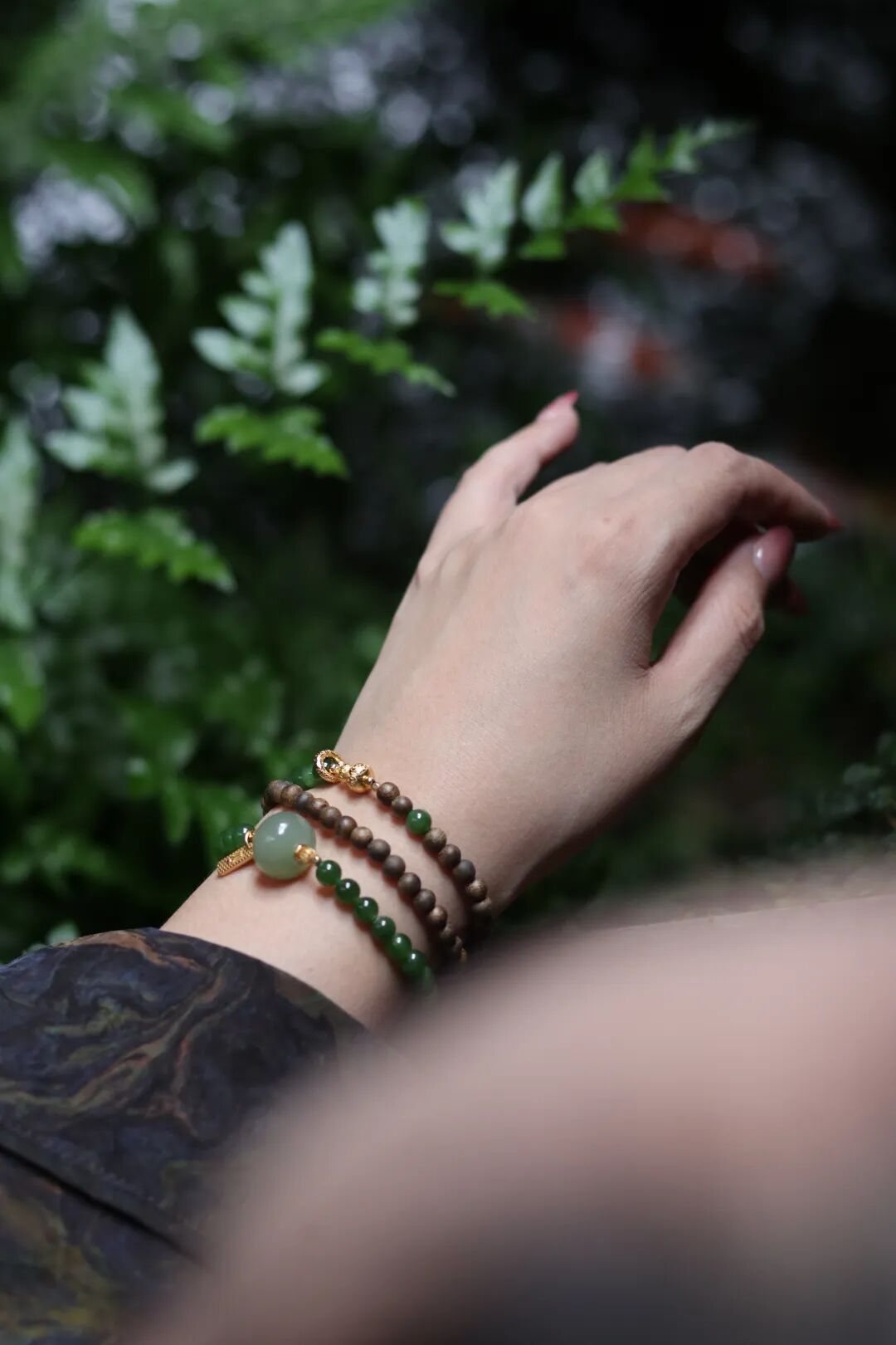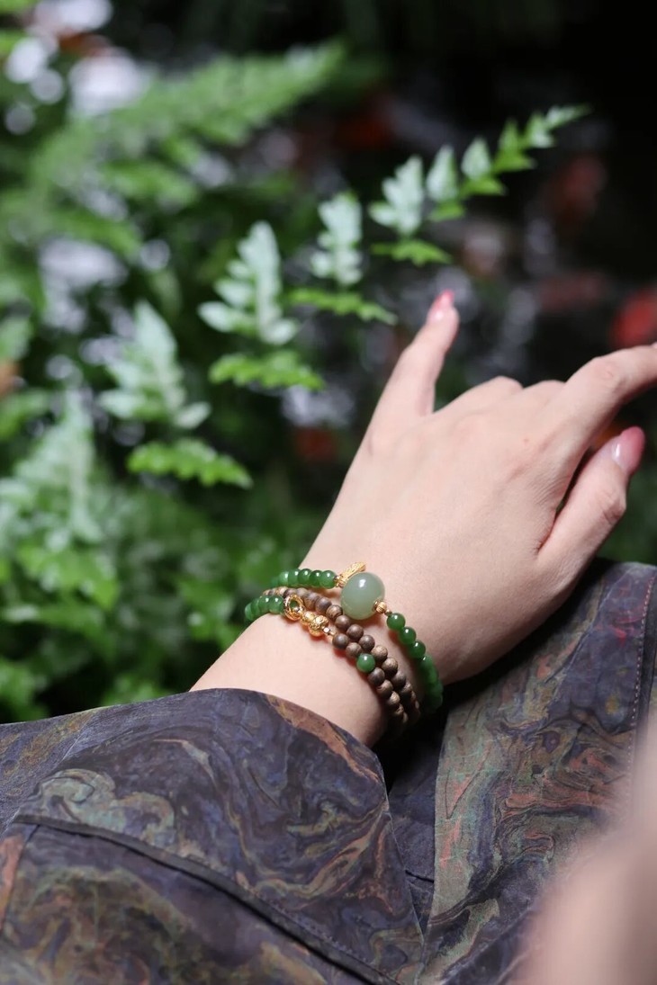 戴在腕间,是沉香的古韵,也是玉石的温润,把中式美学的细腻都揉进了日常。就喜欢这种藏在细节里的东方浪漫。