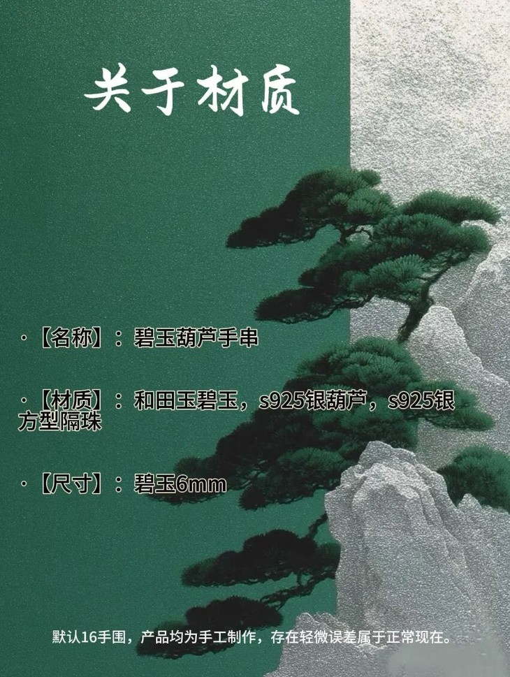 材质:和田玉碧玉+925银葫芦+925银方形隔珠