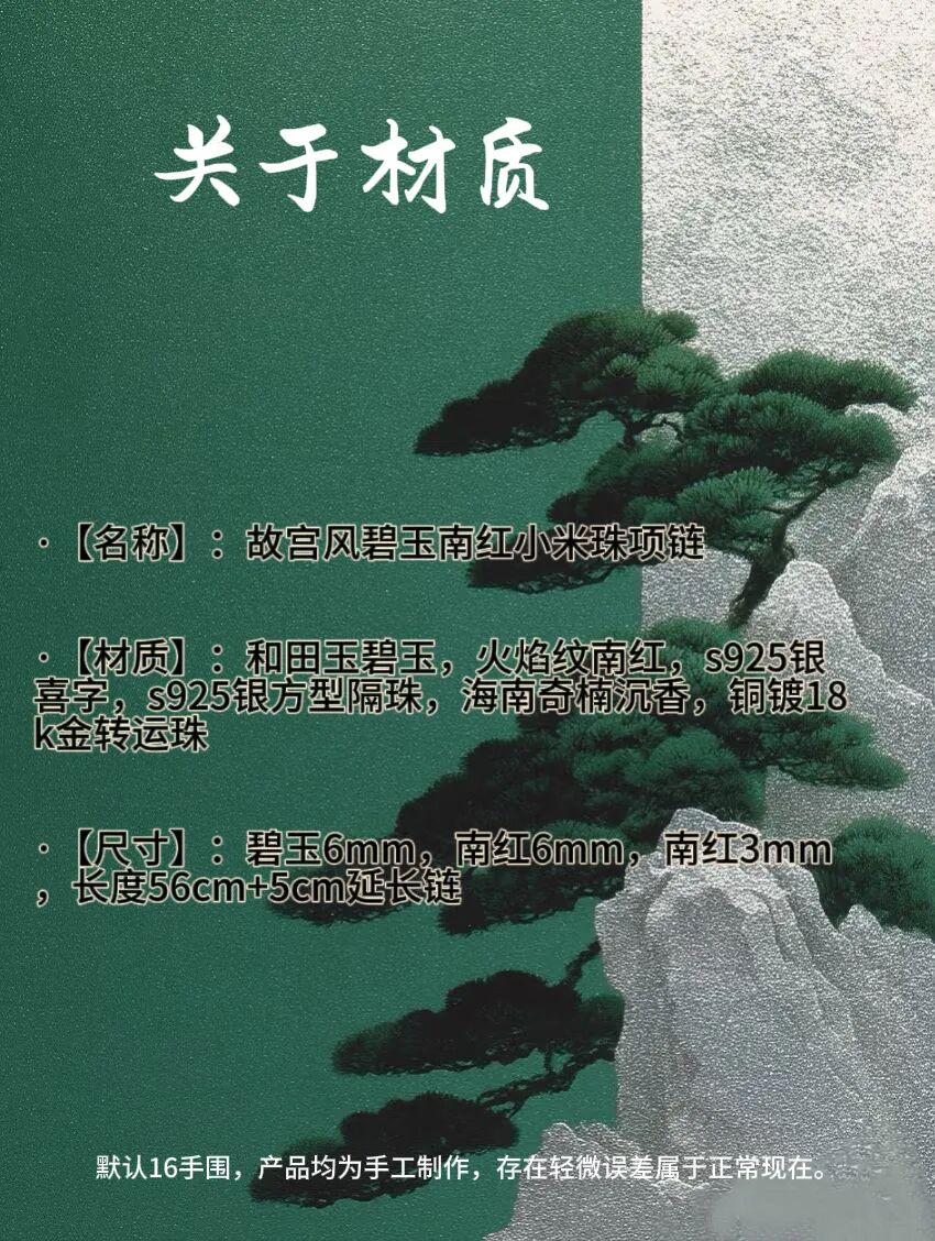 🔺尺寸:碧玉6mm,南红6mm,南红3mm,长度56cm