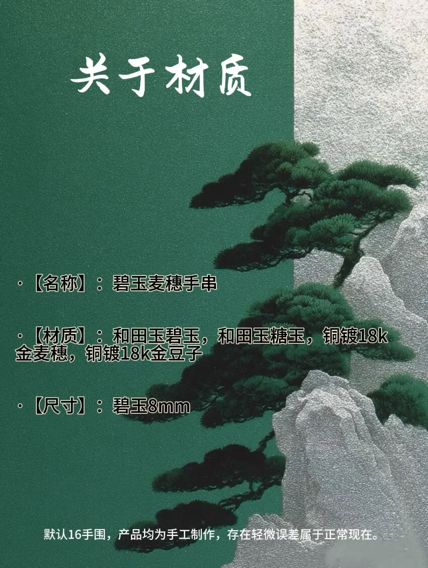 材质:和田玉碧玉+和田玉糖玉+铜镀18k麦穗+铜镀18k金豆子