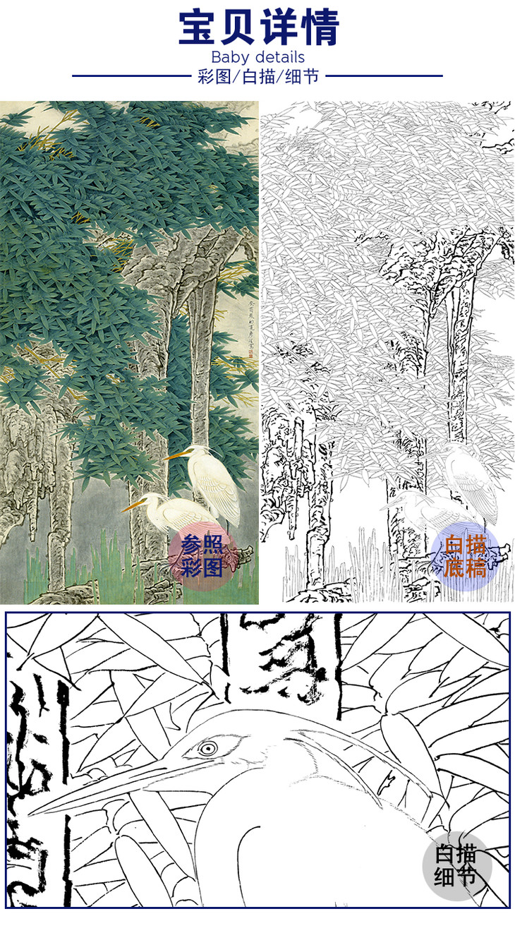 竖幅工笔花鸟白描底稿-白鹭-周彦生《清江寒仕》-多种白描尺寸可选-QN13