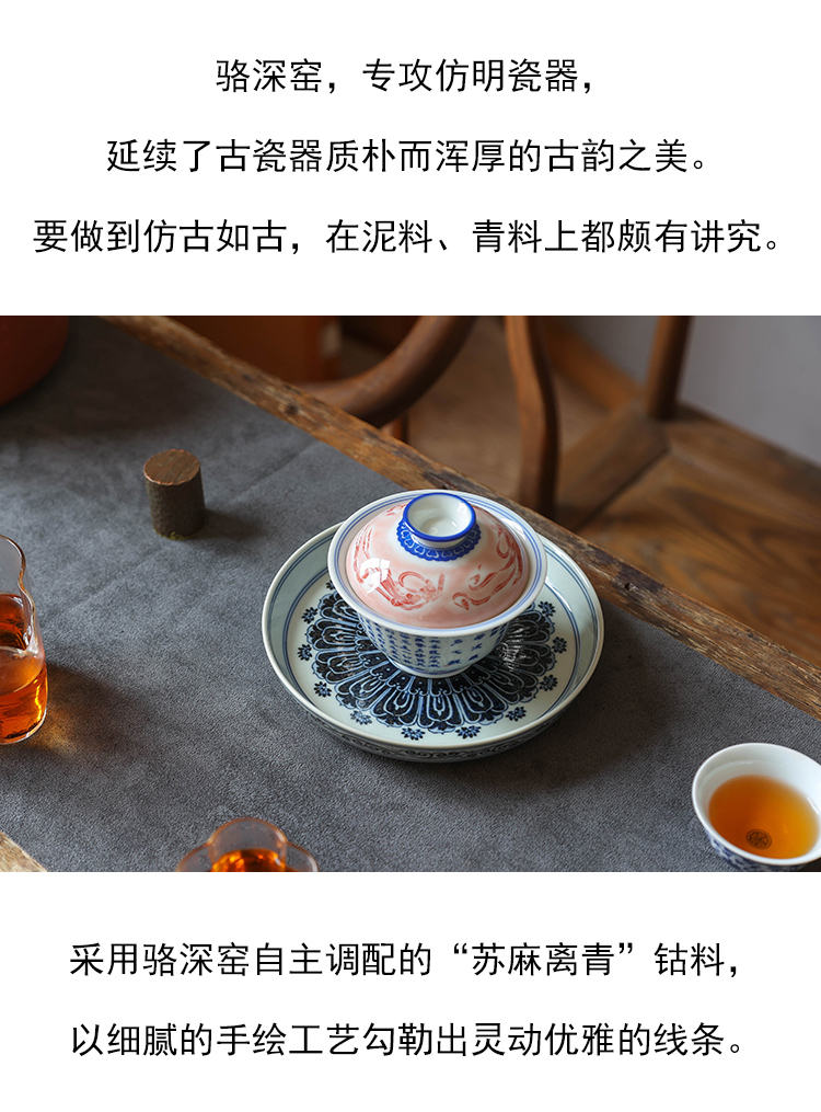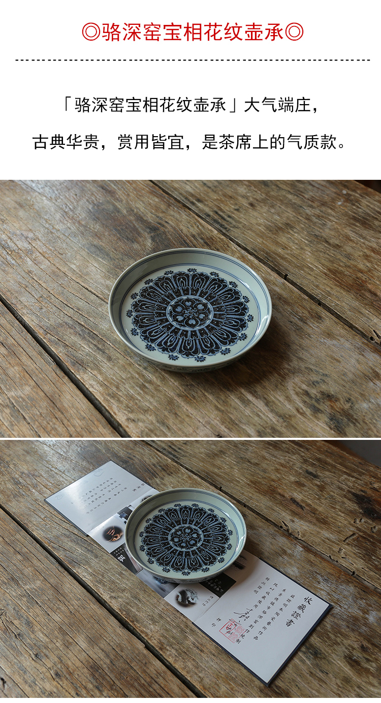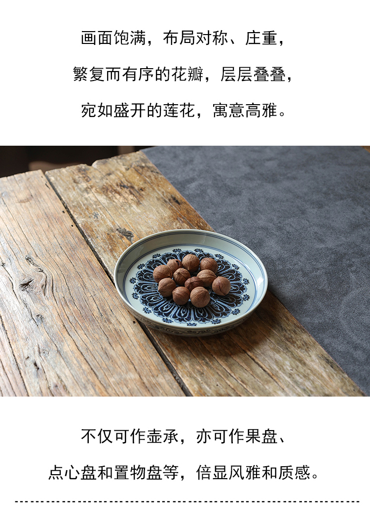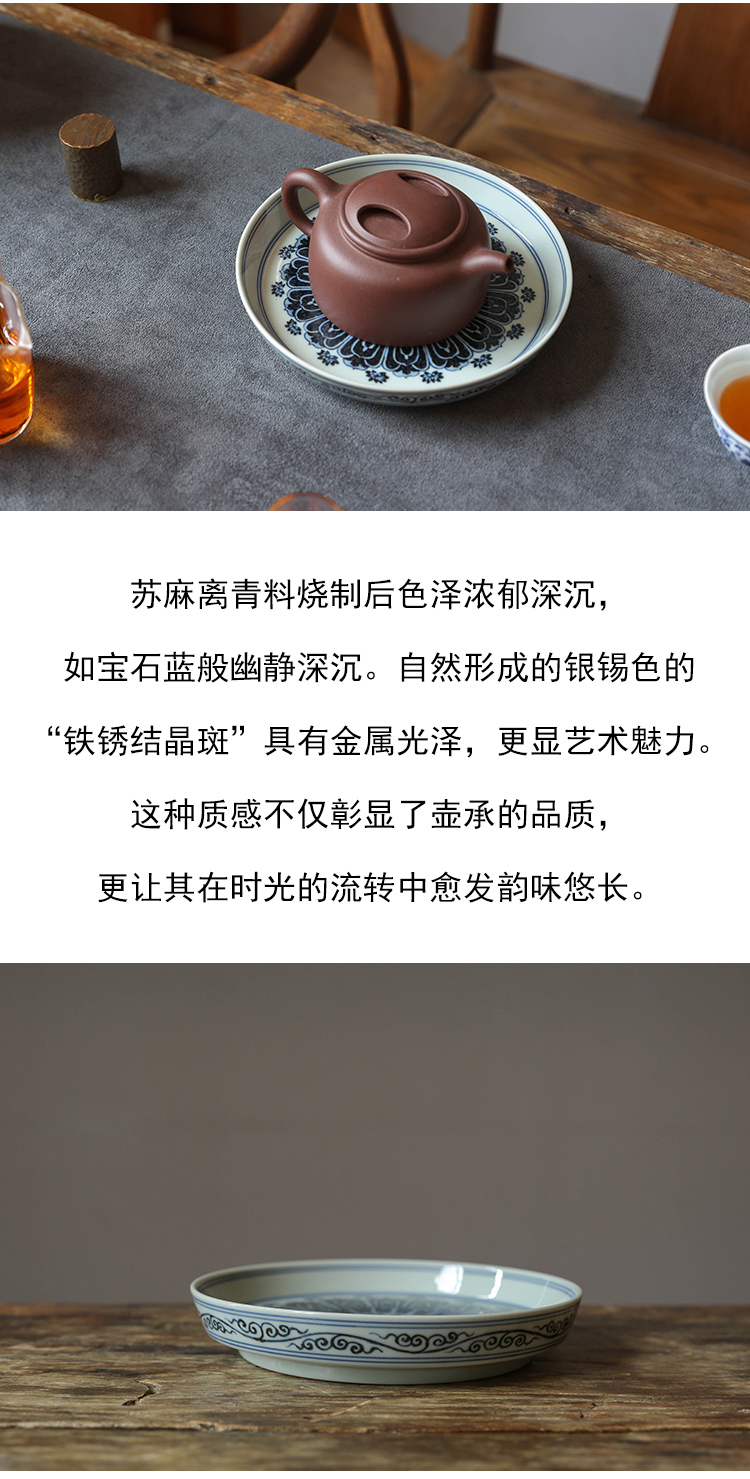 茶香记 骆深窑宝相花纹壶承景德镇青花茶盘复古典雅茶盘茶道零配