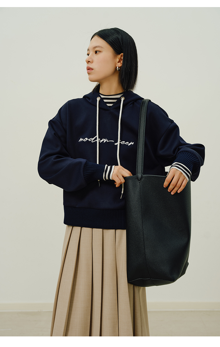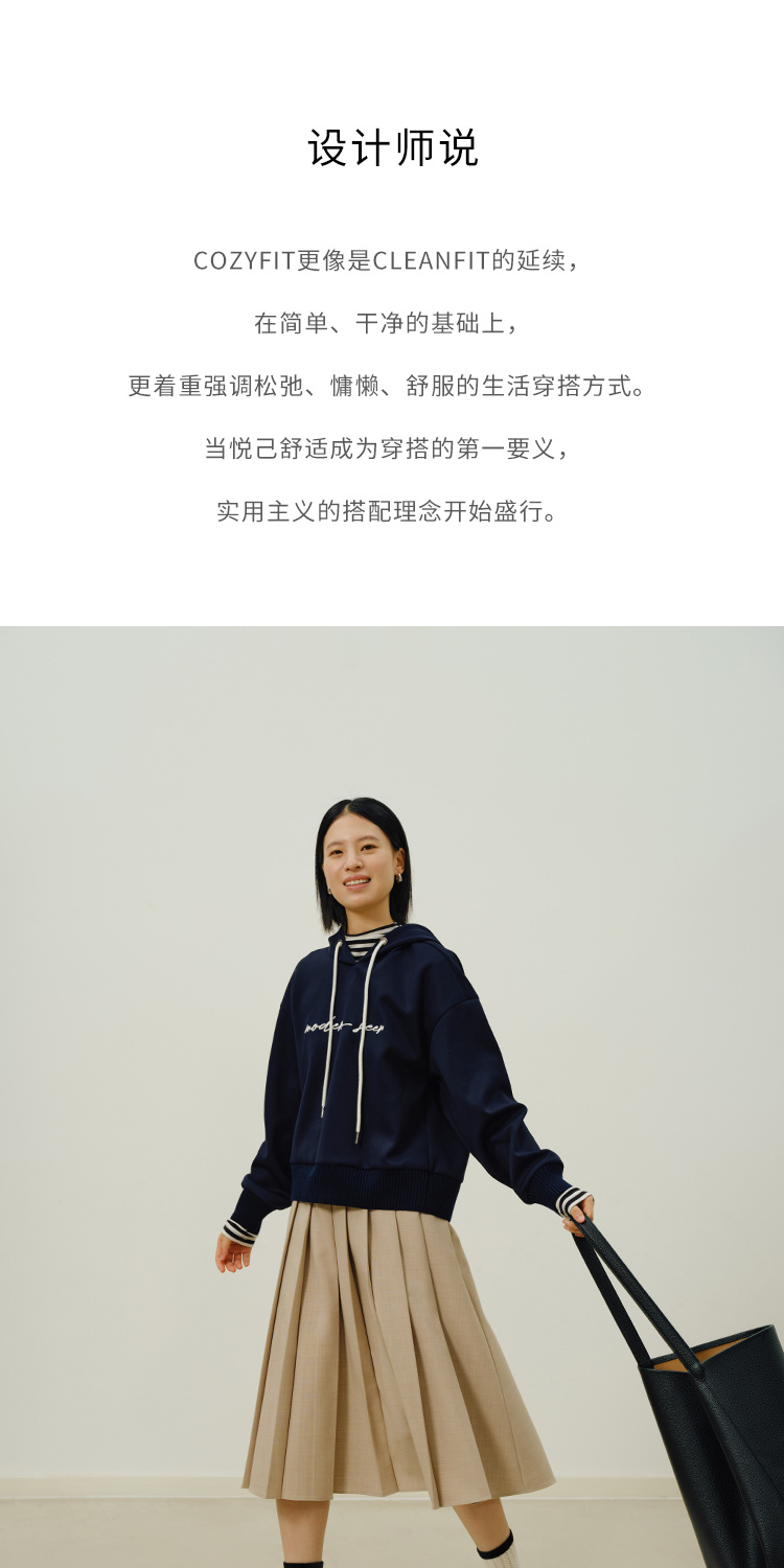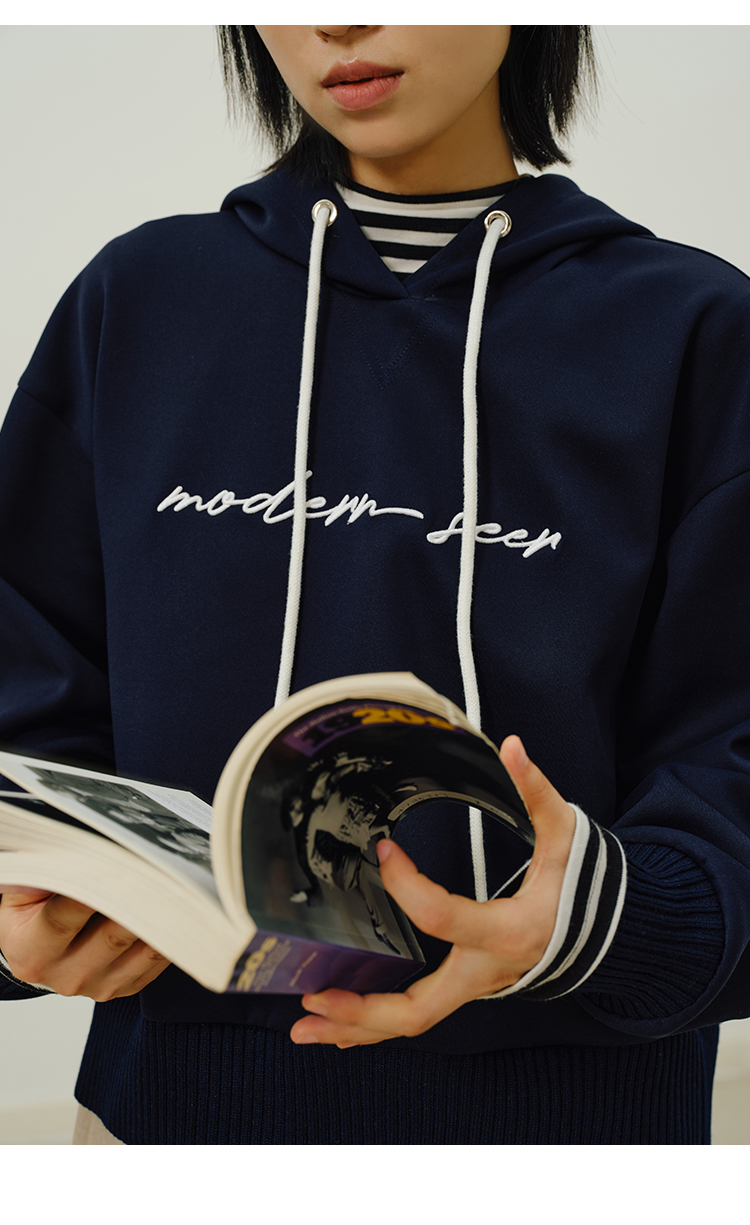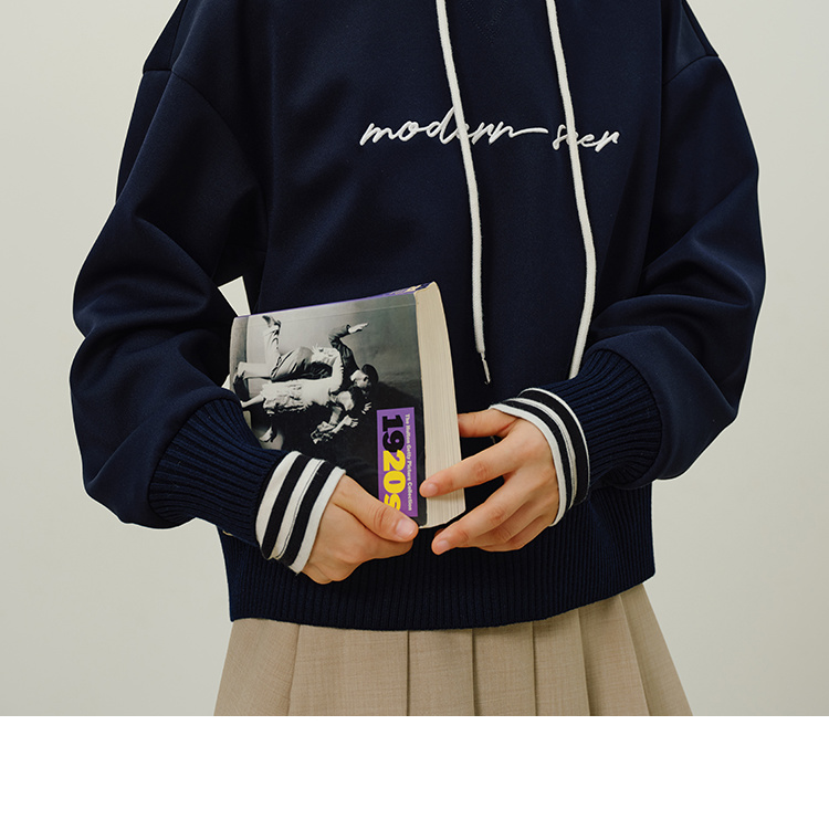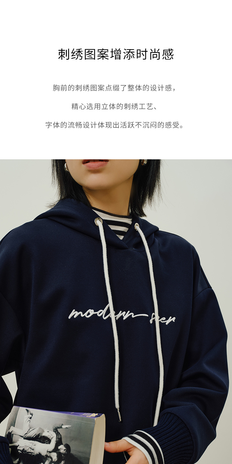 HeyDress刺绣连帽卫衣女秋季复古撞色宽松慵懒休闲松弛感叠搭上衣