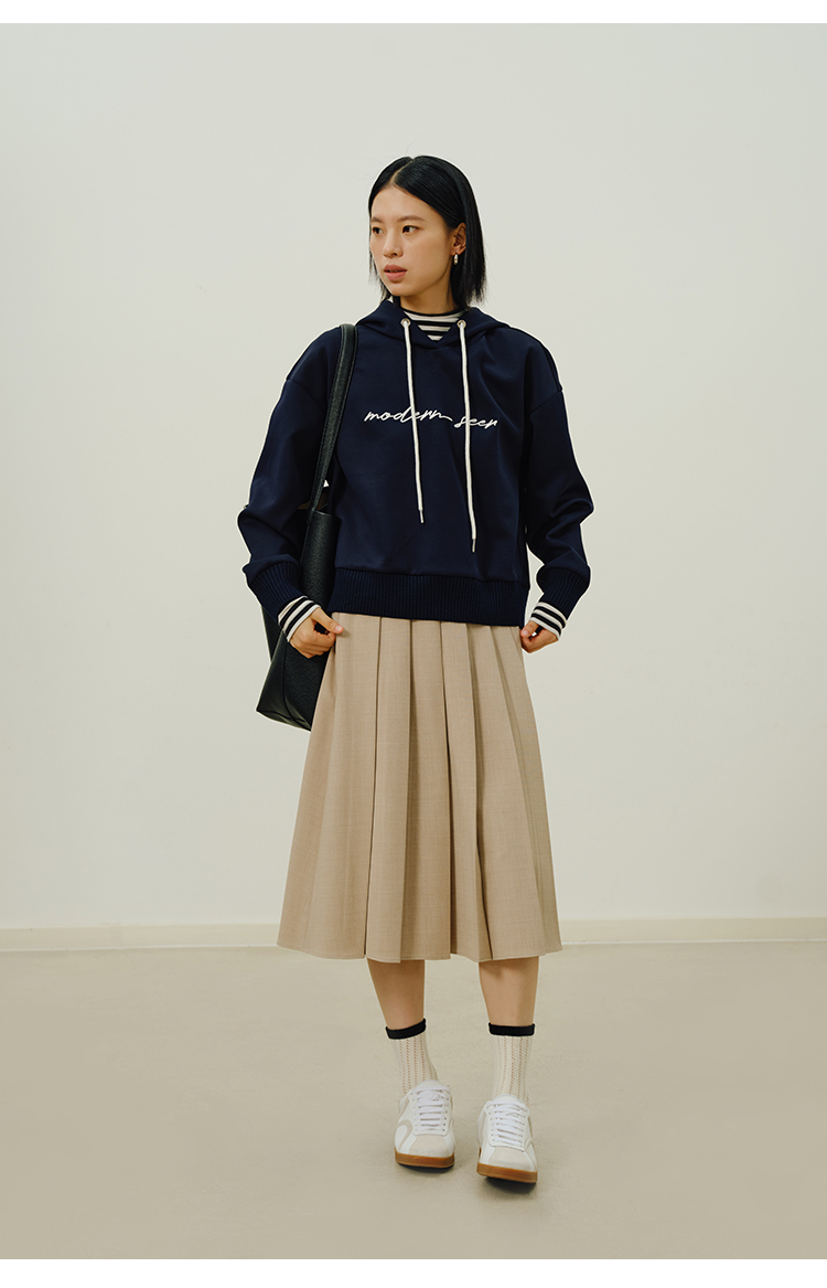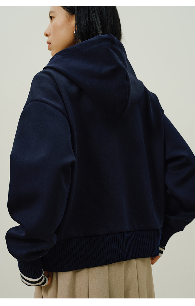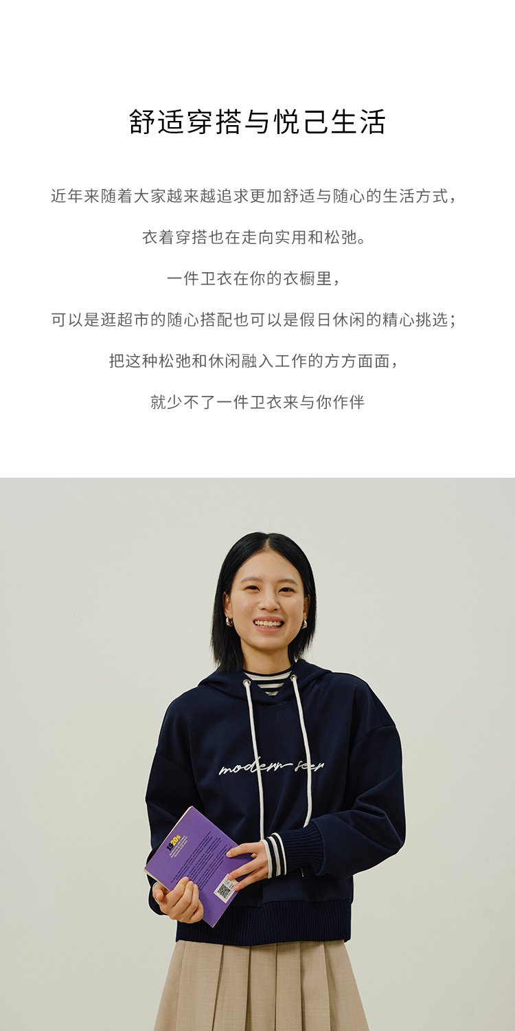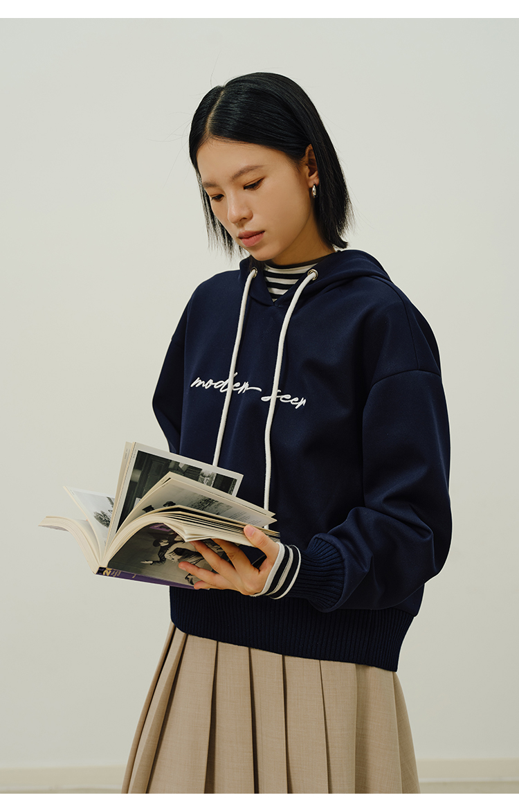 HeyDress刺绣连帽卫衣女秋季复古撞色宽松慵懒休闲松弛感叠搭上衣