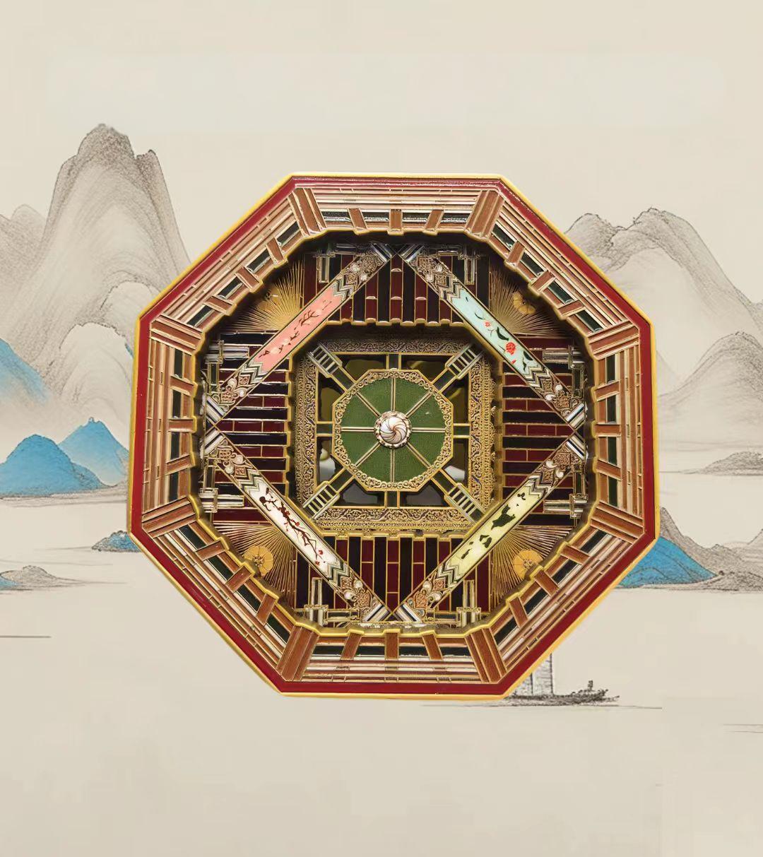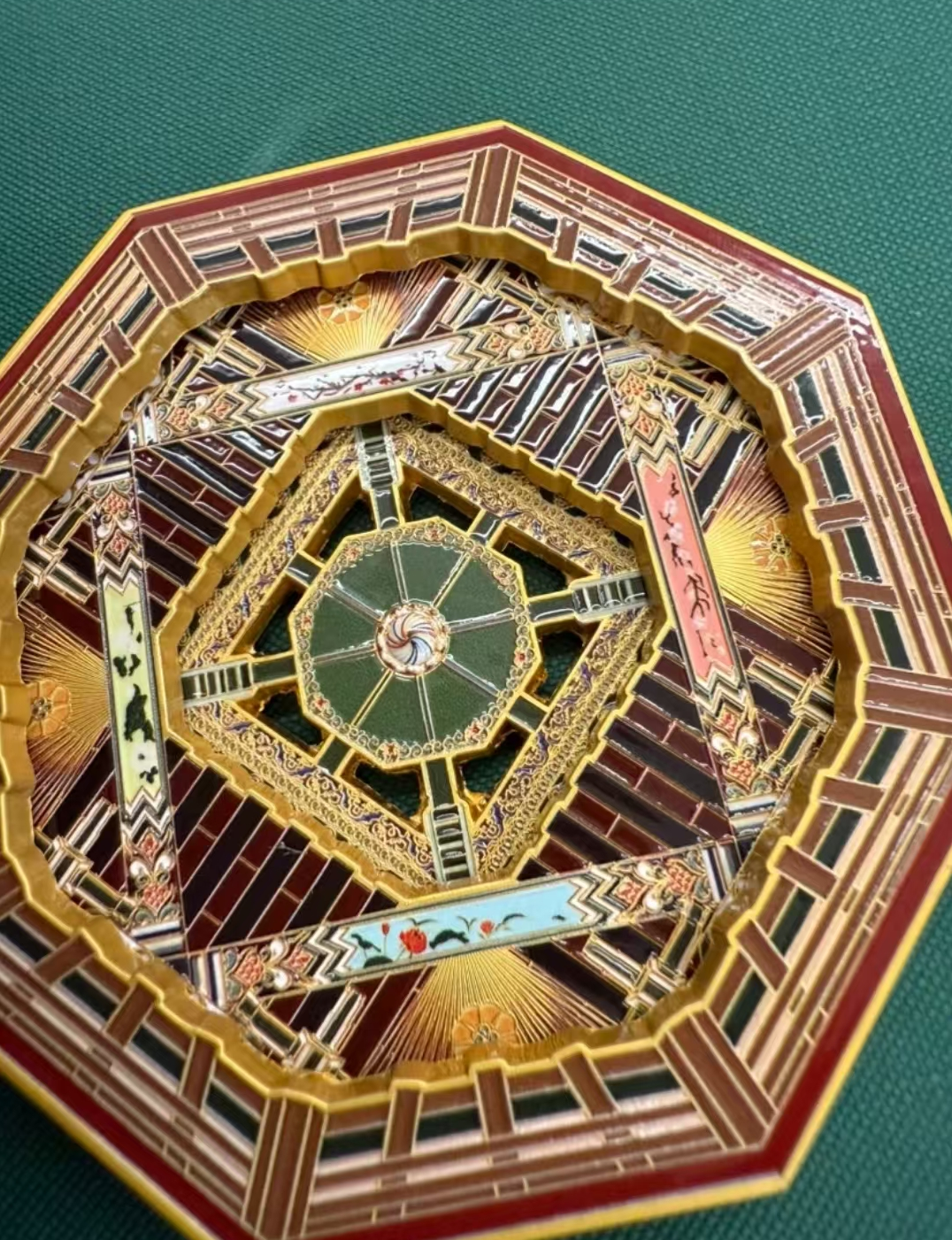乾隆帝南巡时,扬州盐商为迎驾,在扬州瘦西湖小金山兴建风亭。本藻井灵感正是风亭藻井,融合了北方官式建筑的稳重与南方园林的灵秀,体现了清代江南园林“南秀北雄”的精致典雅。