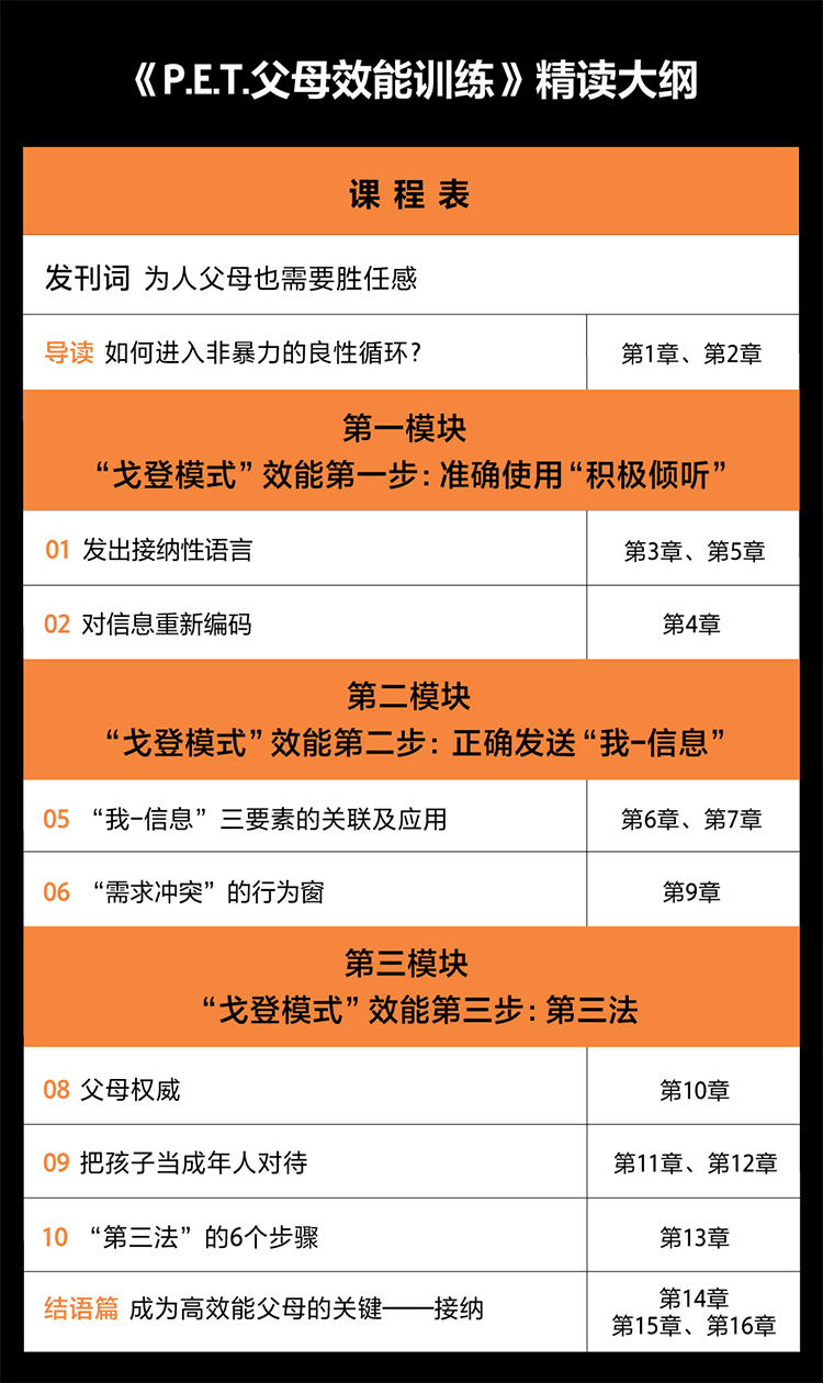 而《P.E.T.父母效能训练手册》所提供的是一套富有同情心,卓有成效的方法,可以让父母即刻产生效果——减少战争,少发脾气、不说谎话、不再使用惩罚。书中的技巧与方法可以拓展到亲密关系、亲人关系、亲友关系和社会关系等一切人际关系中。