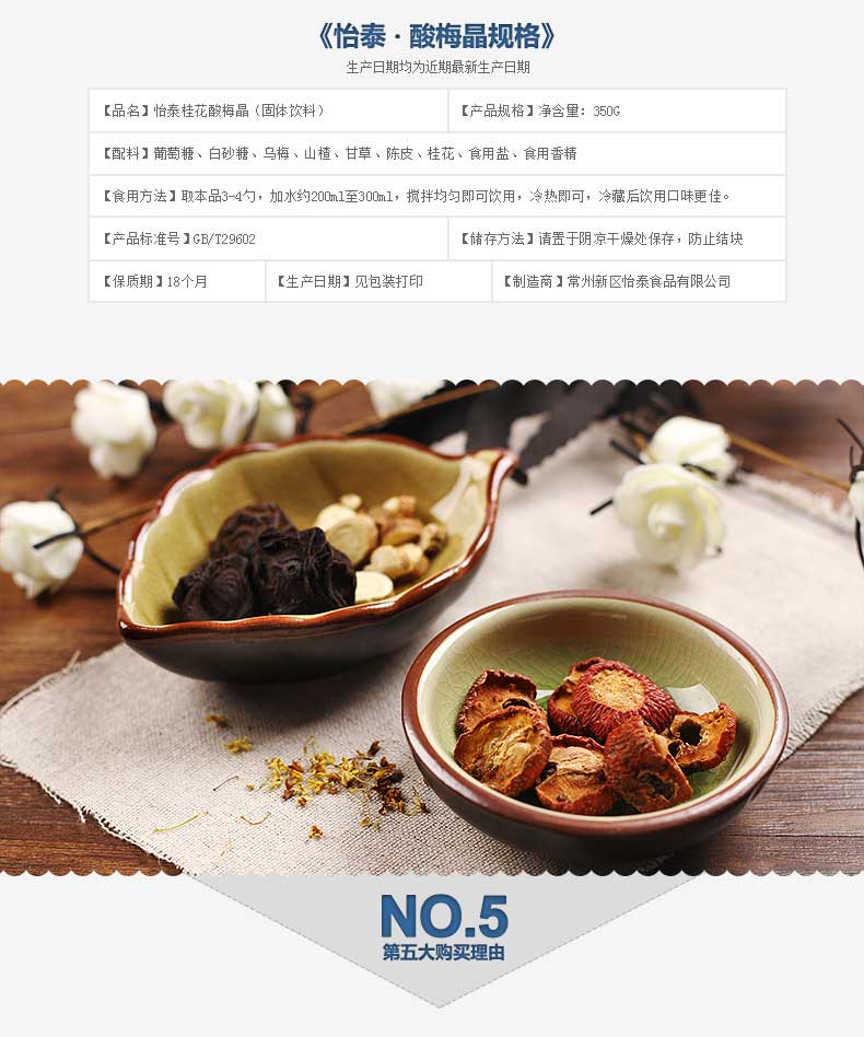 【常州馆】怡泰桂花酸梅粉老北京桂花酸梅汤原料包酸梅晶酸梅汁冲饮饮料包火锅
