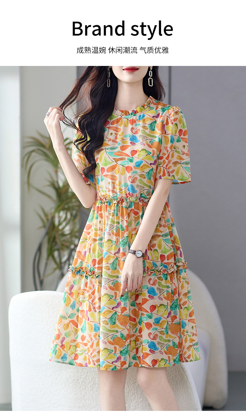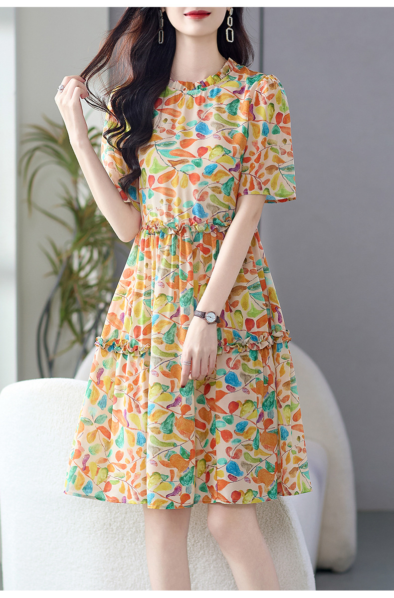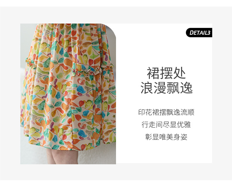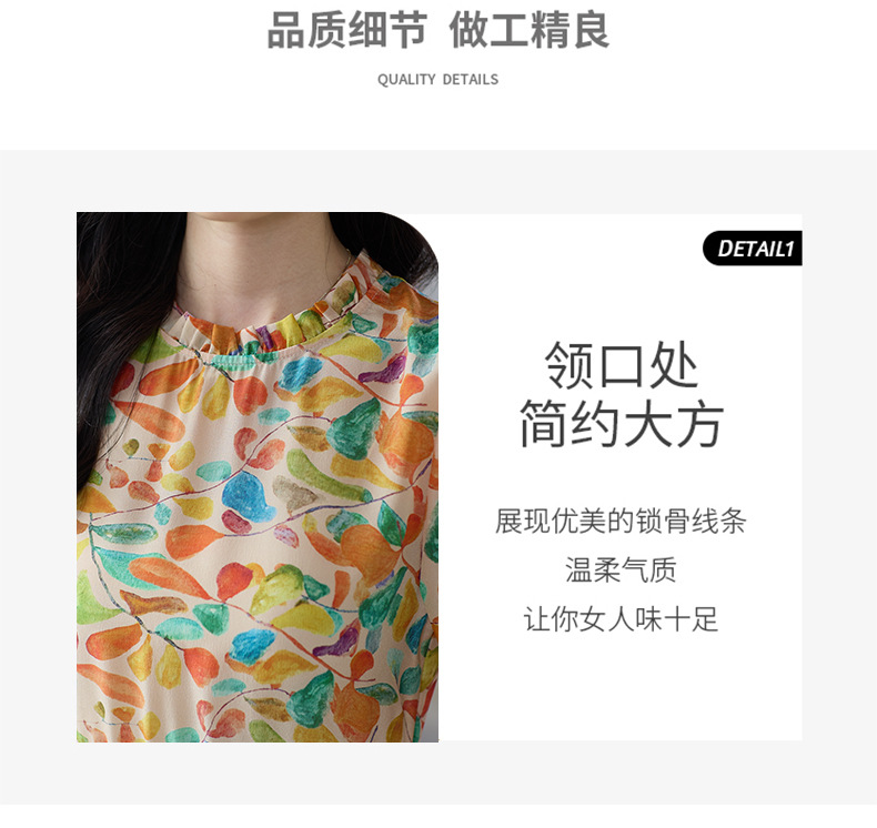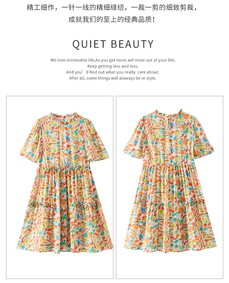 WWM-真丝裙子高级感69510 小个子木耳边裙子女夏桑蚕丝碎花印花连衣裙