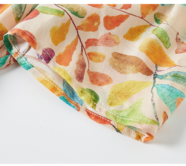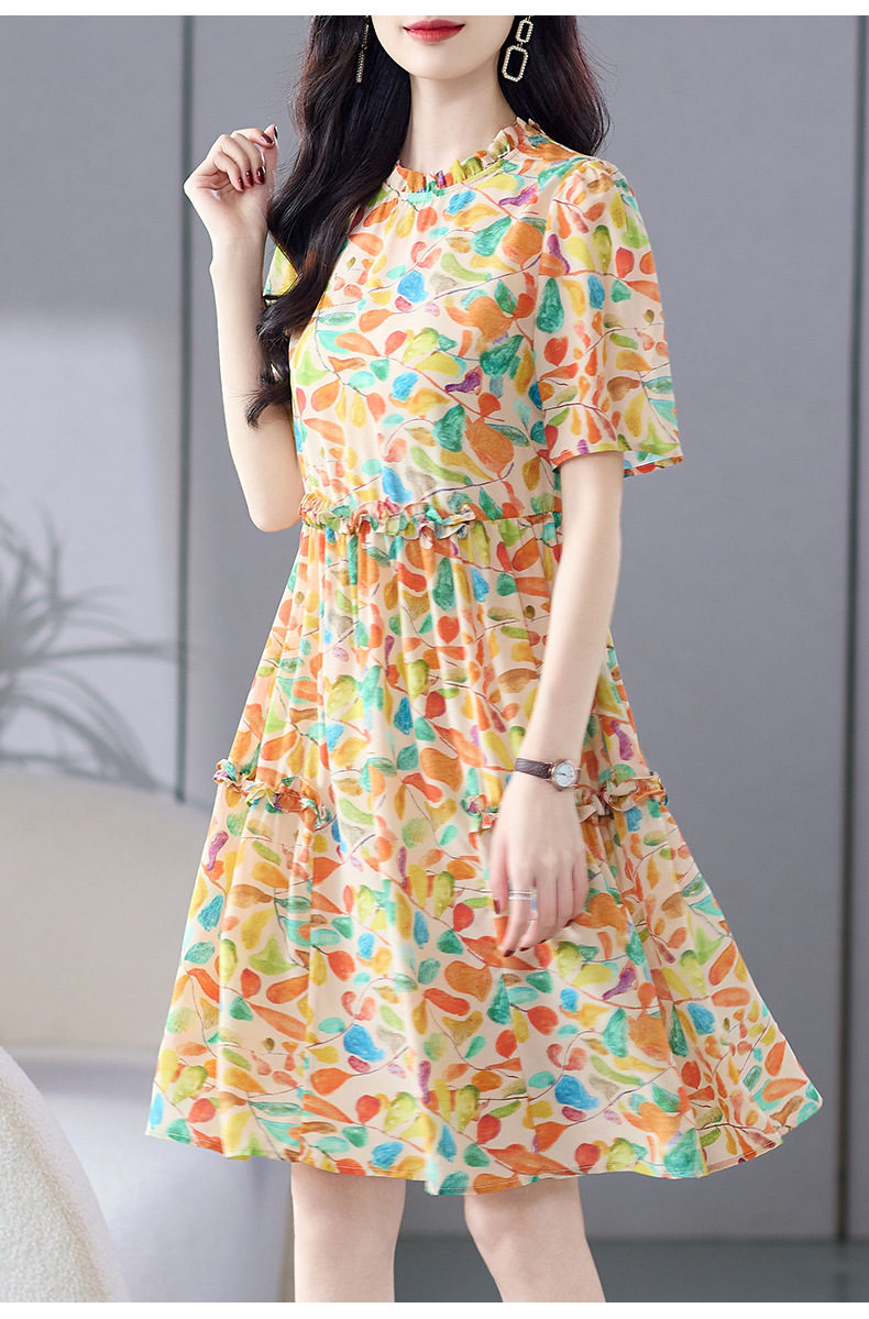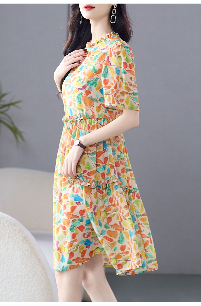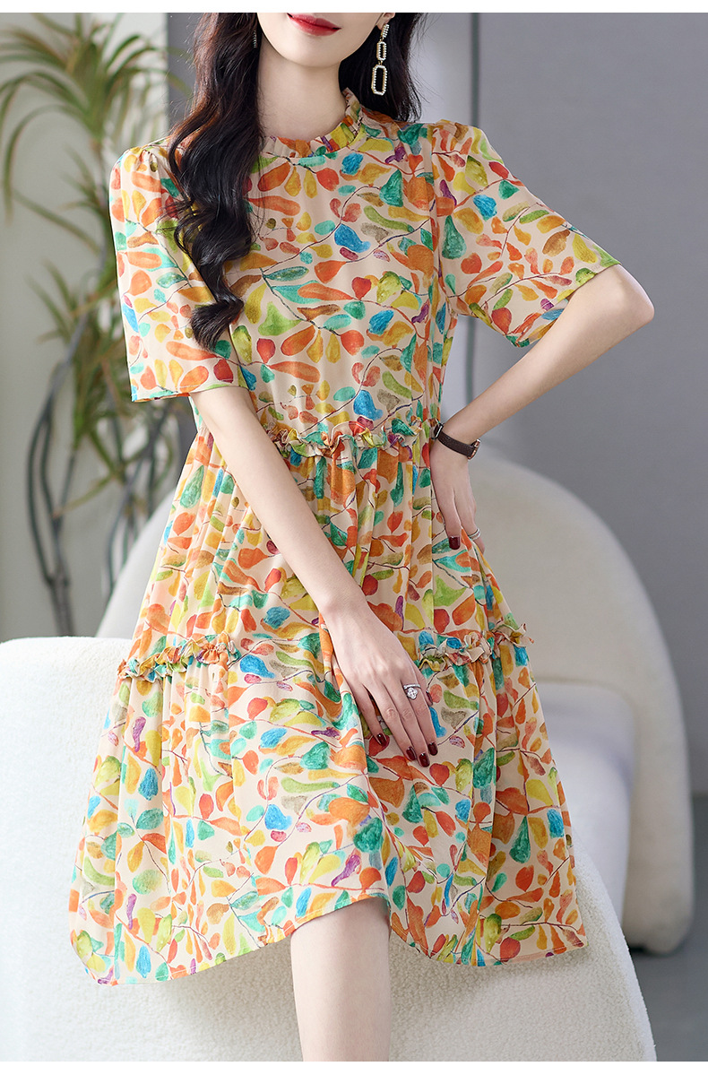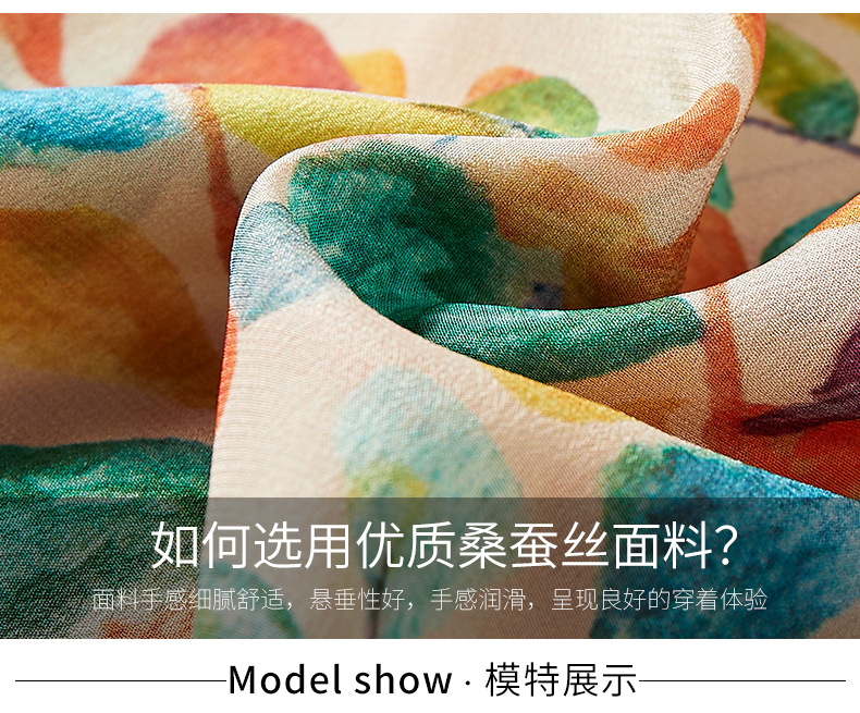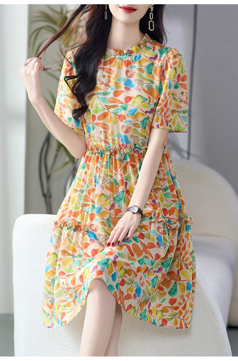 WWM-真丝裙子高级感69510 小个子木耳边裙子女夏桑蚕丝碎花印花连衣裙