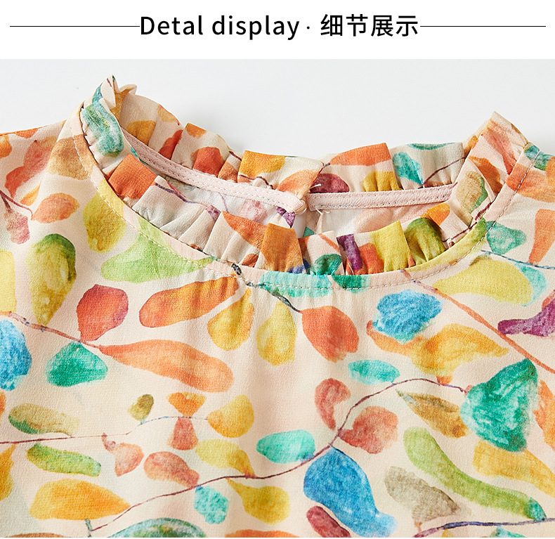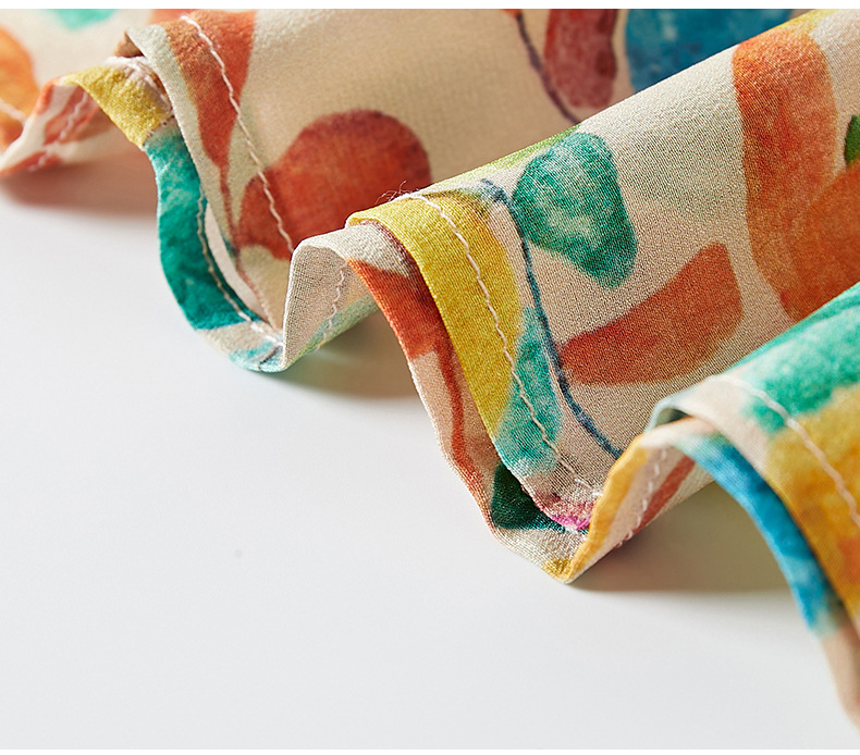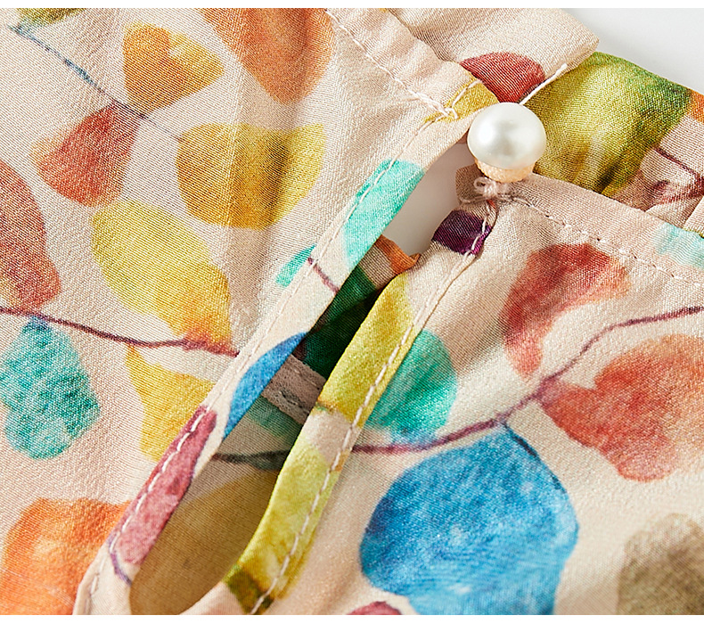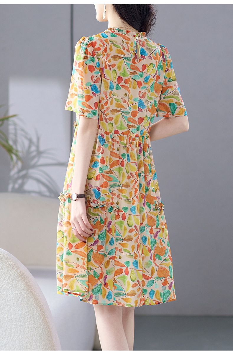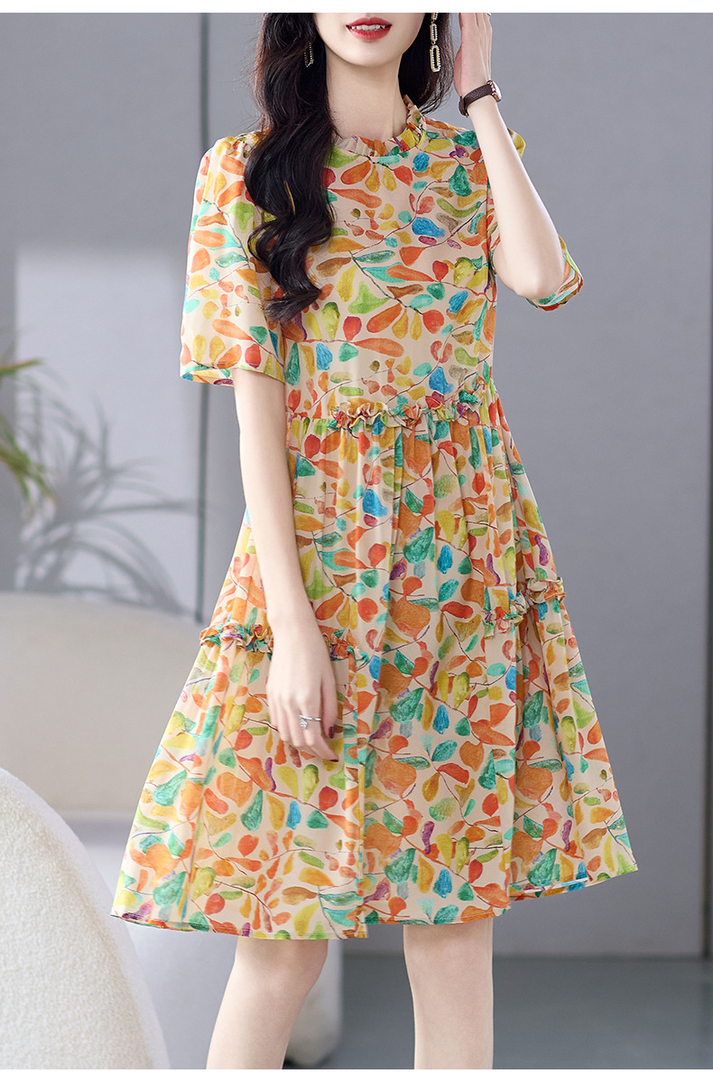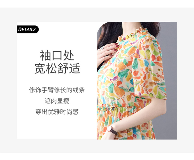 WWM-真丝裙子高级感69510 小个子木耳边裙子女夏桑蚕丝碎花印花连衣裙