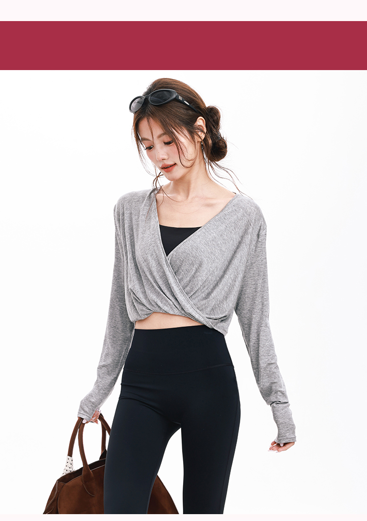 跃牌【禅语梵心】新品纽结天丝显瘦上衣女健身服跑步瑜伽长袖训练运动T恤罩衫CX8091