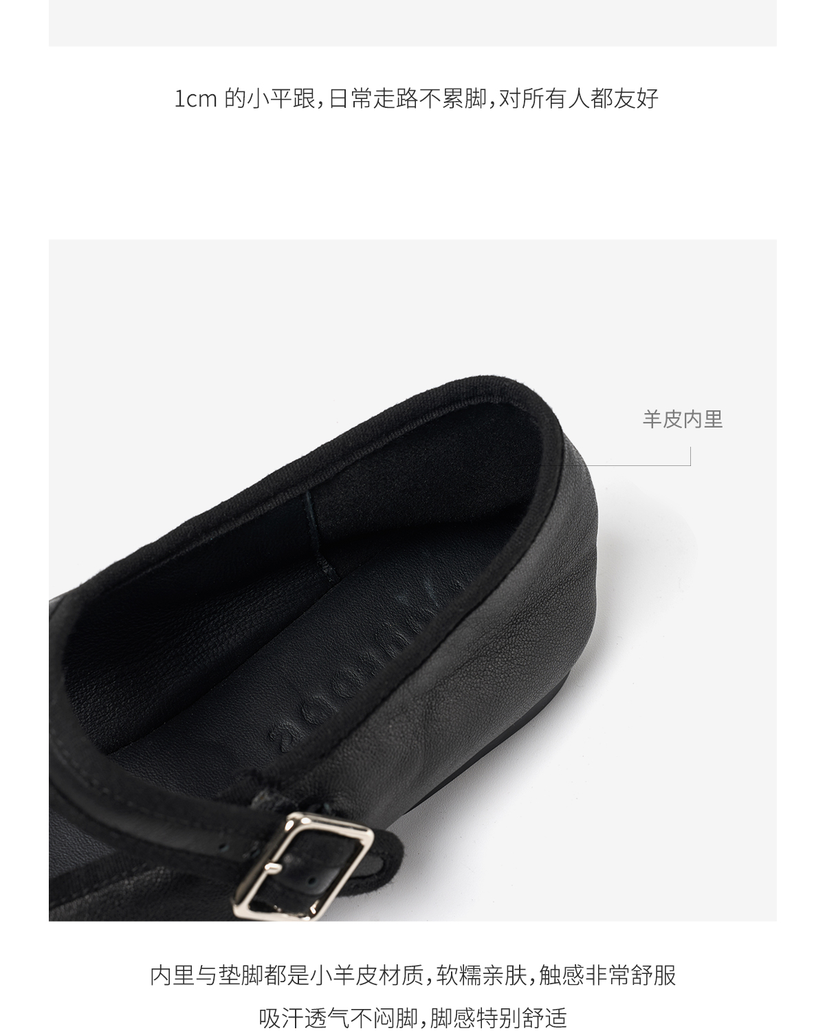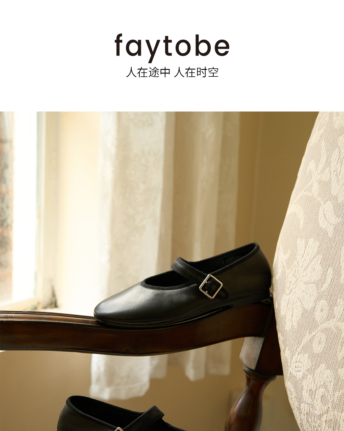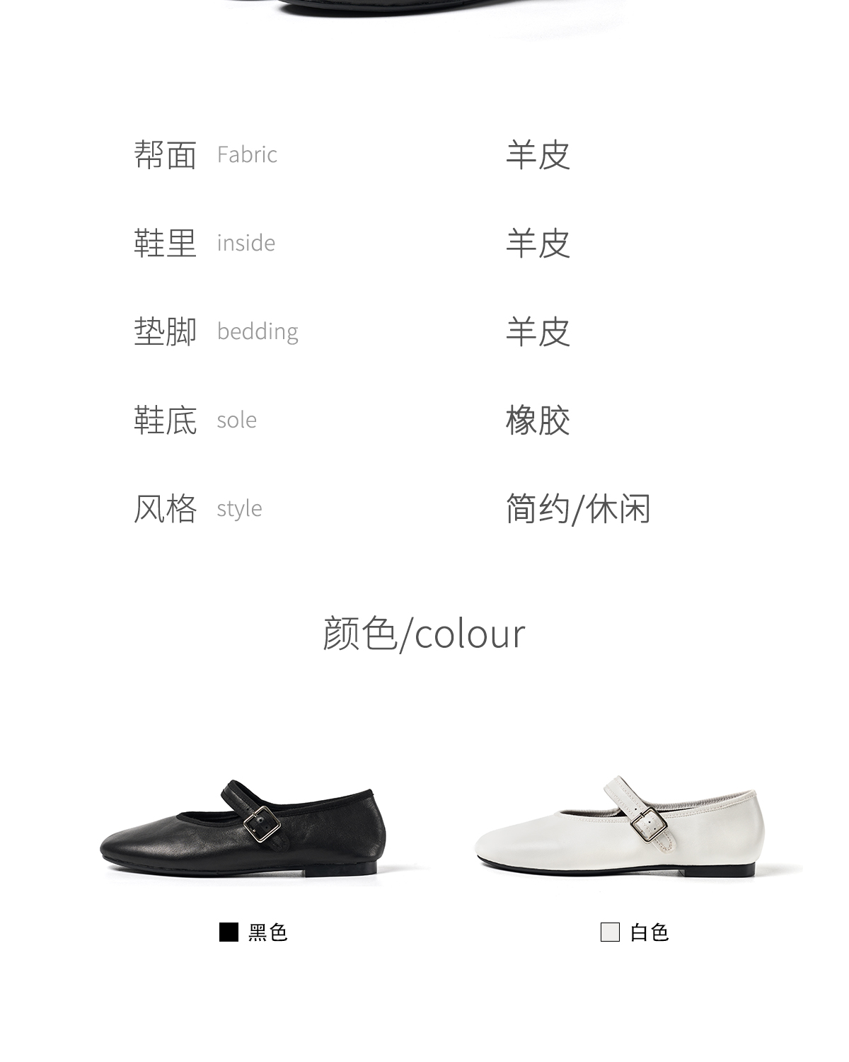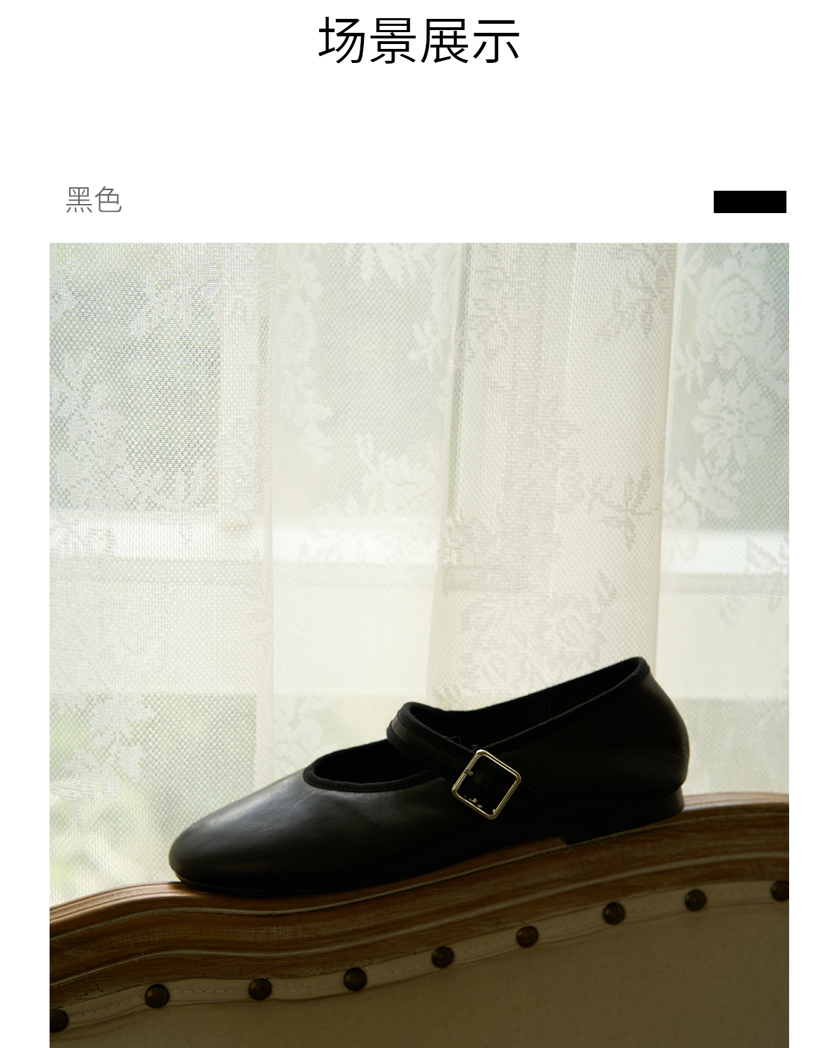 faytobe 素色芭蕾玛丽珍柔软舒适扣带单鞋羊皮平底奶奶鞋