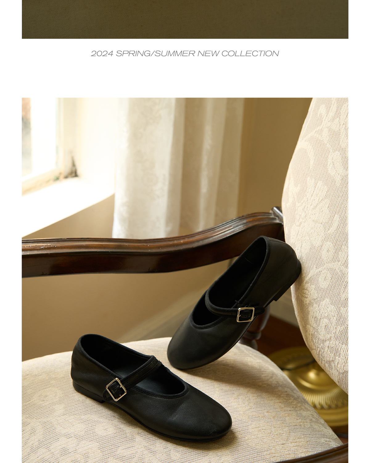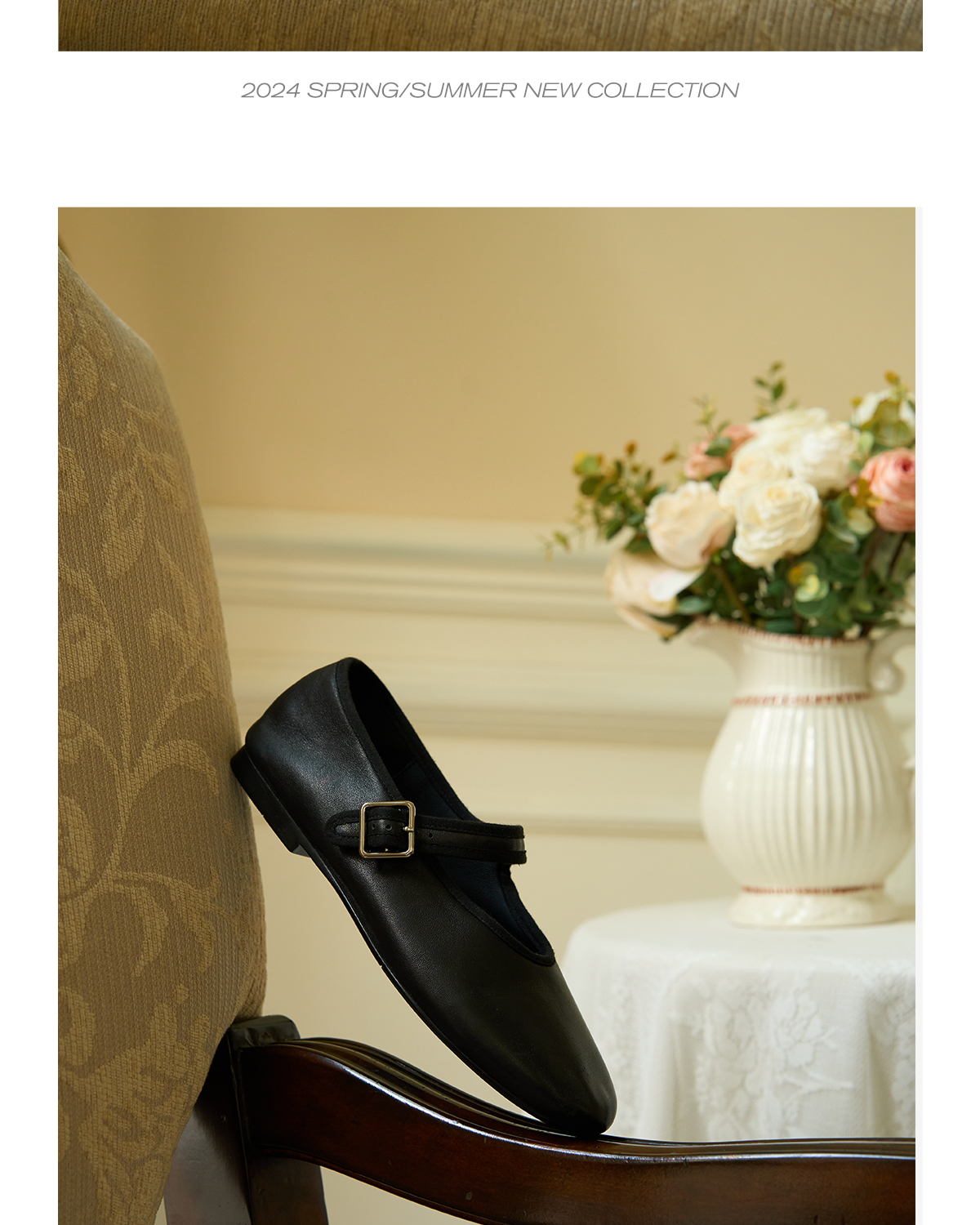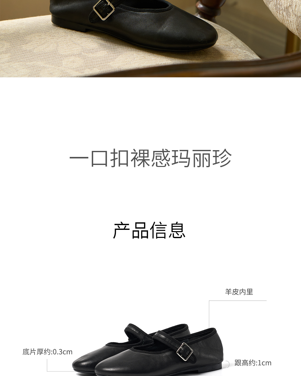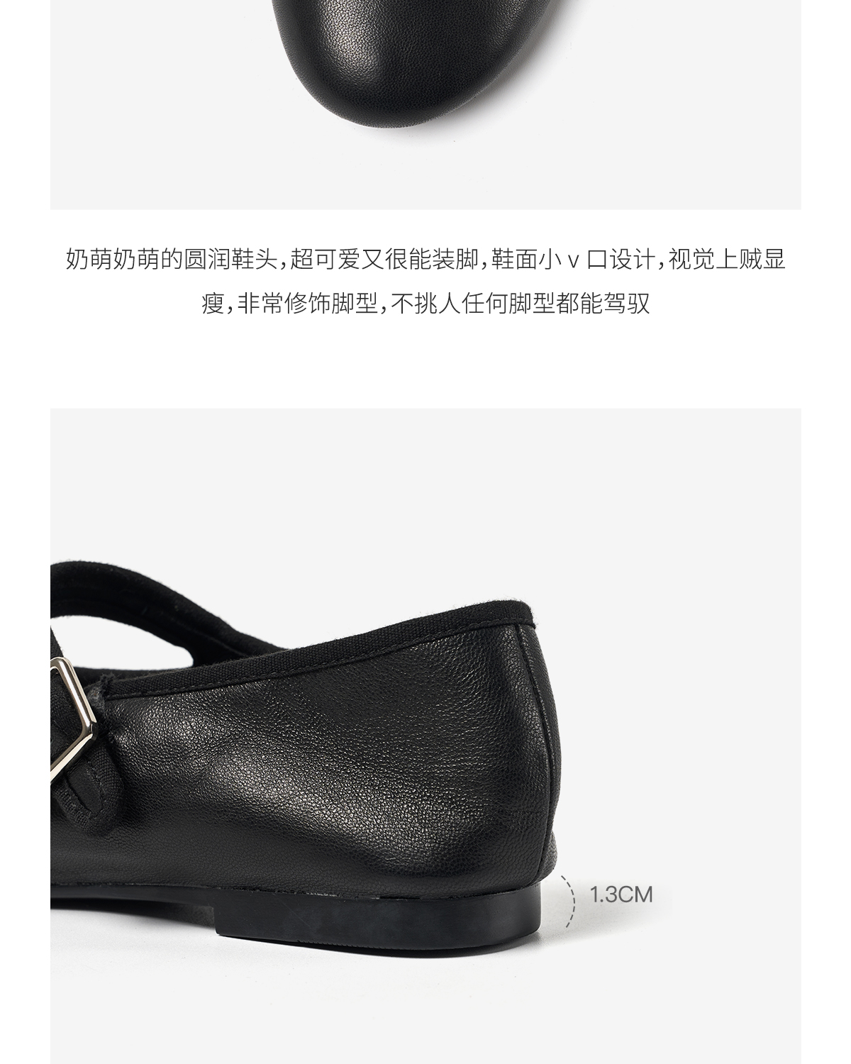 faytobe 素色芭蕾玛丽珍柔软舒适扣带单鞋羊皮平底奶奶鞋