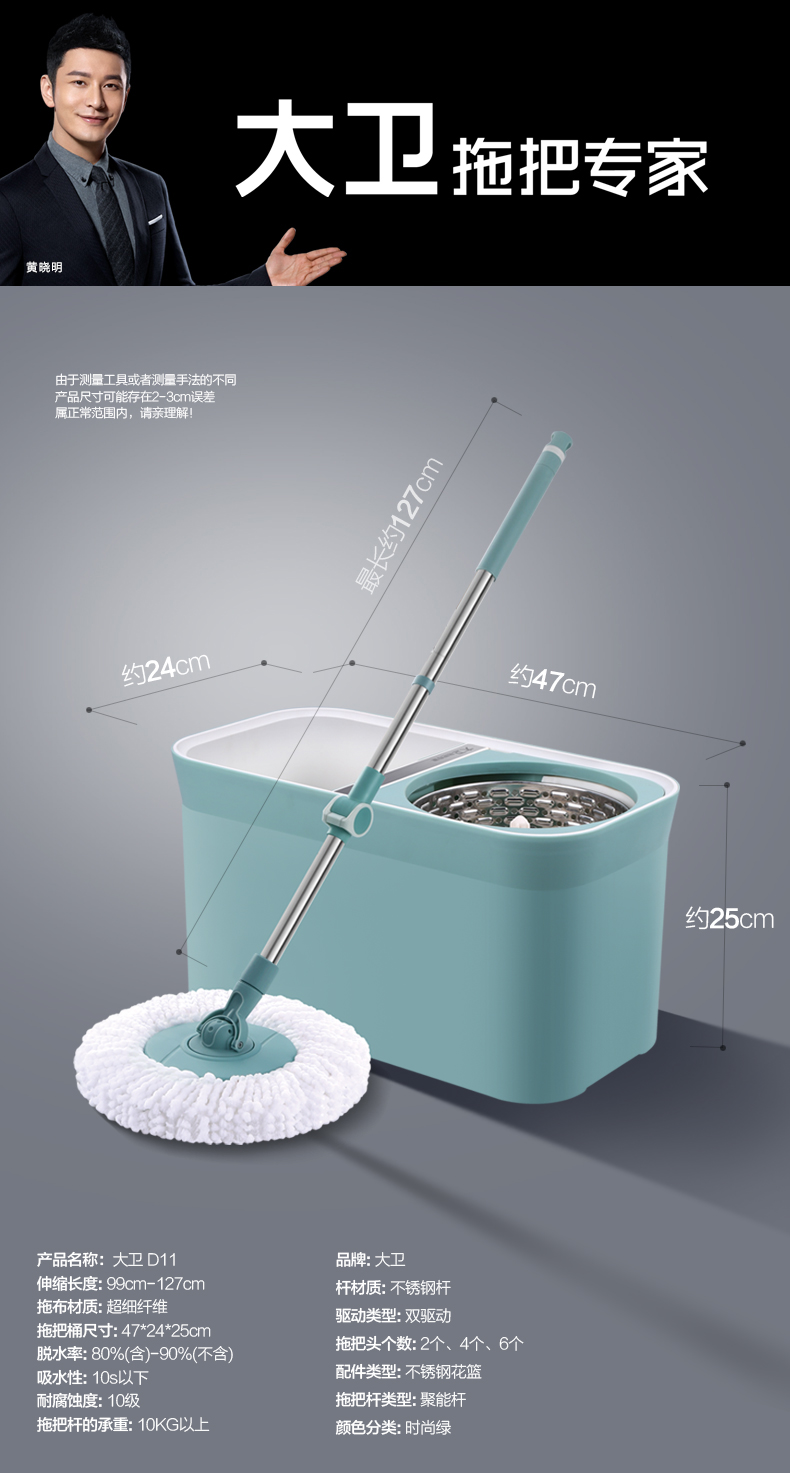 【大卫 拖把专家】D11 拖把桶旋转拖布家用免手洗拖把拖地自动懒人干湿两用墩布