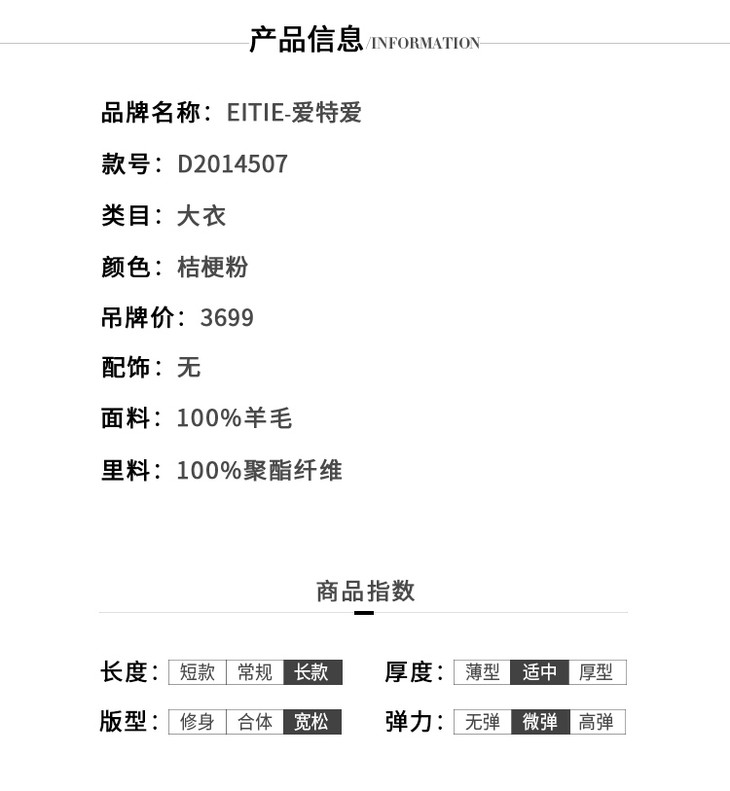 EITIE爱特爱女装秋款时尚气质翻领通勤显瘦直筒羊毛呢大衣女外套D2014507