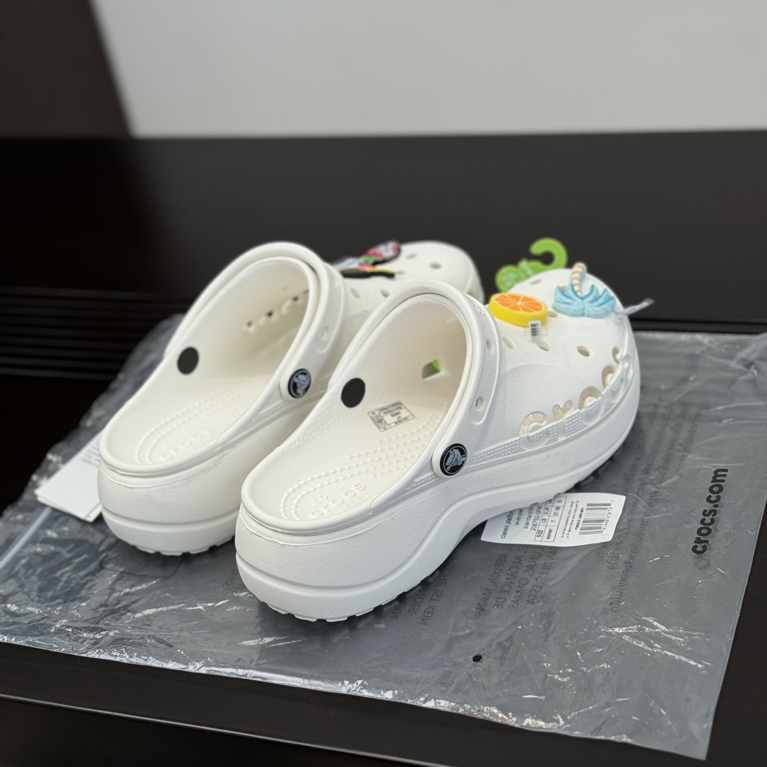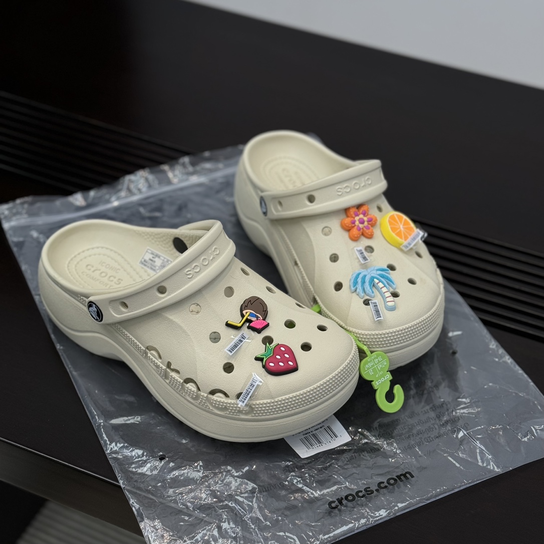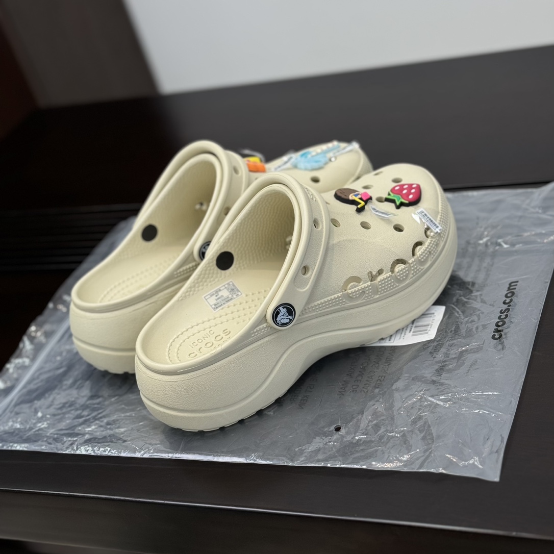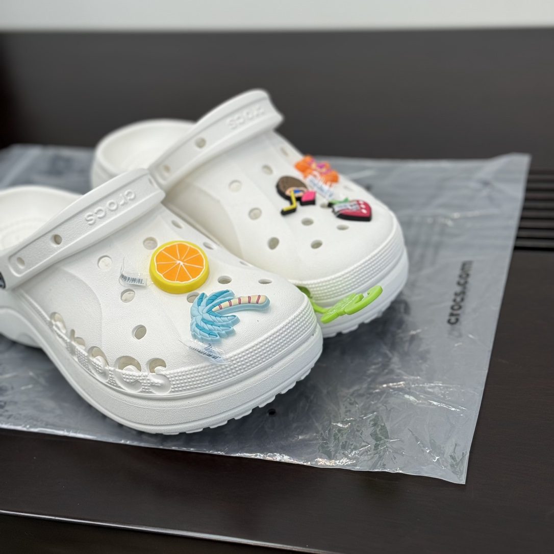C*rocs卡&驰 贝雅云彩厚底洞洞鞋Crocs /卡洛驰云彩系列厚底洞洞鞋 原厂老渠道出 争取到了一部分的订单,喜欢的不要犹豫,超火夏日必备的鞋款……‼️‼️流线型厚底设计超好看,减少沉闷感又很时尚,是候时出新装备 大长腿们的秘密器武是什么?4.5cm的厚底设计让脚步线条和你纤细,不仅如此,可调节的后跟带可以随心点缀自己喜欢的智必星,表达个性,与杨幂一起锁解自在舒新适姿势 ~尺码:W5—W9 ⚠️相当于35—39 正码!