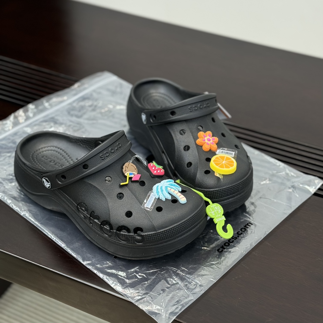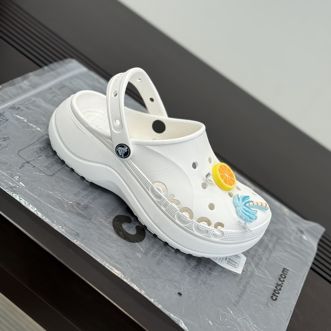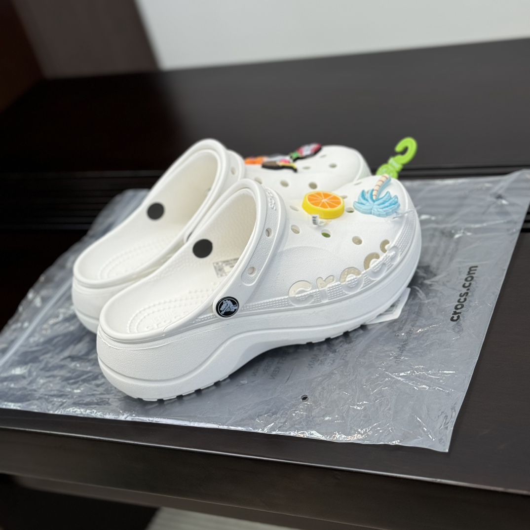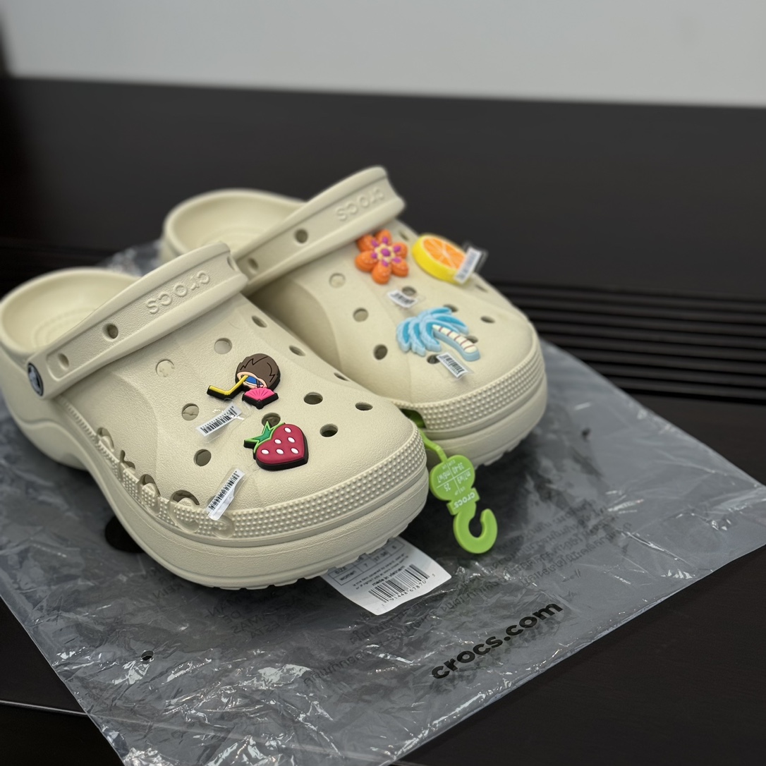 C*rocs卡&驰 贝雅云彩厚底洞洞鞋Crocs /卡洛驰云彩系列厚底洞洞鞋 原厂老渠道出 争取到了一部分的订单,喜欢的不要犹豫,超火夏日必备的鞋款……‼️‼️流线型厚底设计超好看,减少沉闷感又很时尚,是候时出新装备 大长腿们的秘密器武是什么?4.5cm的厚底设计让脚步线条和你纤细,不仅如此,可调节的后跟带可以随心点缀自己喜欢的智必星,表达个性,与杨幂一起锁解自在舒新适姿势 ~尺码:W5—W9 ⚠️相当于35—39 正码!