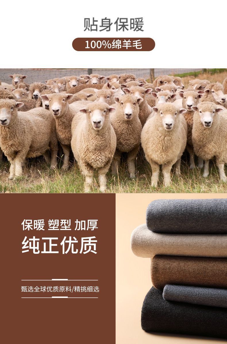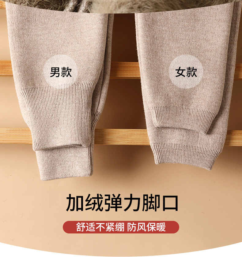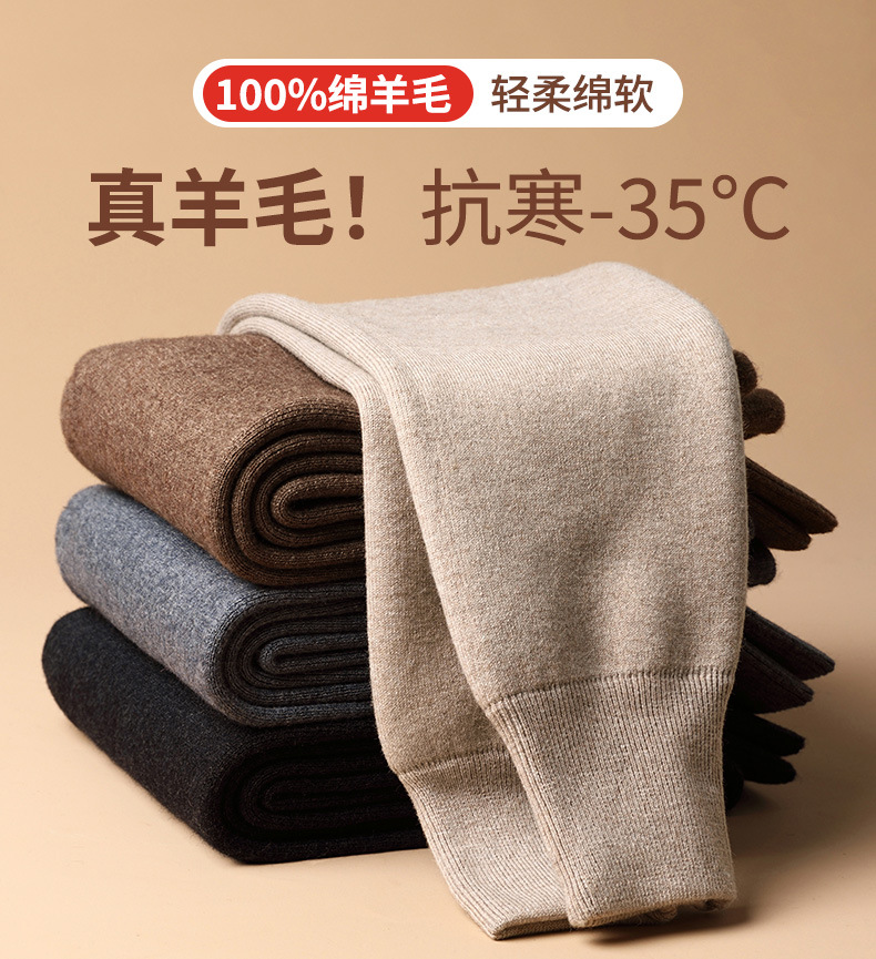丁摩 100%纯羊毛发热羊毛裤男女款内搭保暖冬季打底裤加绒加厚保暖裤5ZF-20288