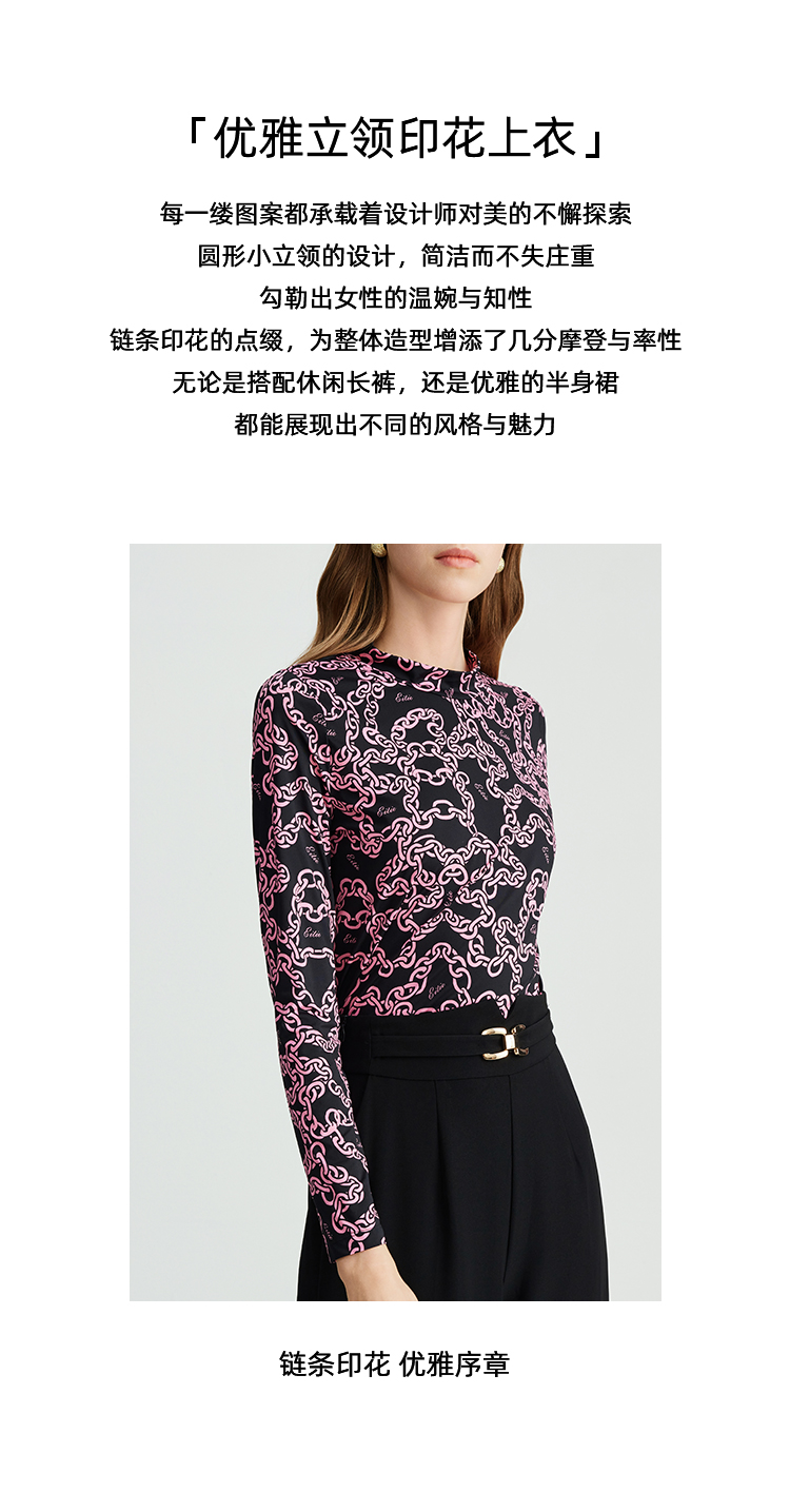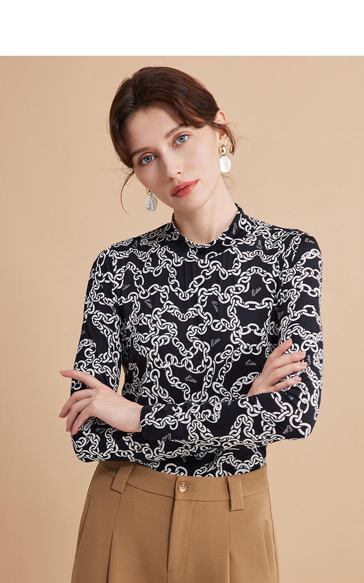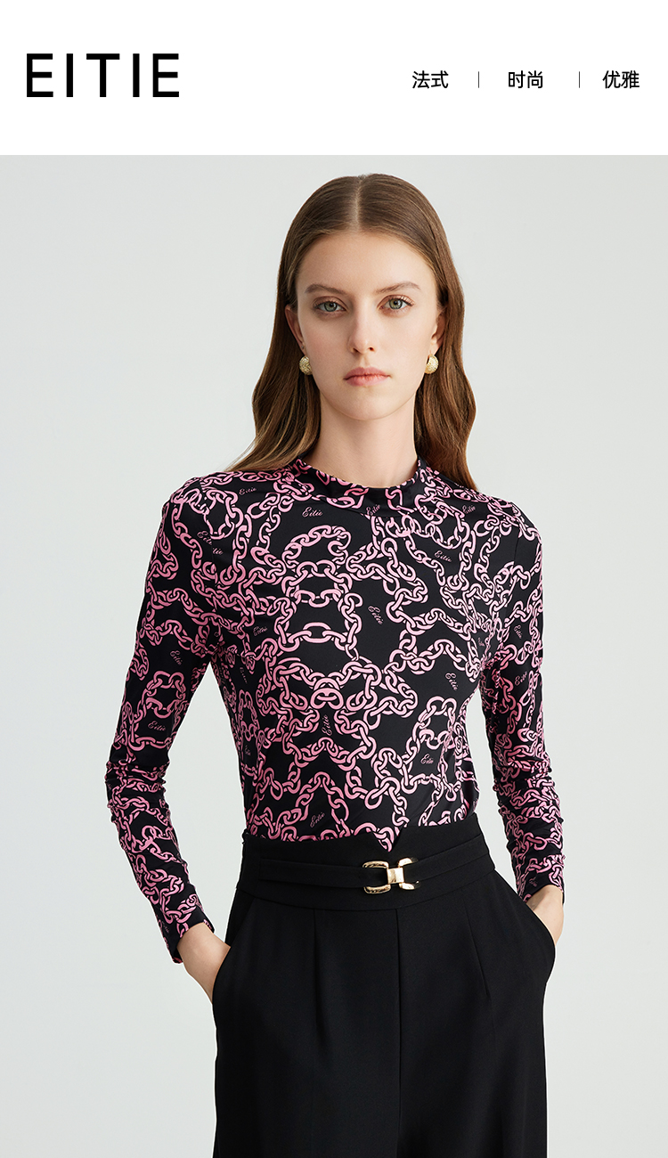 EITIE爱特爱秋季新款修身显瘦百搭印花小上衣7513215