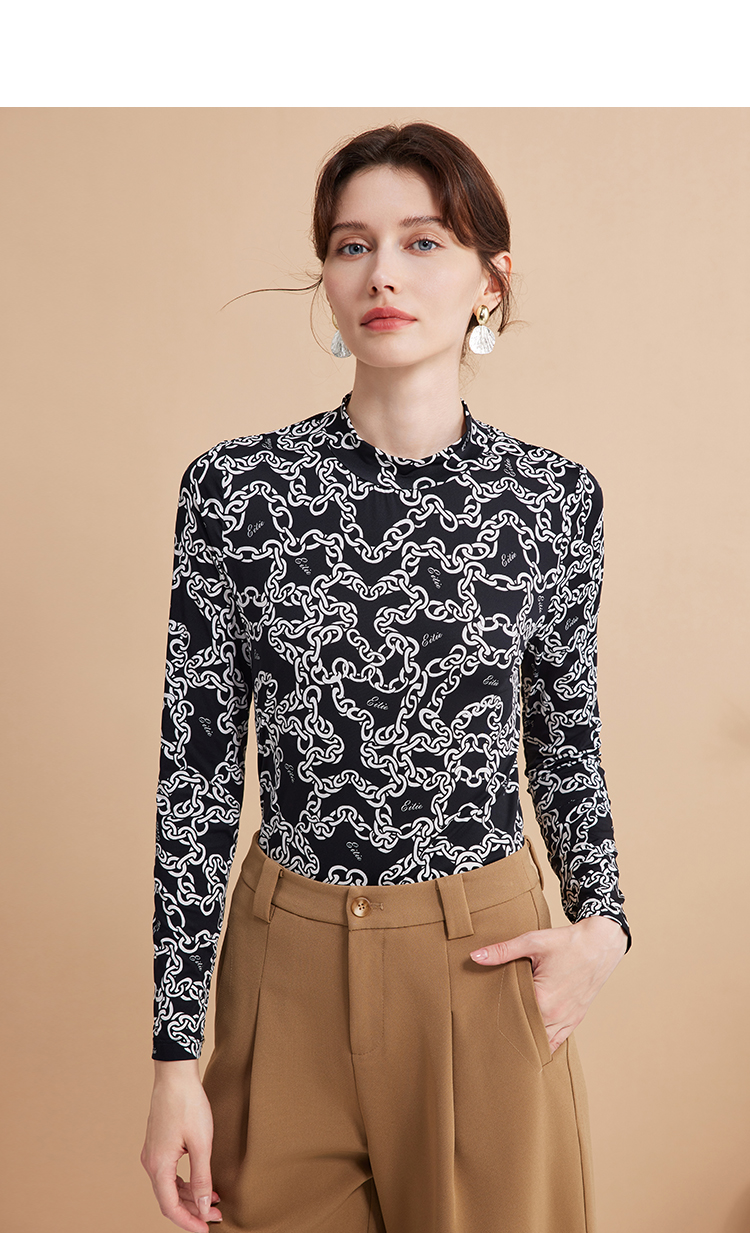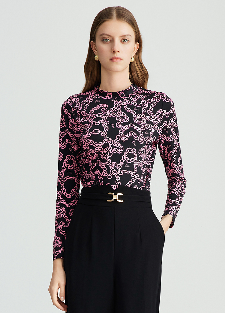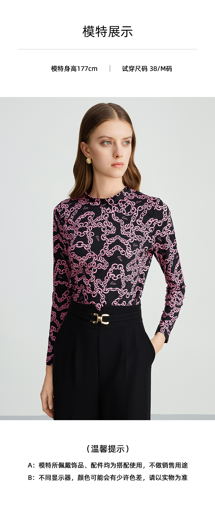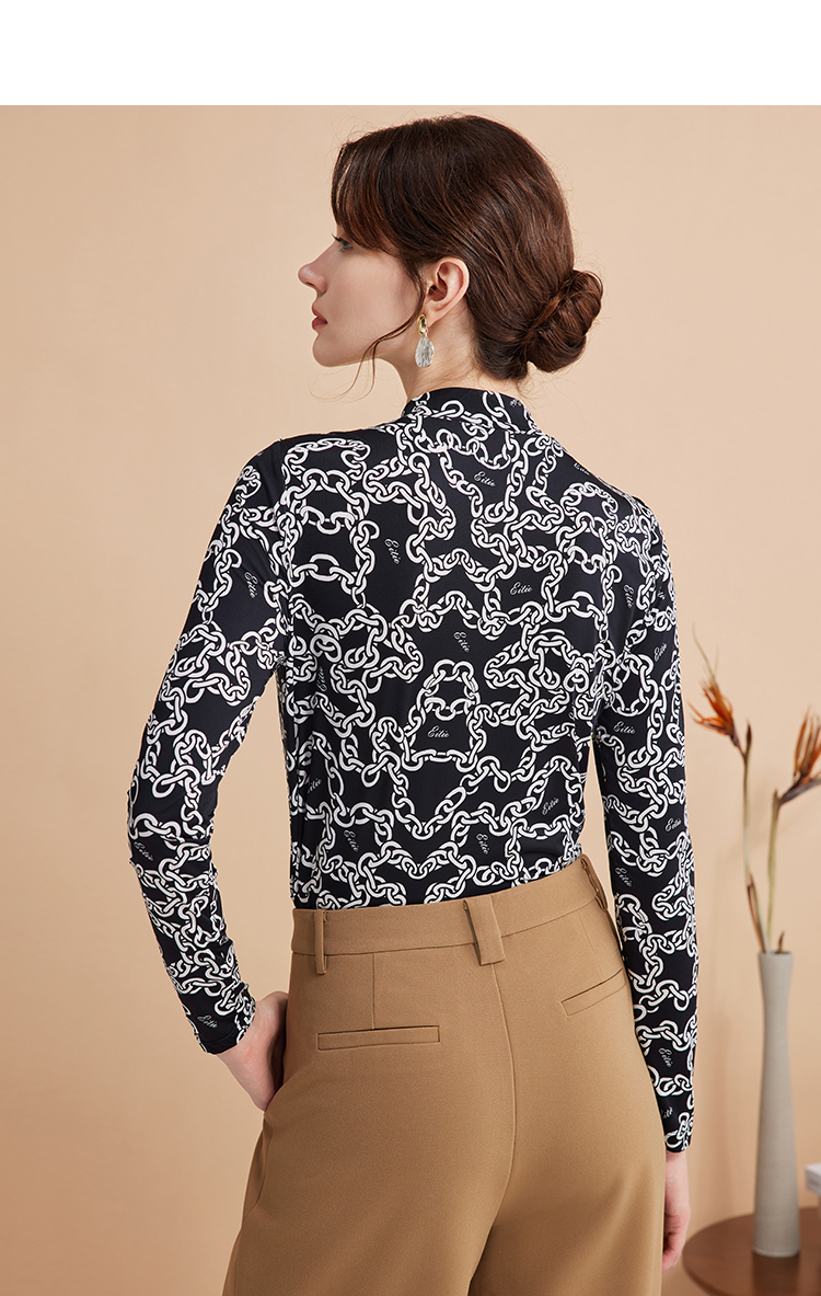 EITIE爱特爱秋季新款修身显瘦百搭印花小上衣7513215