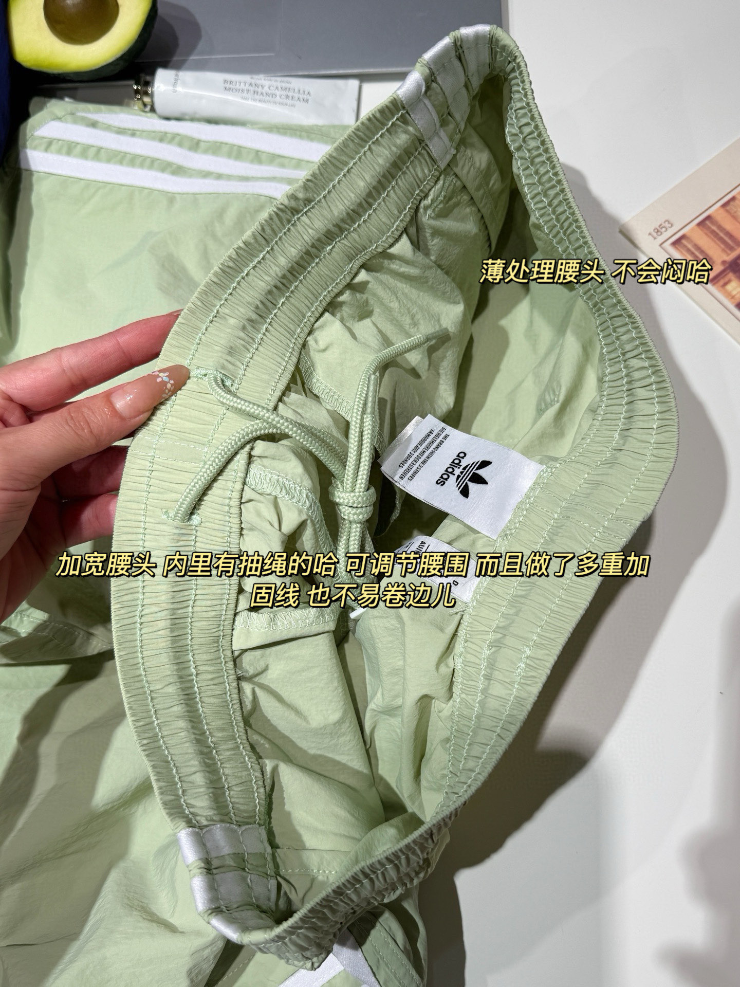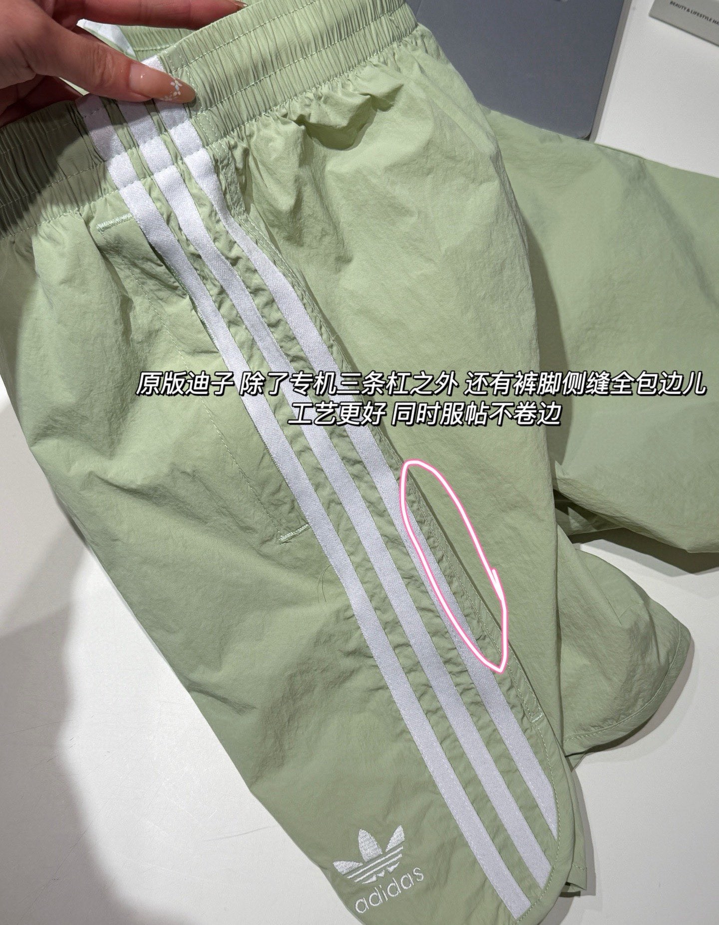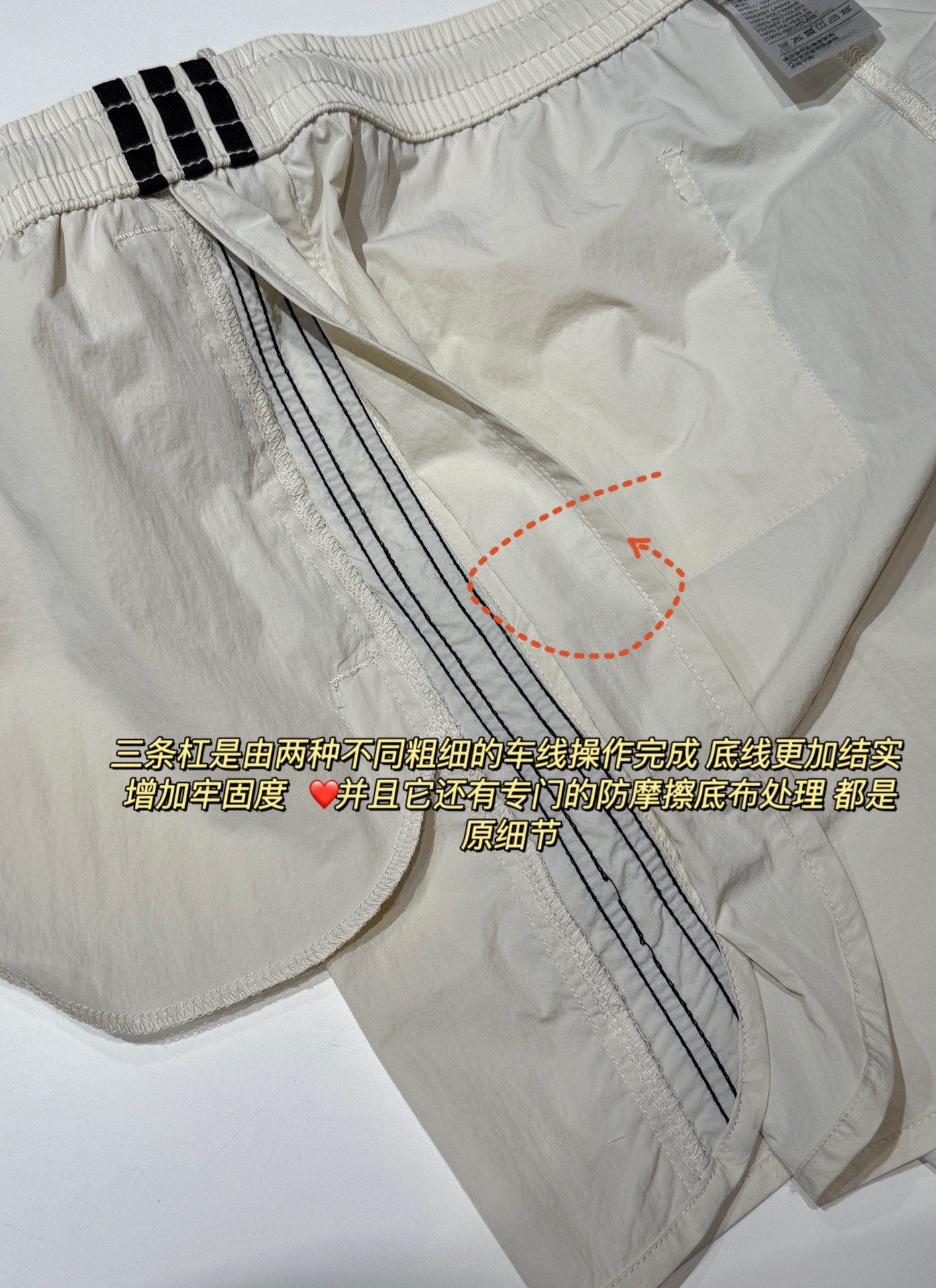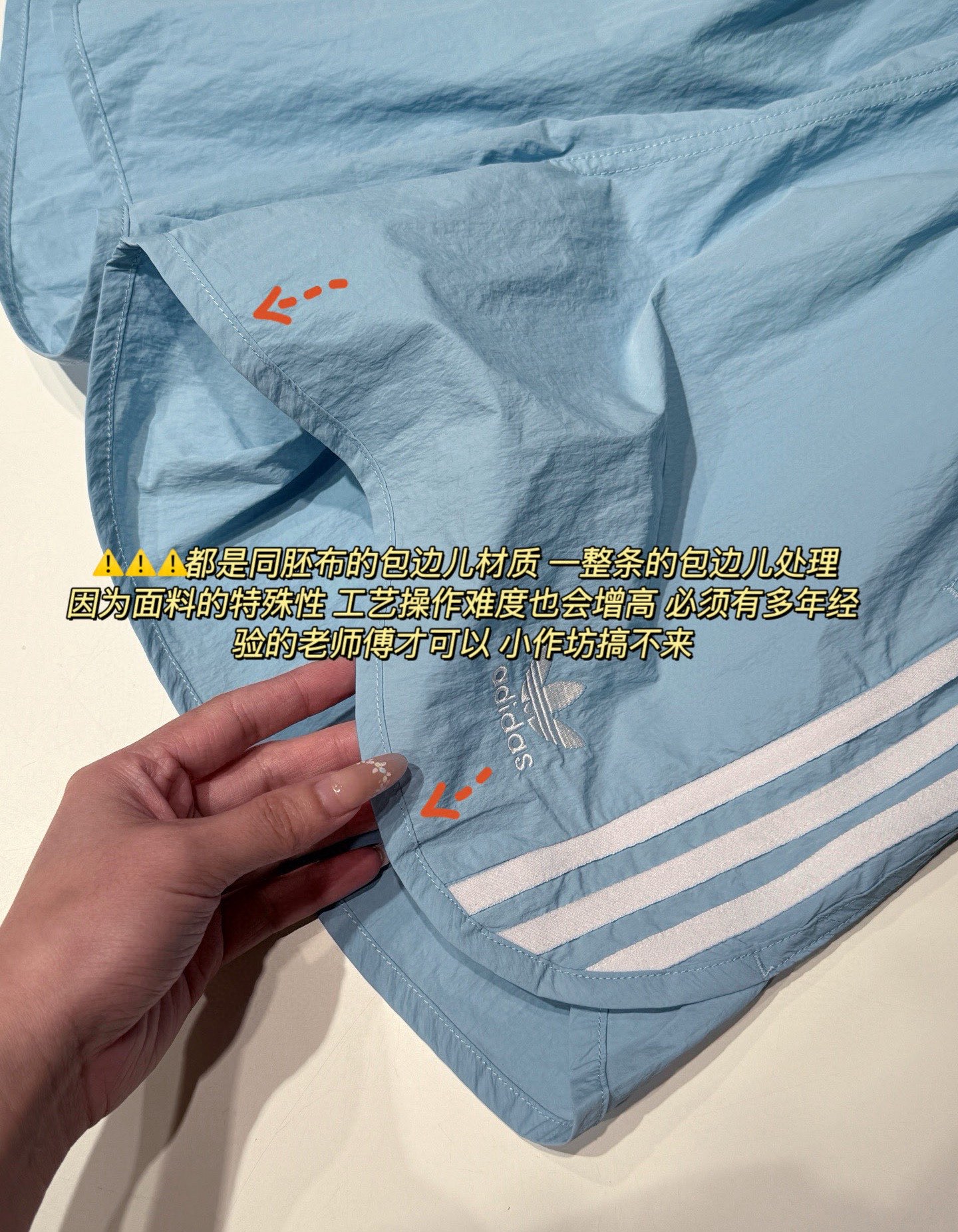 精工全包边儿➕防摩擦底片 经典三条杠的工艺应该不用多啰嗦吧 必需指定专机 而且是底线加面线双重压制 原版工艺!!❗️裤管做了全包边儿 整条包边儿处理 这种轻薄的梭织质地会更加考验工艺 这样的梭织迪子平整服帖不卷边 还有原版才会有的内里防摩擦底片 这都需要提前预留 防止车线摩擦腿部 很贴心❤️❤️不同于基础短裤的Adicolor系列 五分高腰A字版型 拉长腿线条 独有的侧边开衩设计增加灵活性 视觉上会更显 长 无论男性女性 都能够穿的超级舒服!