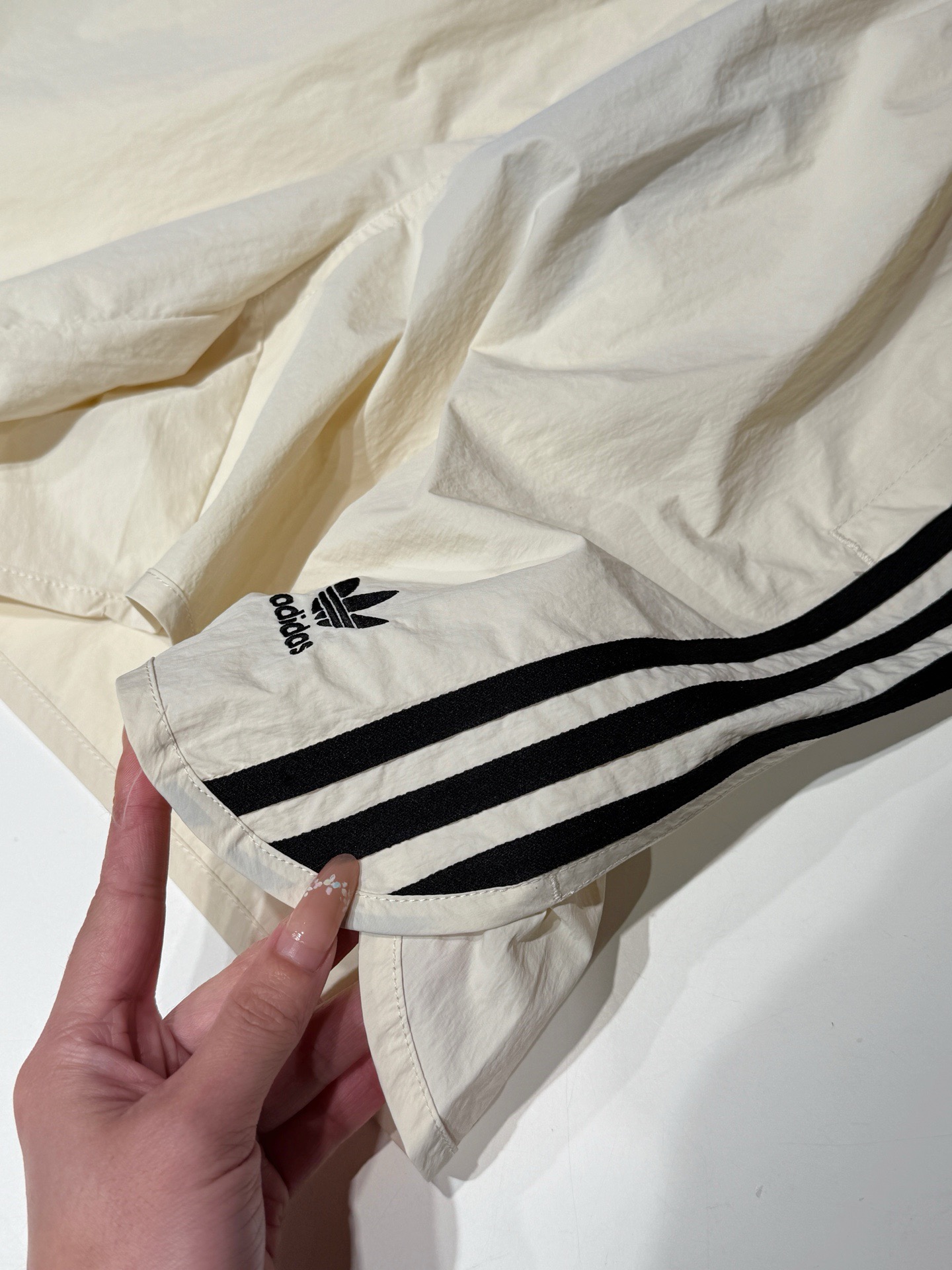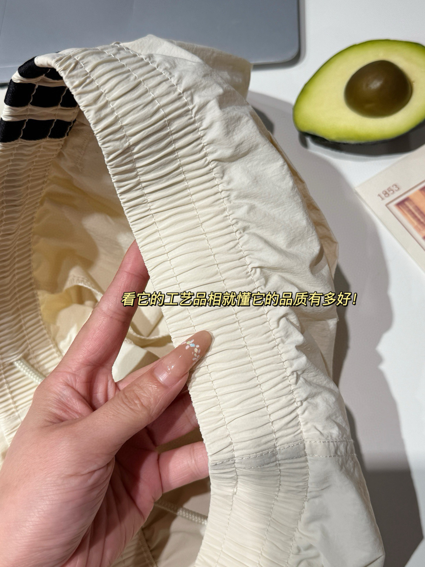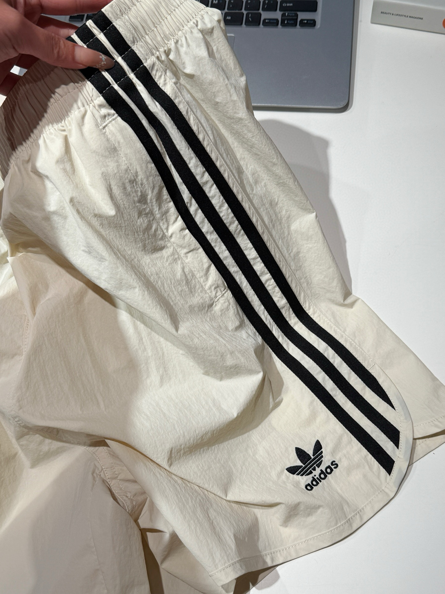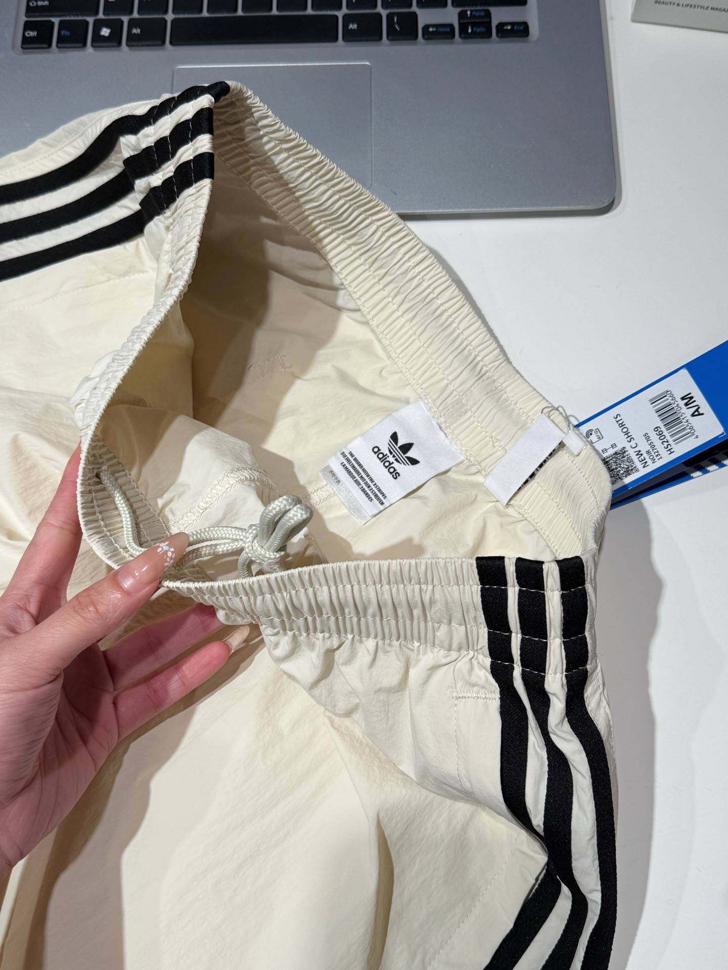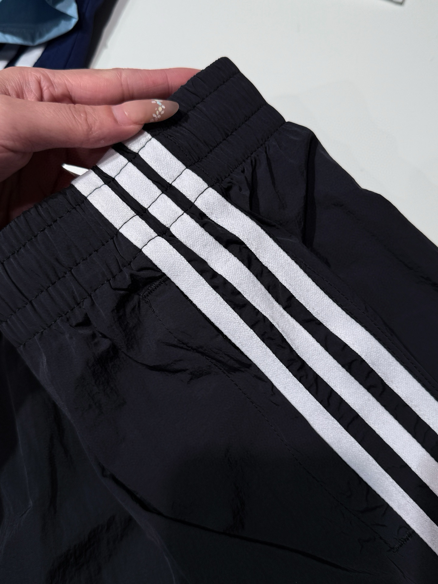 精工全包边儿➕防摩擦底片 经典三条杠的工艺应该不用多啰嗦吧 必需指定专机 而且是底线加面线双重压制 原版工艺!!❗️裤管做了全包边儿 整条包边儿处理 这种轻薄的梭织质地会更加考验工艺 这样的梭织迪子平整服帖不卷边 还有原版才会有的内里防摩擦底片 这都需要提前预留 防止车线摩擦腿部 很贴心❤️❤️不同于基础短裤的Adicolor系列 五分高腰A字版型 拉长腿线条 独有的侧边开衩设计增加灵活性 视觉上会更显 长 无论男性女性 都能够穿的超级舒服!
