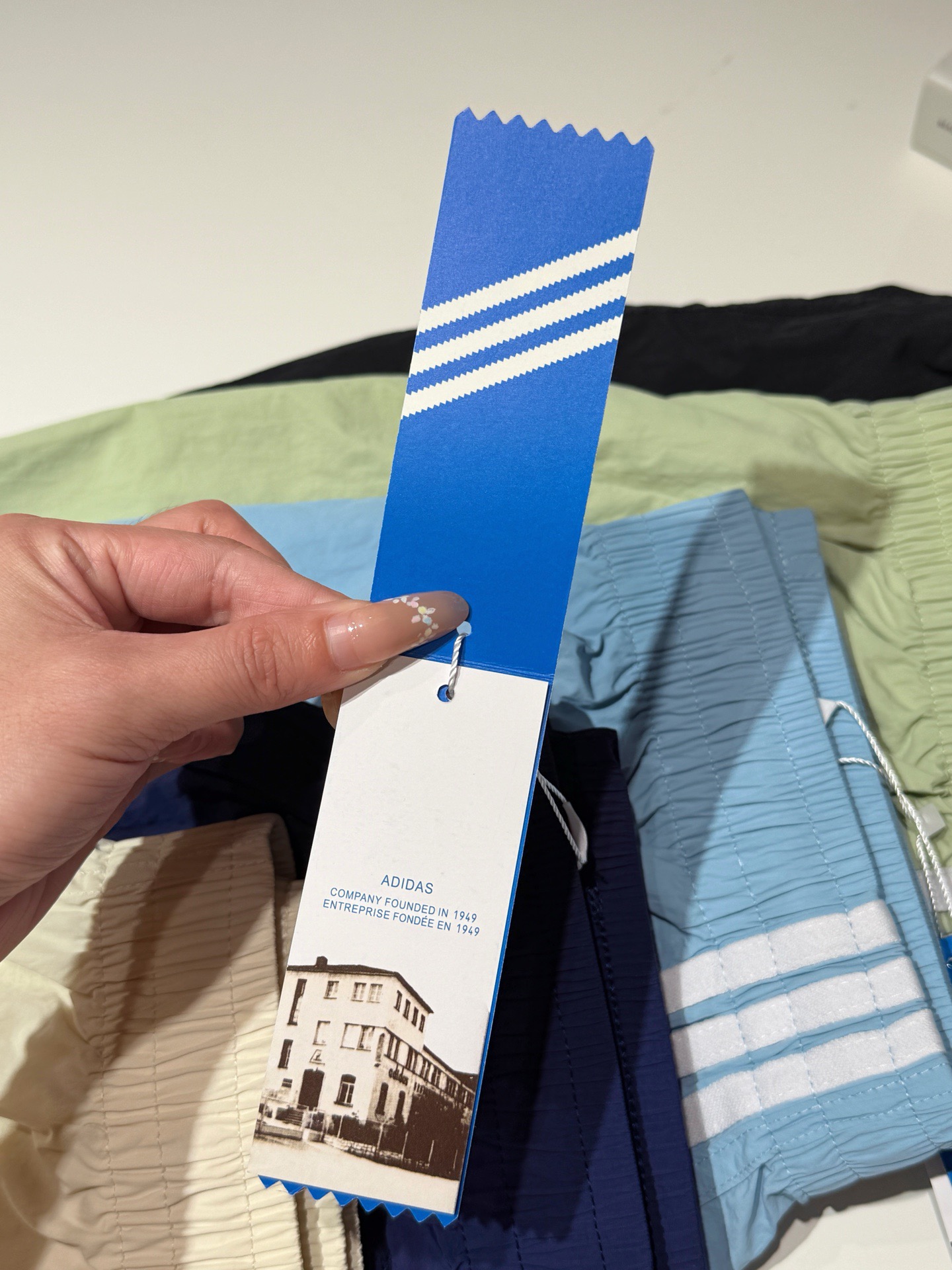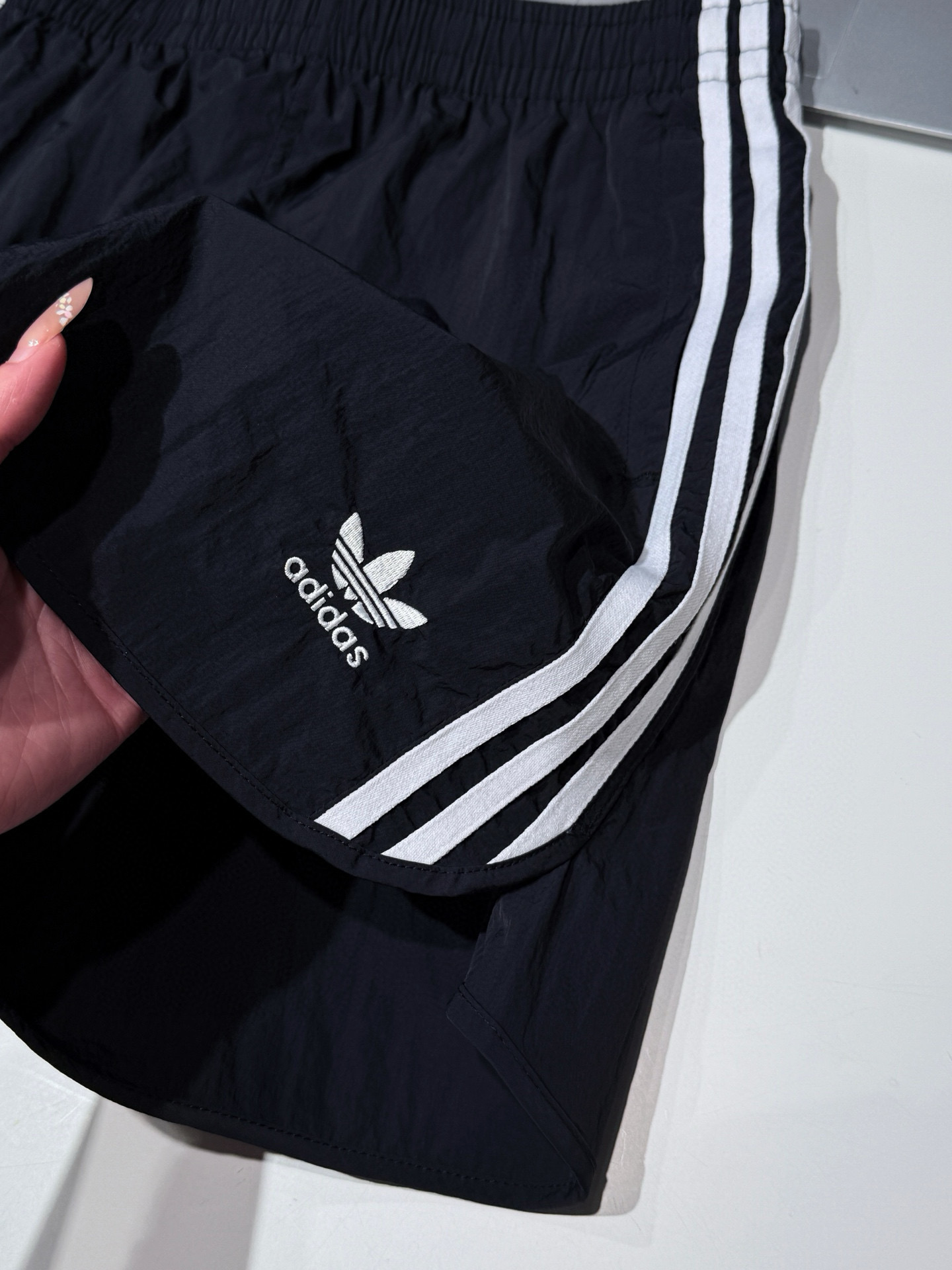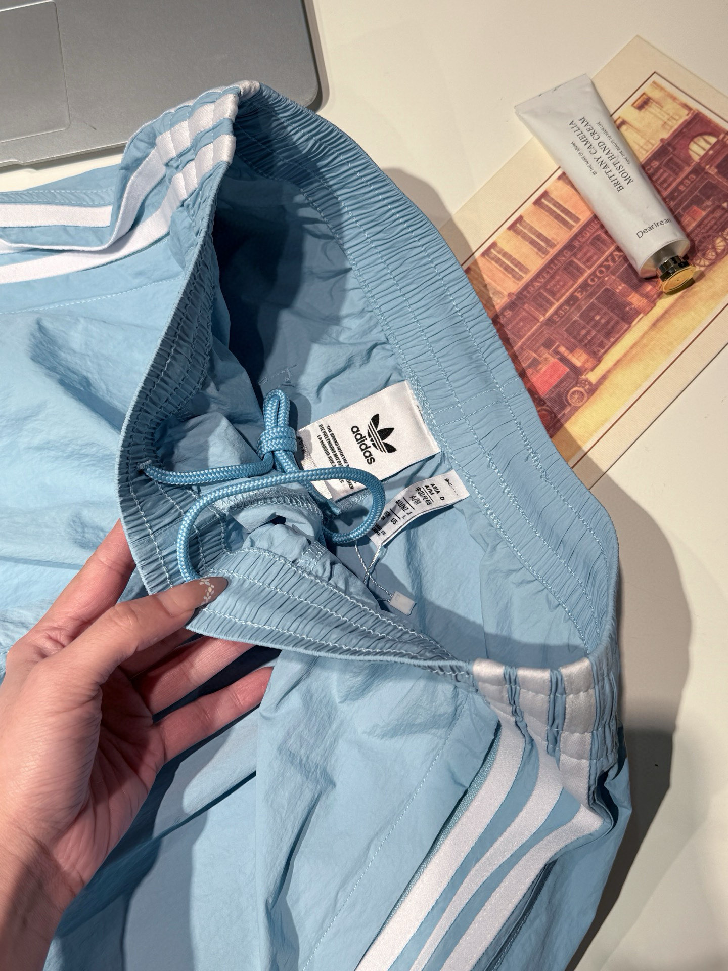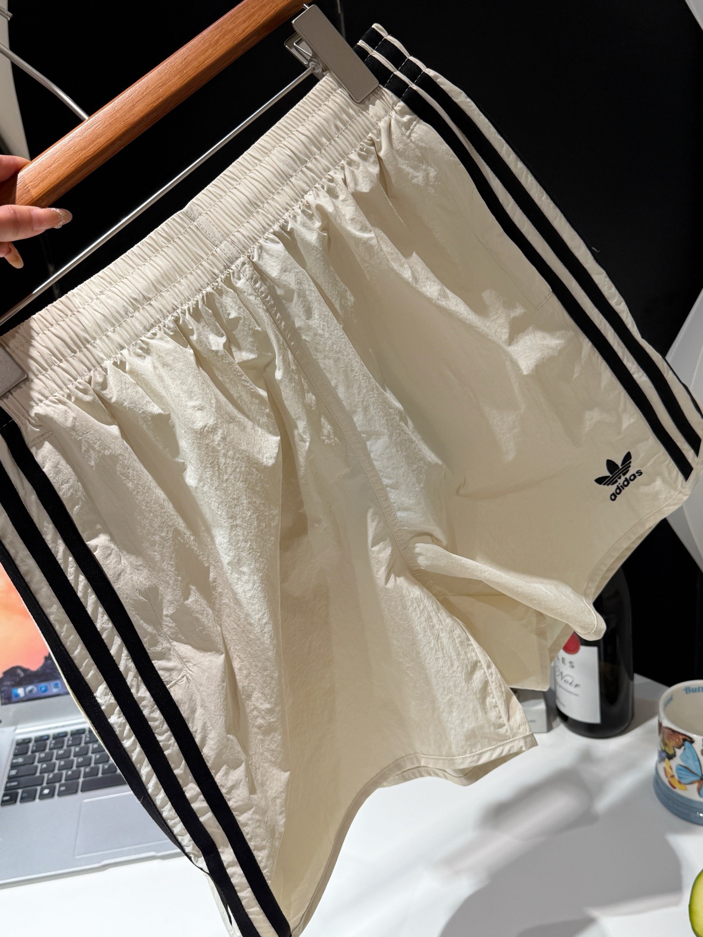 精工全包边儿➕防摩擦底片 经典三条杠的工艺应该不用多啰嗦吧 必需指定专机 而且是底线加面线双重压制 原版工艺!!❗️裤管做了全包边儿 整条包边儿处理 这种轻薄的梭织质地会更加考验工艺 这样的梭织迪子平整服帖不卷边 还有原版才会有的内里防摩擦底片 这都需要提前预留 防止车线摩擦腿部 很贴心❤️❤️不同于基础短裤的Adicolor系列 五分高腰A字版型 拉长腿线条 独有的侧边开衩设计增加灵活性 视觉上会更显 长 无论男性女性 都能够穿的超级舒服!