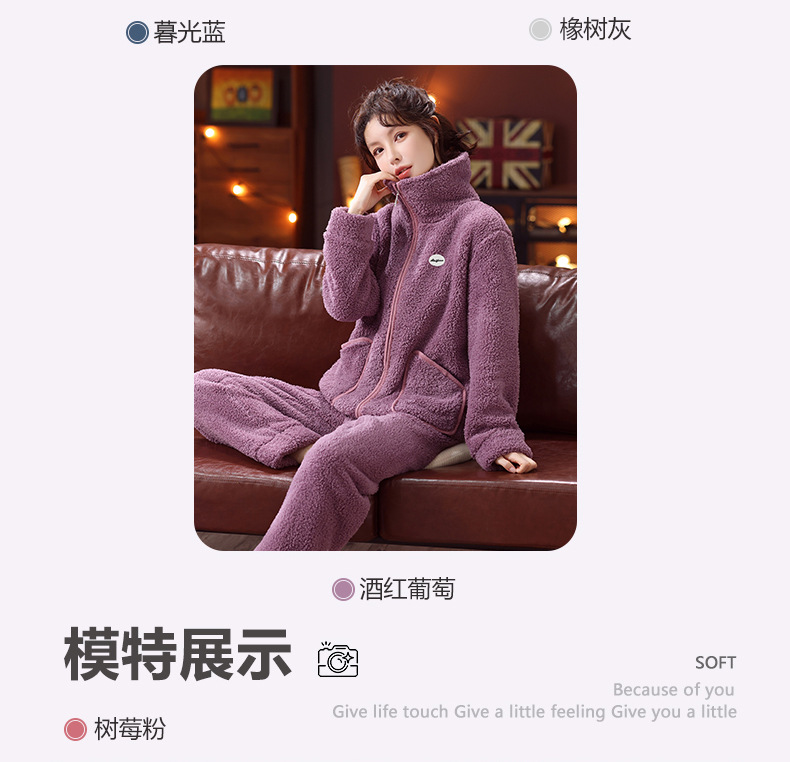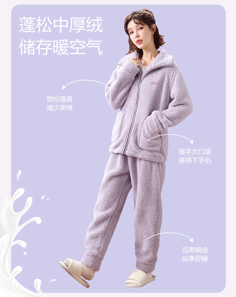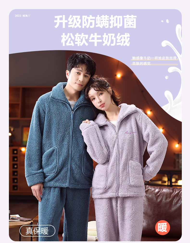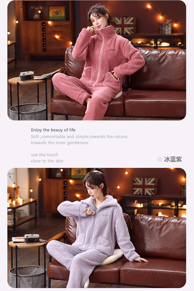 雀说新款情侣睡衣女秋冬季法兰绒睡衣加厚保暖牛奶绒可外穿家居服ALN001