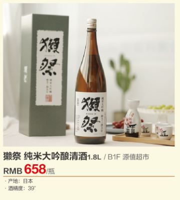 源僖超市 獭祭 纯米大吟酿清酒1.8L