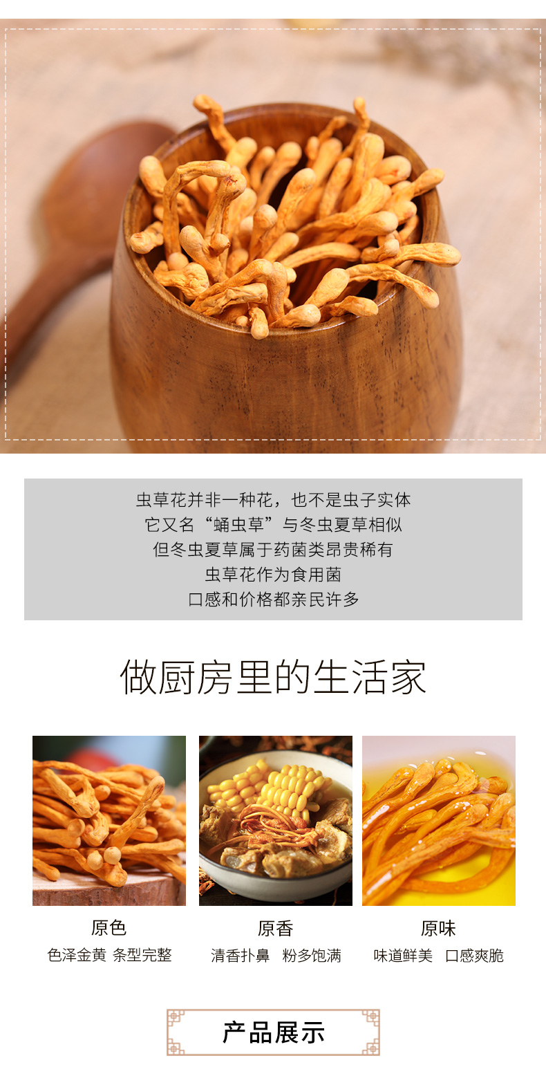 【干货精选】虫草花干货 天然无硫 菌香浓郁 煲汤好滋味 靓食材厨房必备 山珍泡水泡茶 吃法多样