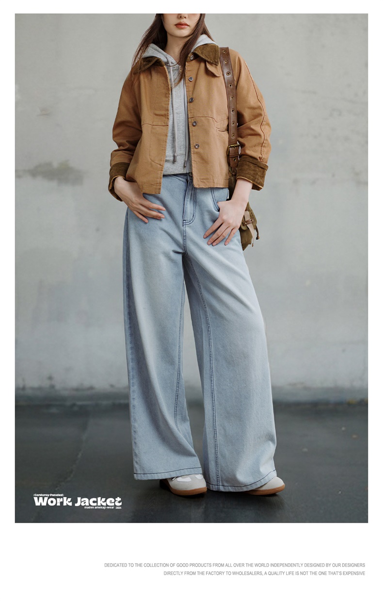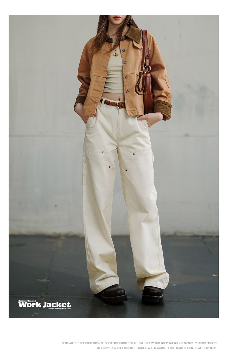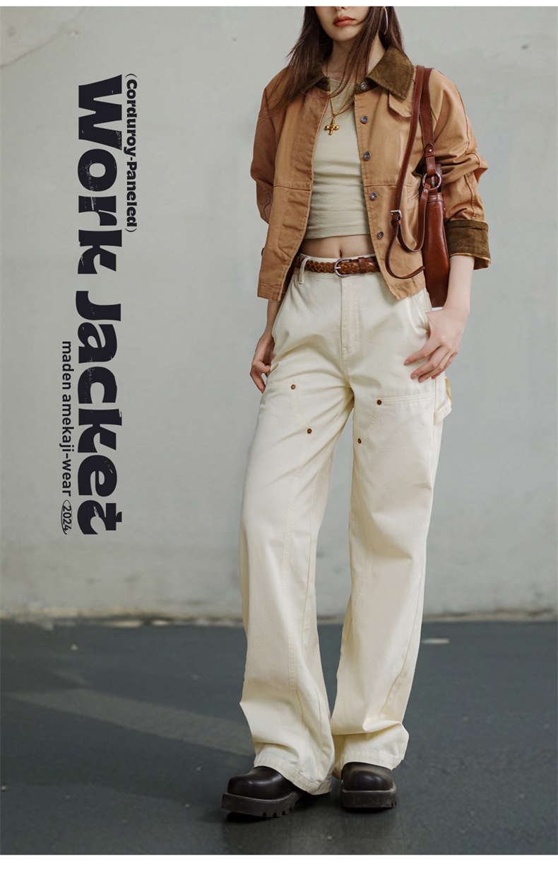 马登巴恩风美式工装夹克女春旷野美拉德灯芯绒拼接帆布外套休闲宽松翻领上衣