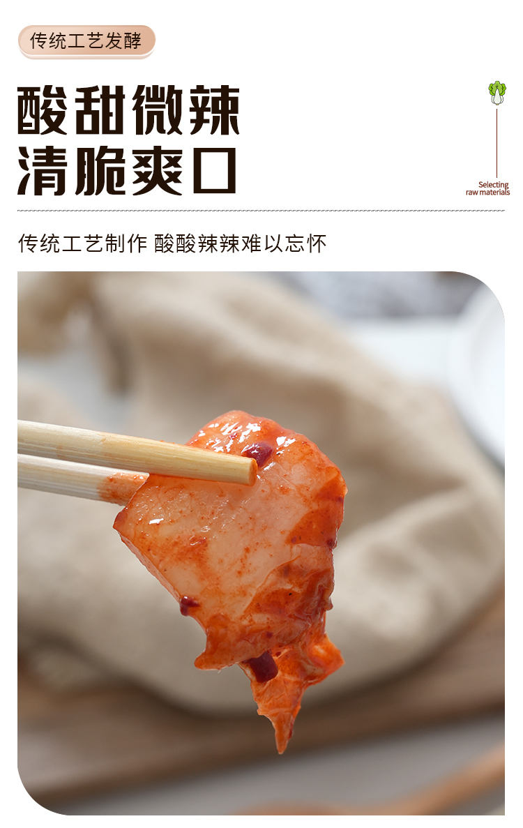 【5袋更优惠】恬禾亦·辣白菜 纯素 不含五辛 东北黄心大白菜 韩式酸甜微辣口味 500g