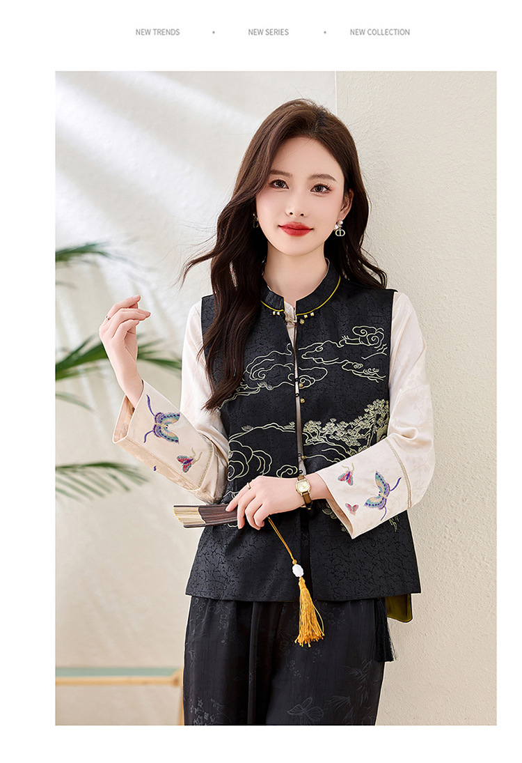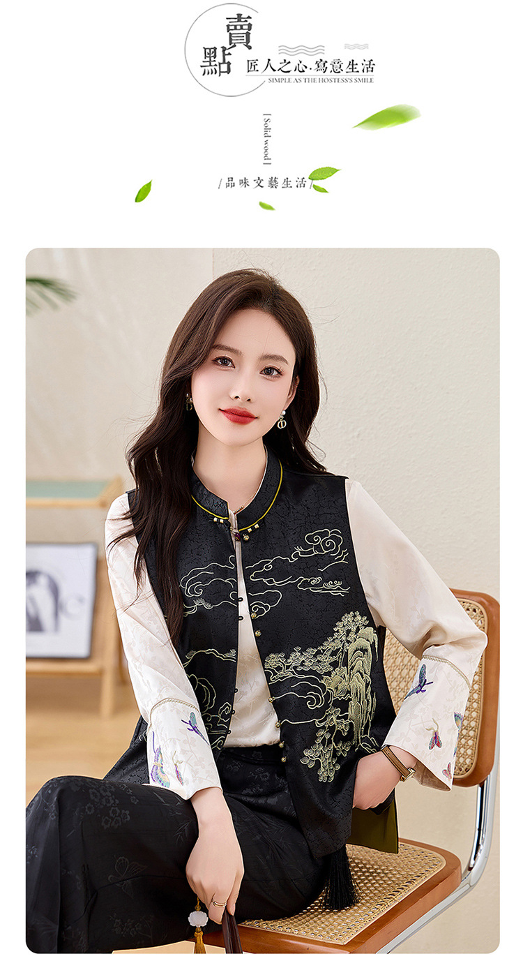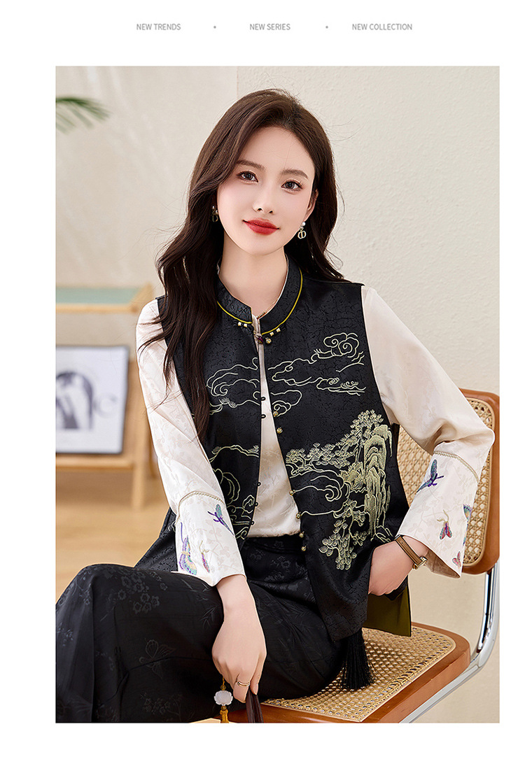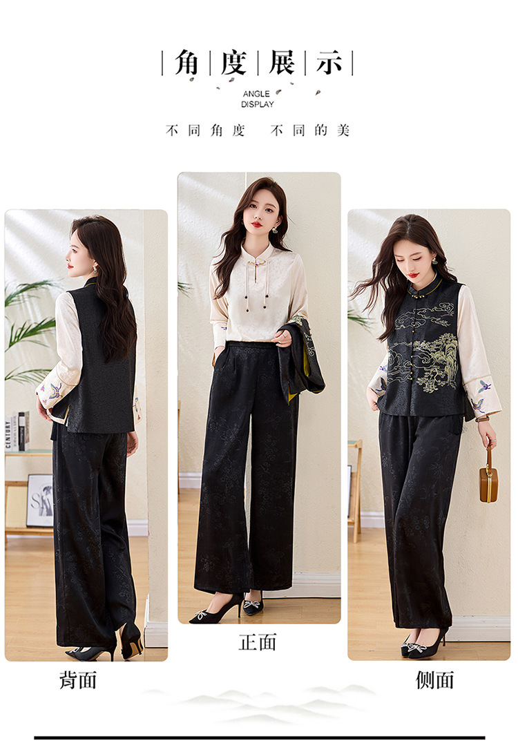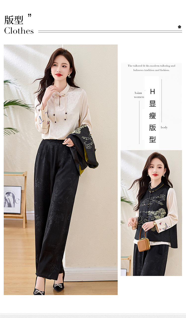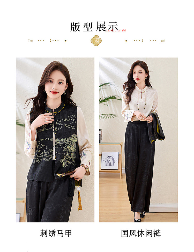 HR YYG82950新中式刺绣马甲+刺绣衬衫+裤子三件套